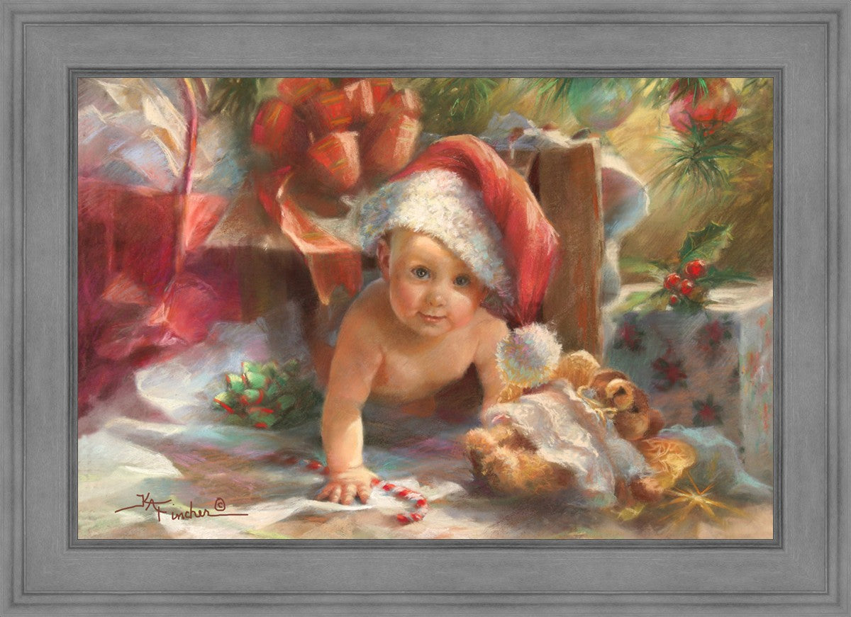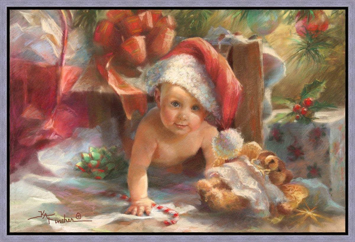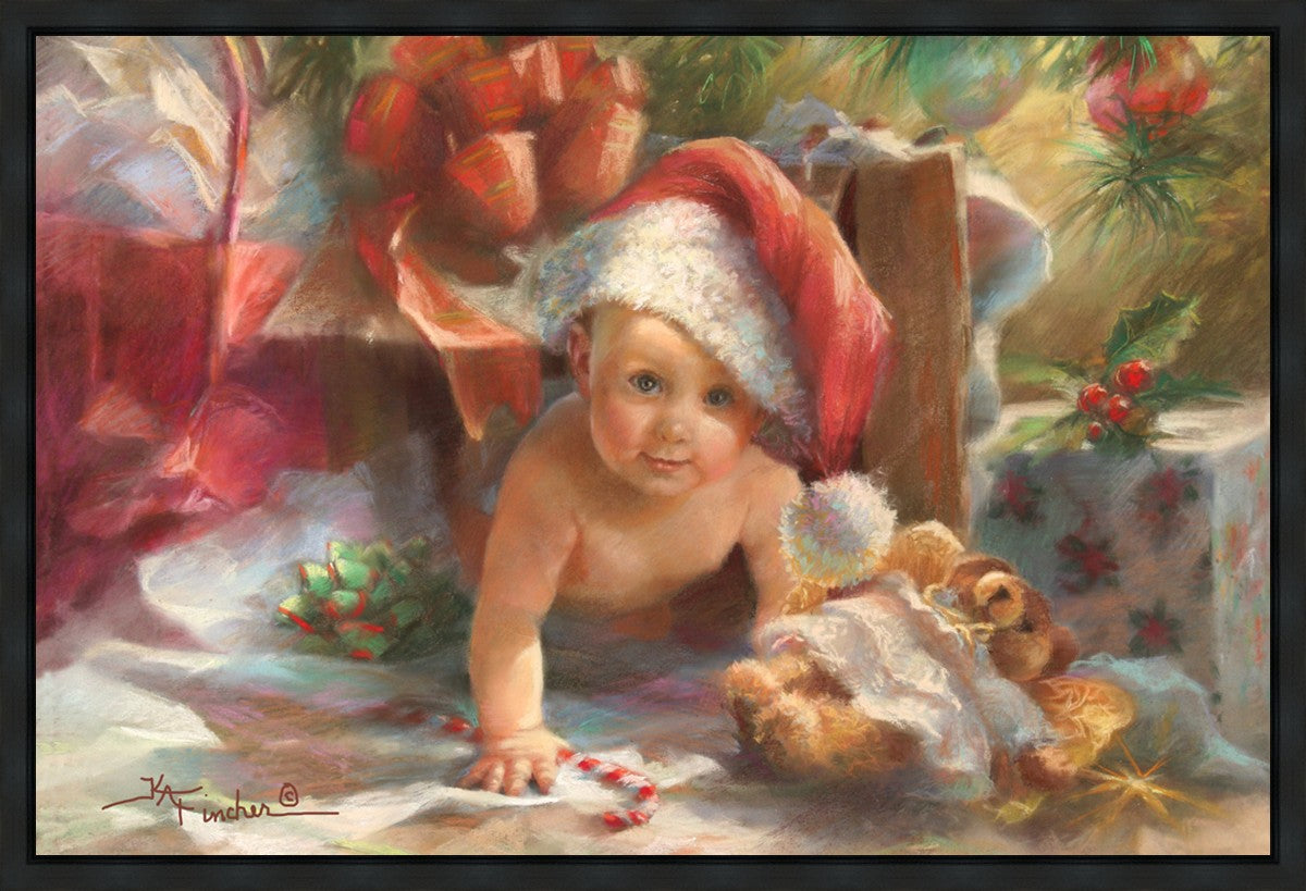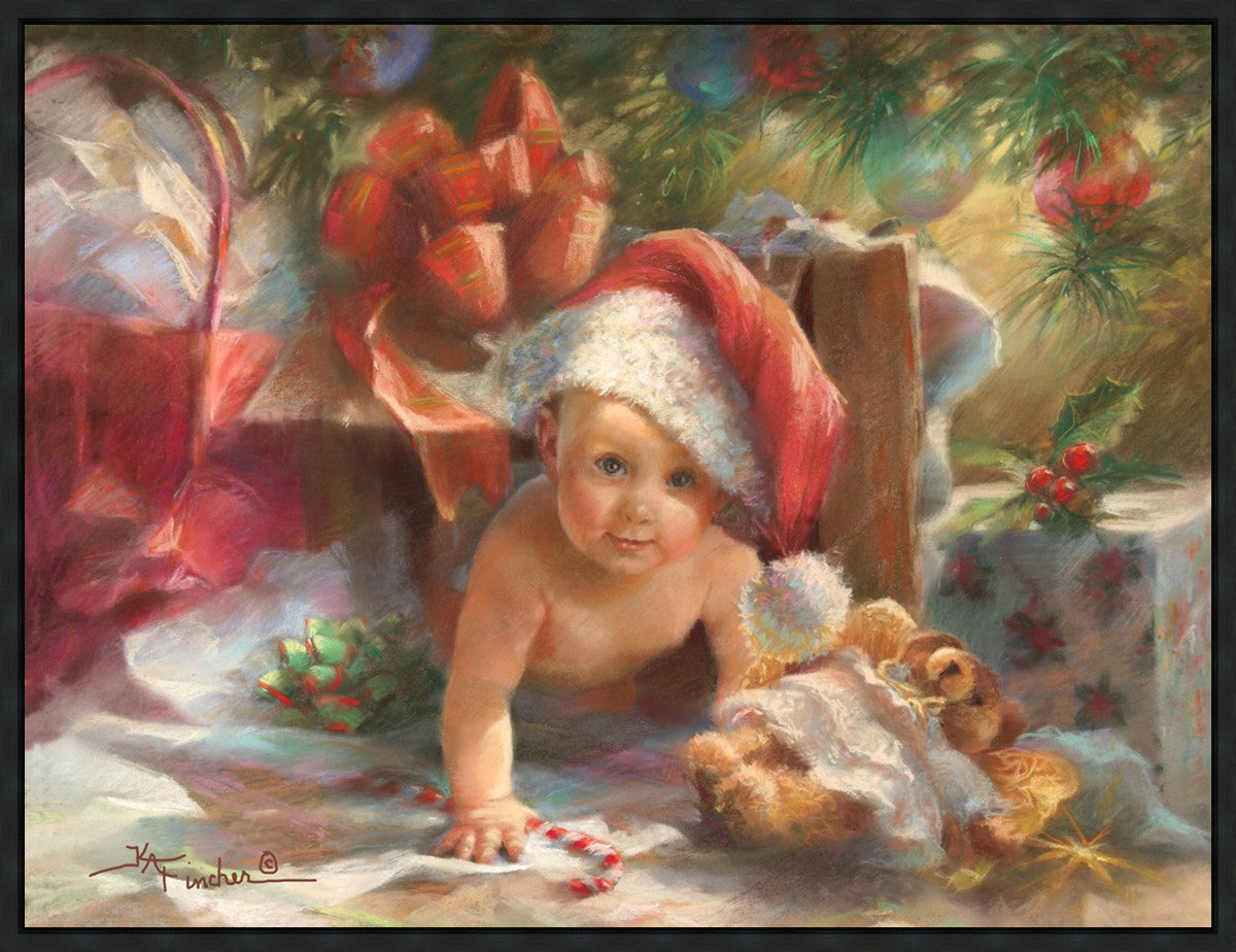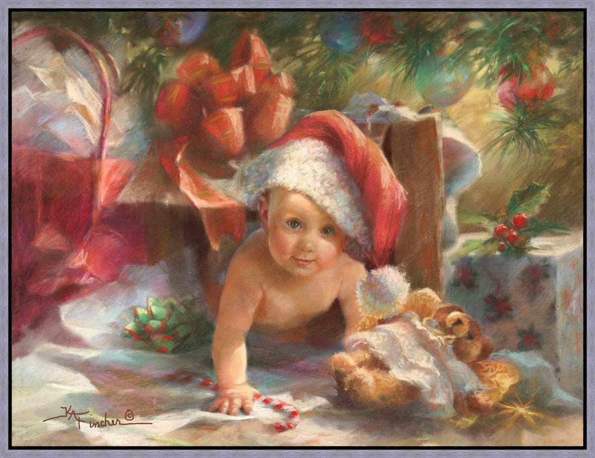 The most expensive and endearing Christmas gifts are often tossed aside for the box. It’s this spirit of wonder, for the simplest of things, that awakens the Christmas spirit in adults. Artist Kathy Fincher shares the spirit of childhood through the eyes of a child in her Christmas Babies Collection.