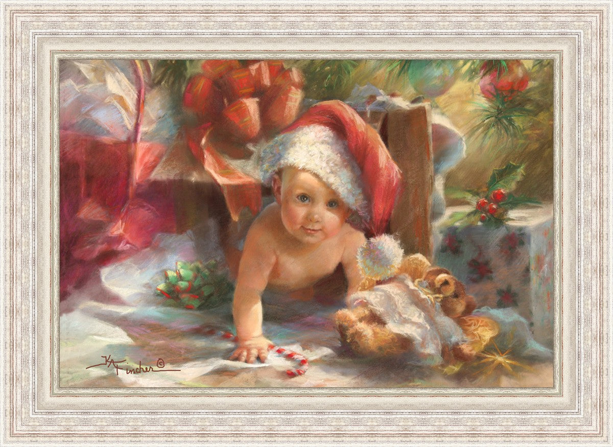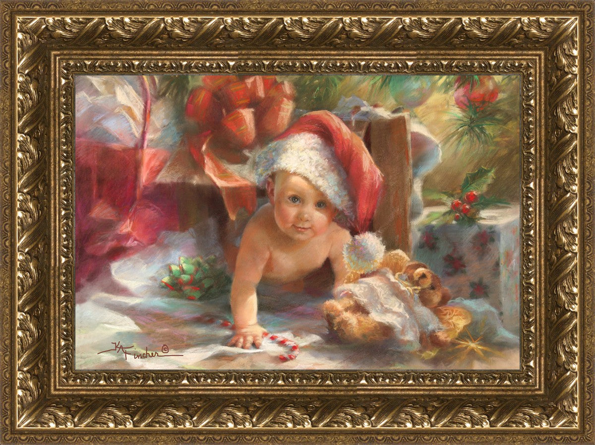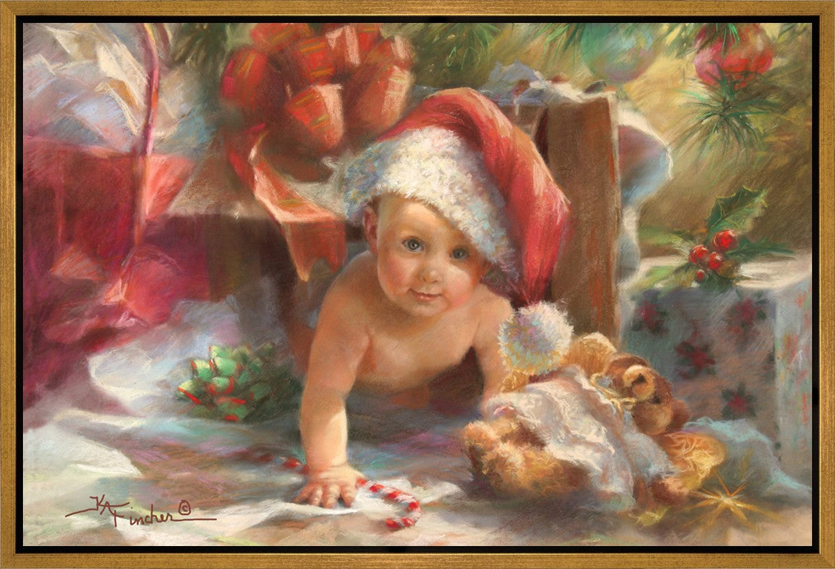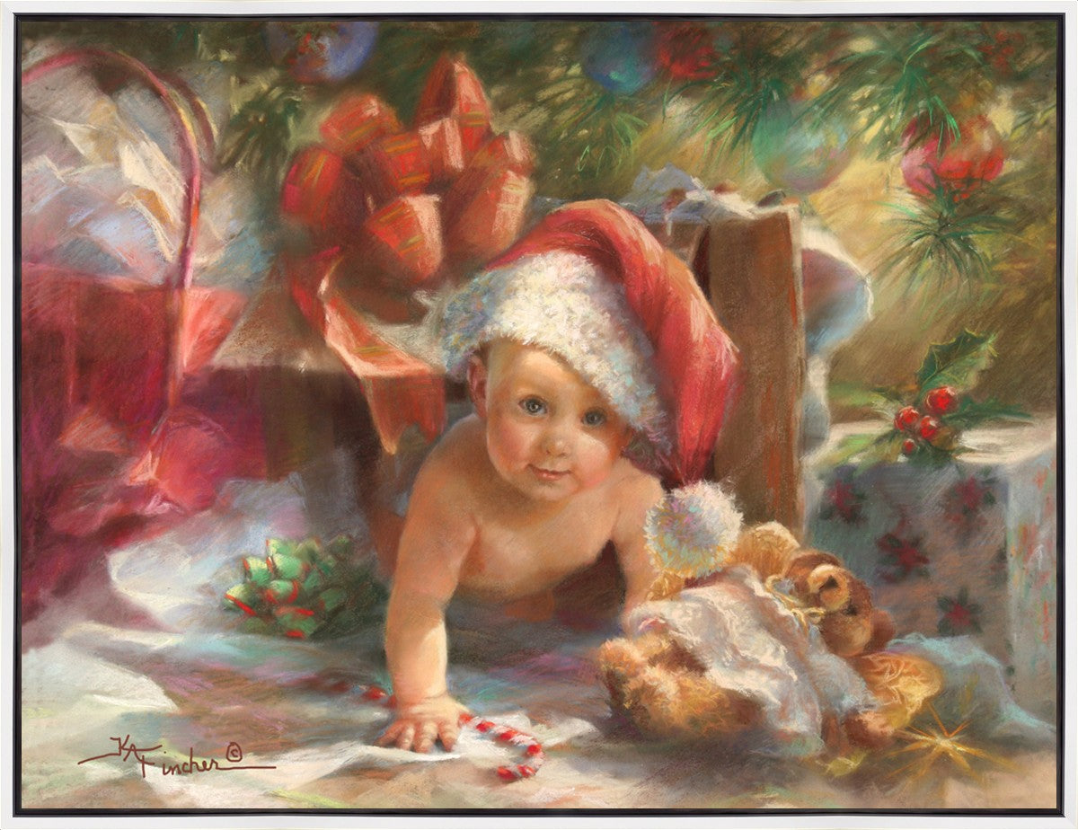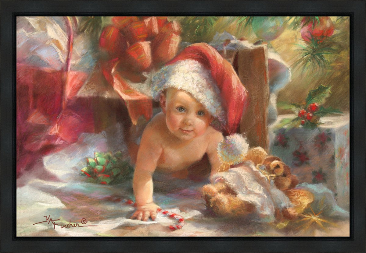 The most expensive and endearing Christmas gifts are often tossed aside for the box. It’s this spirit of wonder, for the simplest of things, that awakens the Christmas spirit in adults. Artist Kathy Fincher shares the spirit of childhood through the eyes of a child in her Christmas Babies Collection.