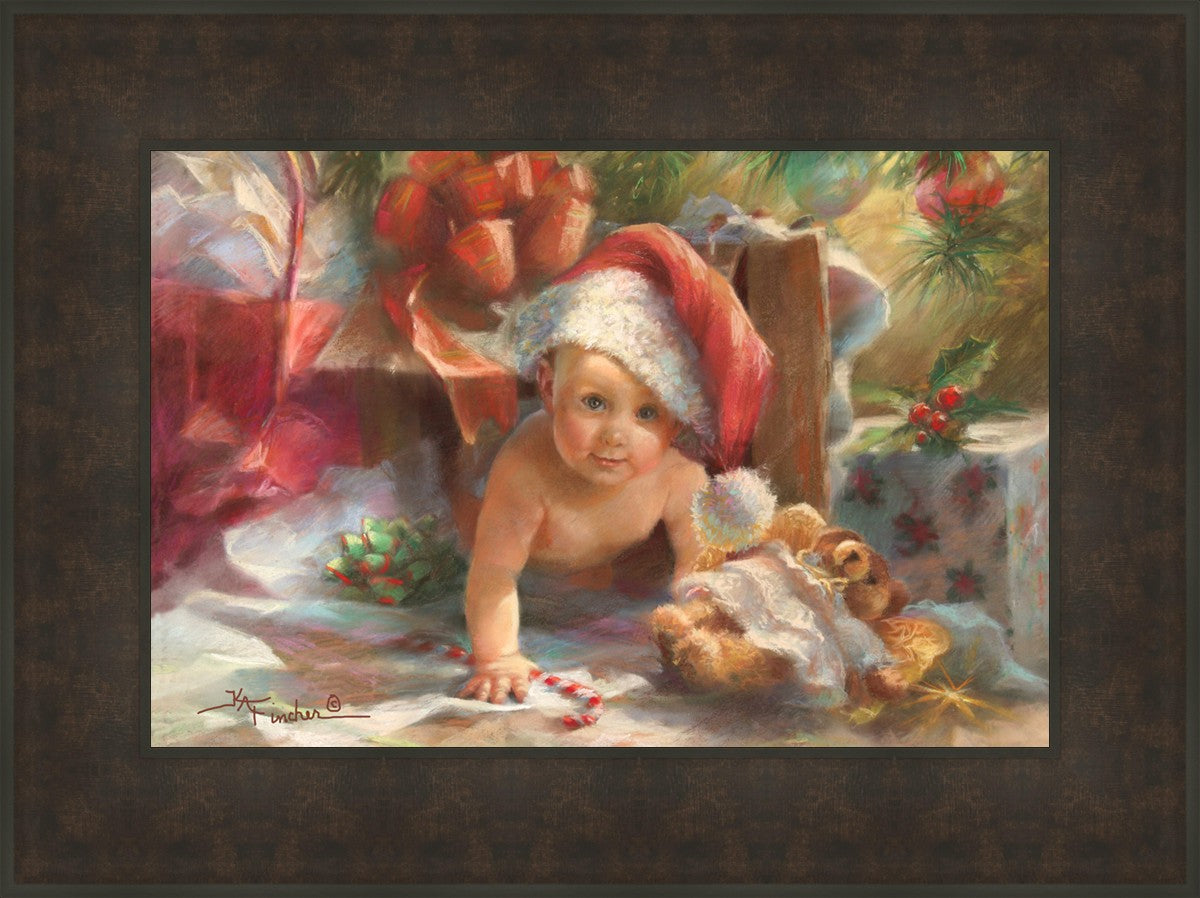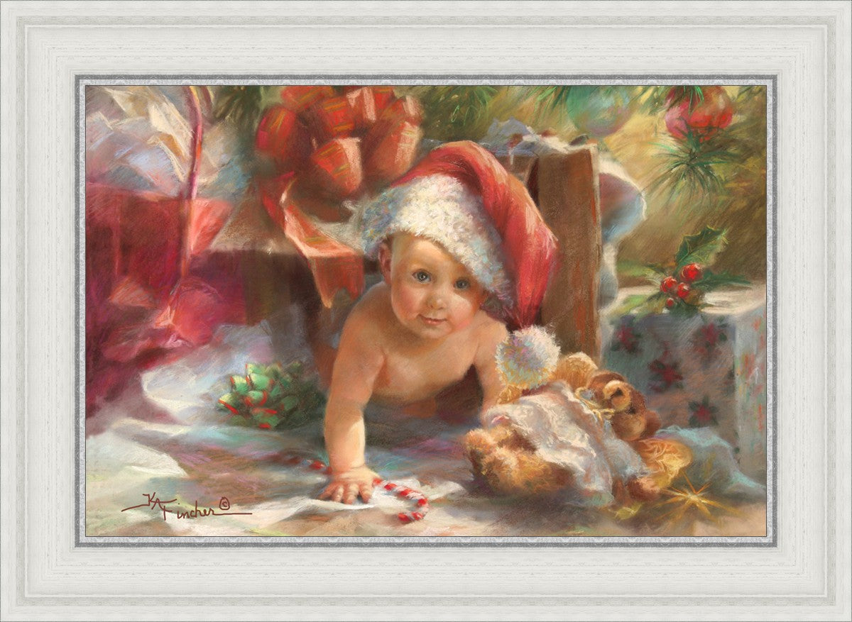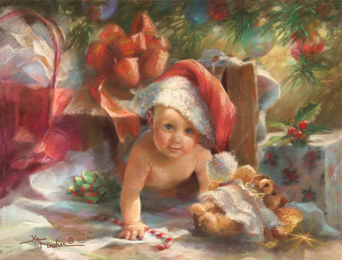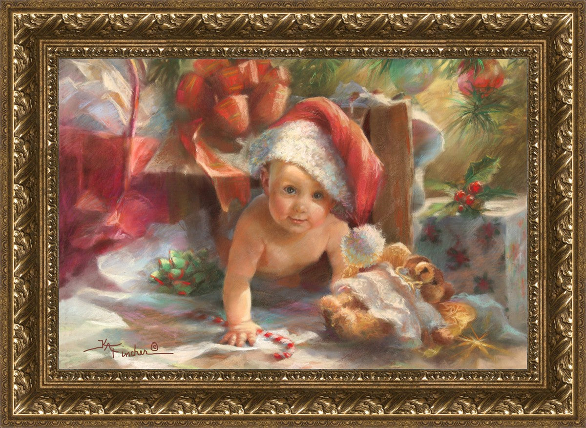 The most expensive and endearing Christmas gifts are often tossed aside for the box. It’s this spirit of wonder, for the simplest of things, that awakens the Christmas spirit in adults. Artist Kathy Fincher shares the spirit of childhood through the eyes of a child in her Christmas Babies Collection.