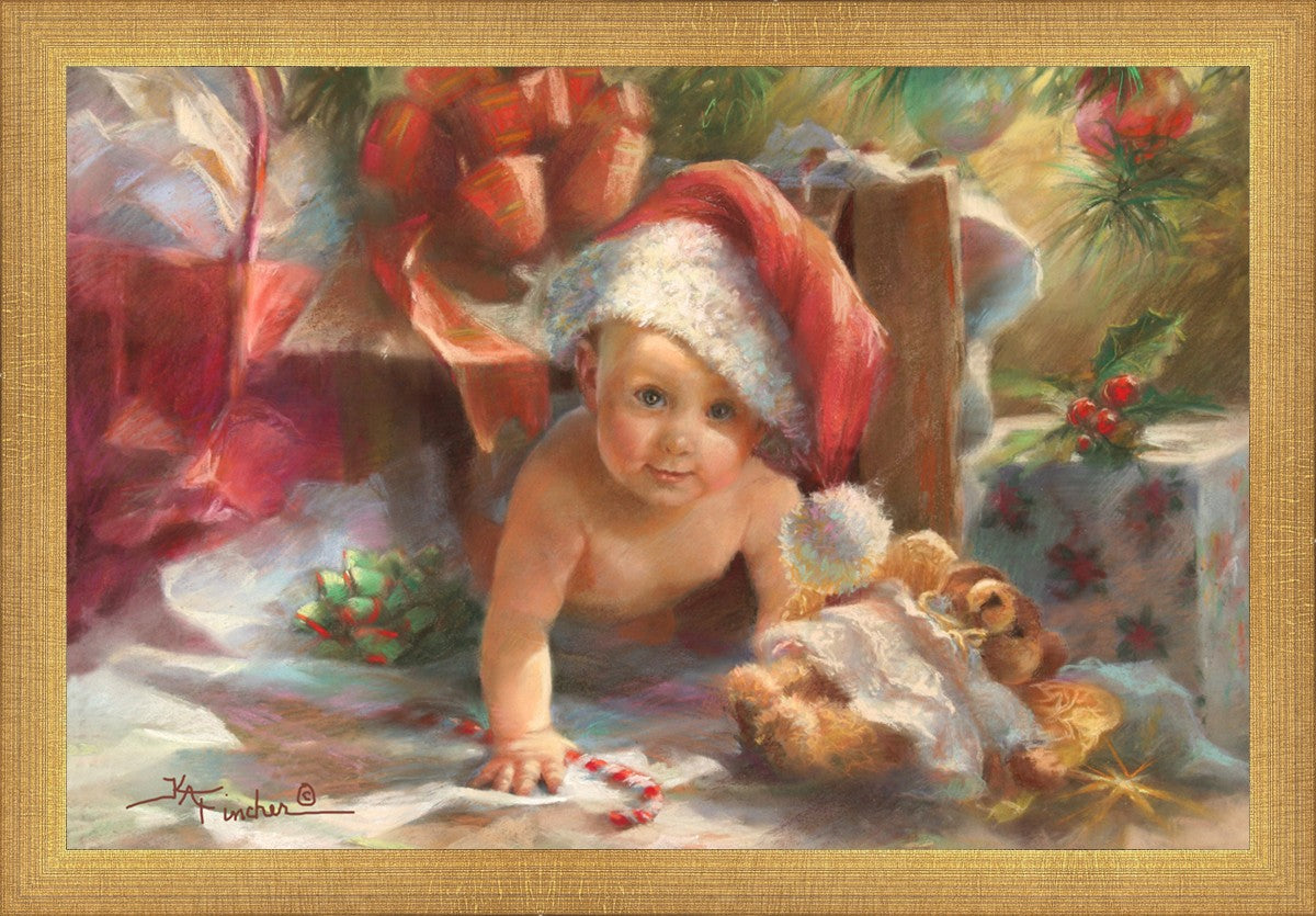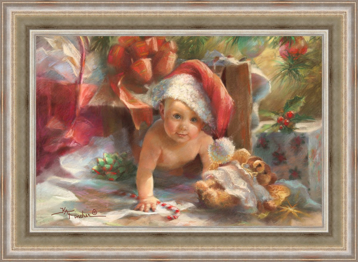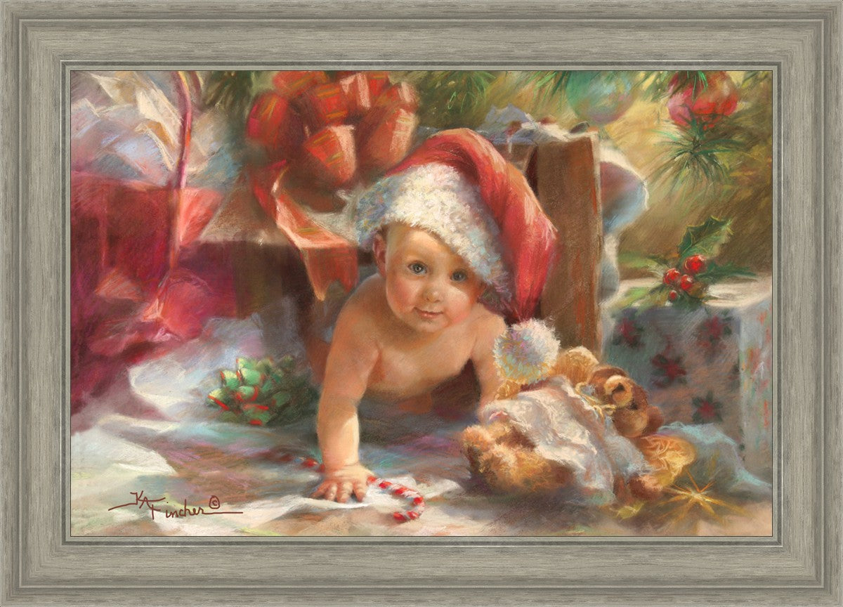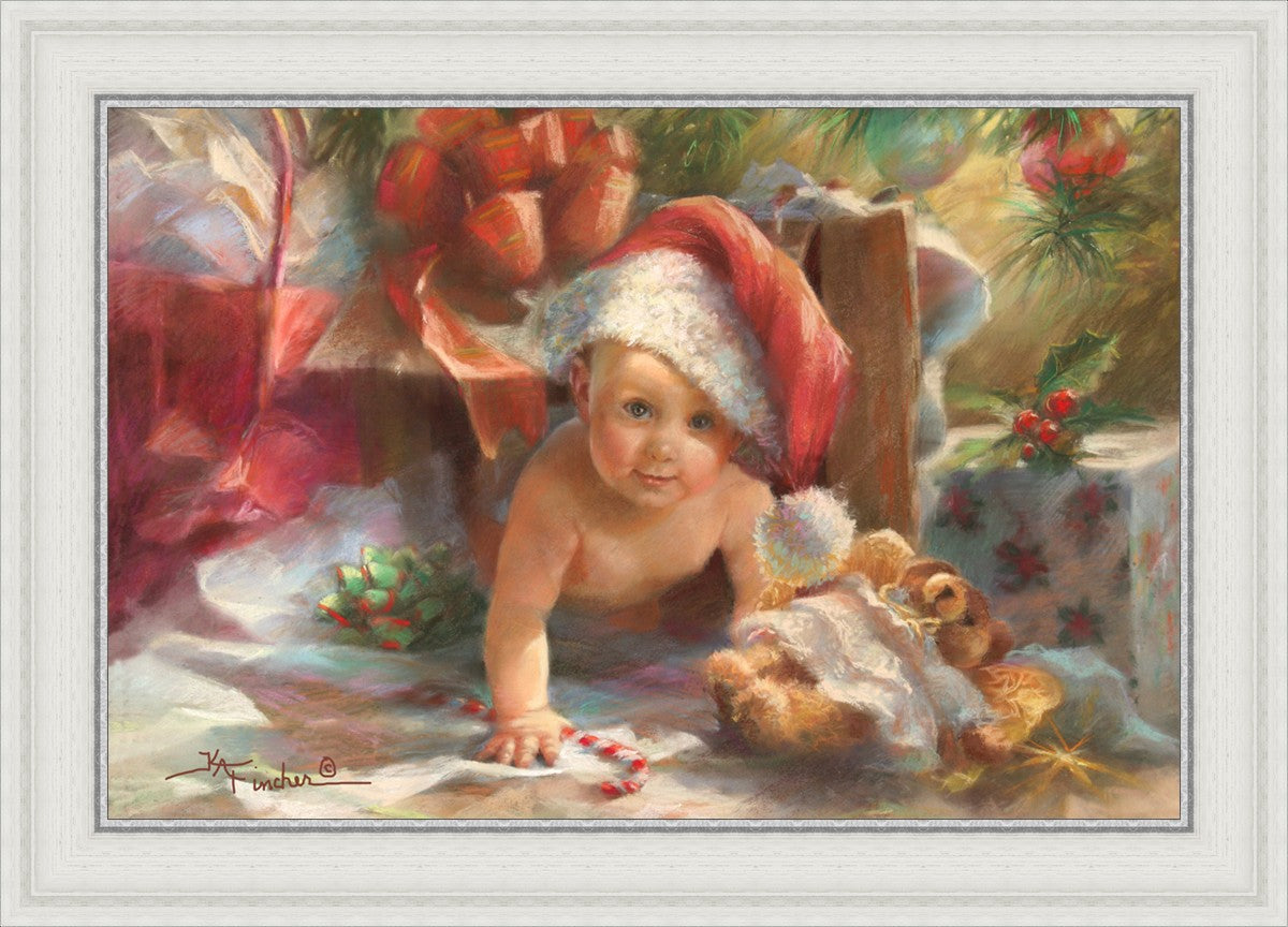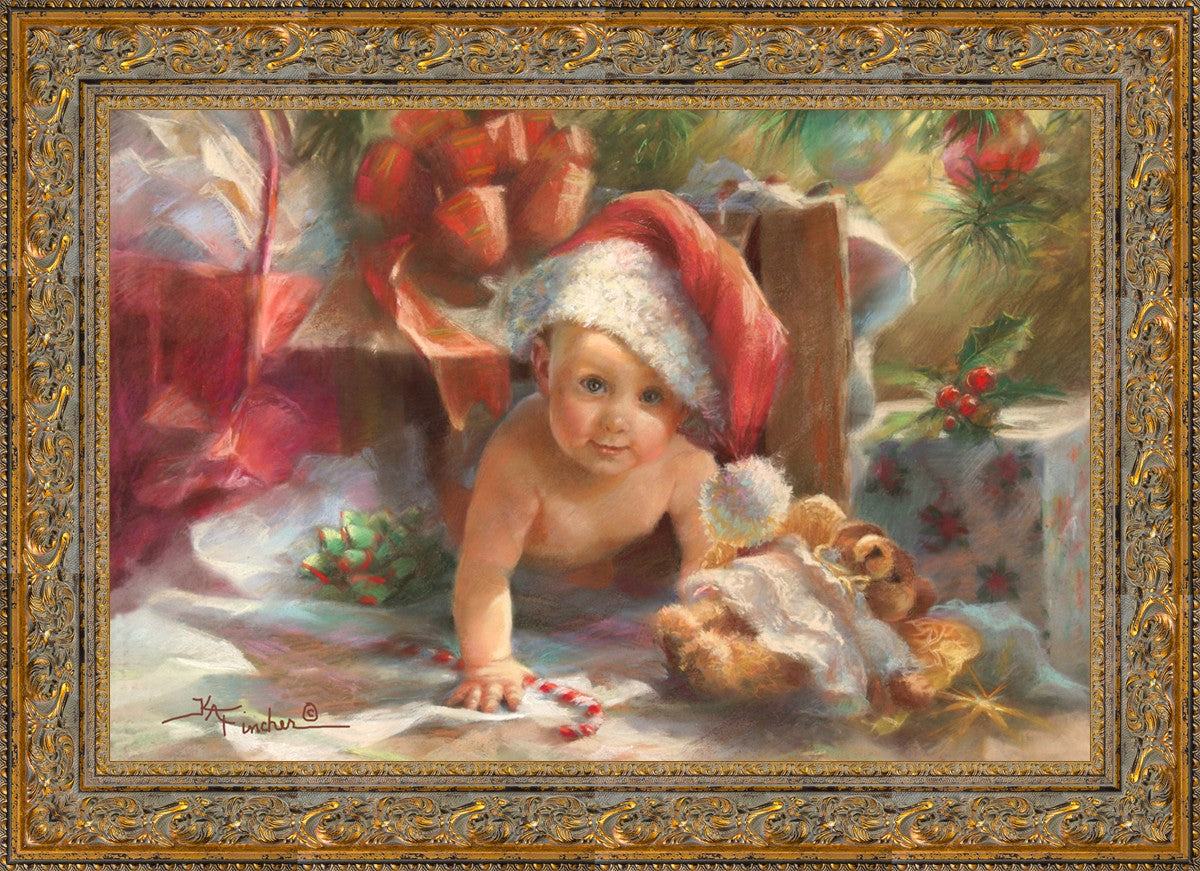 The most expensive and endearing Christmas gifts are often tossed aside for the box. It’s this spirit of wonder, for the simplest of things, that awakens the Christmas spirit in adults. Artist Kathy Fincher shares the spirit of childhood through the eyes of a child in her Christmas Babies Collection.