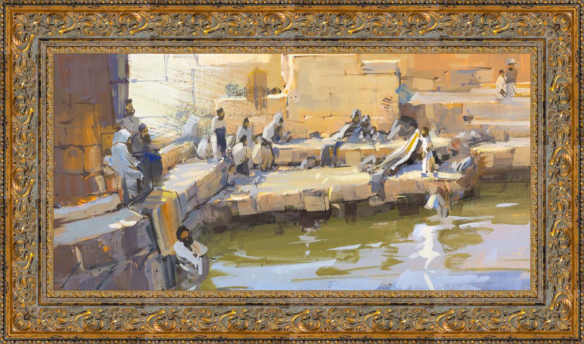 The Well of Bethesda was a magical place. I imagine that a whole lot of people live there and they all had a range of illnesses, ailments, infirmities etc. that they wanted to be healed from. The story goes that an angel would agitate the waters of the well and the first person to enter into the waters would be healed. This place probably became like a homeless shelter with a lot of old and elderly people living there hoping for the miracle of being healed. In the story there was a man who was so weak and feeble that he needed help to be able to enter the waters and by that time it would always be too late. In this story, Christ makes his way among them and over to that man and heals him.