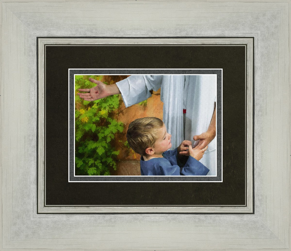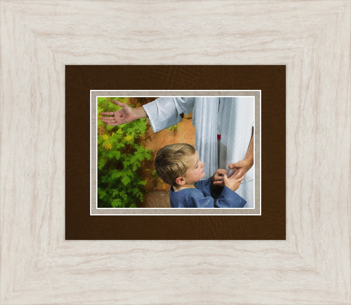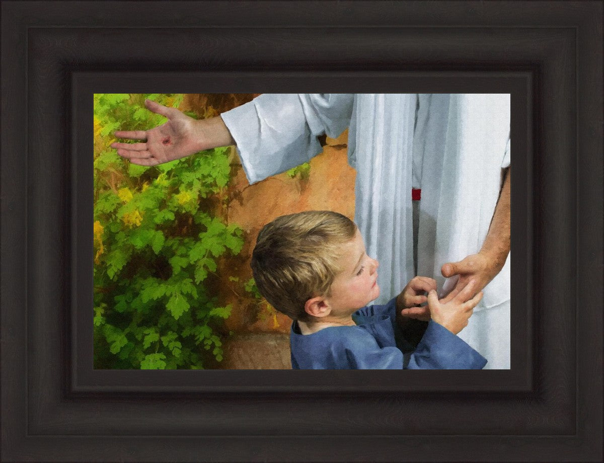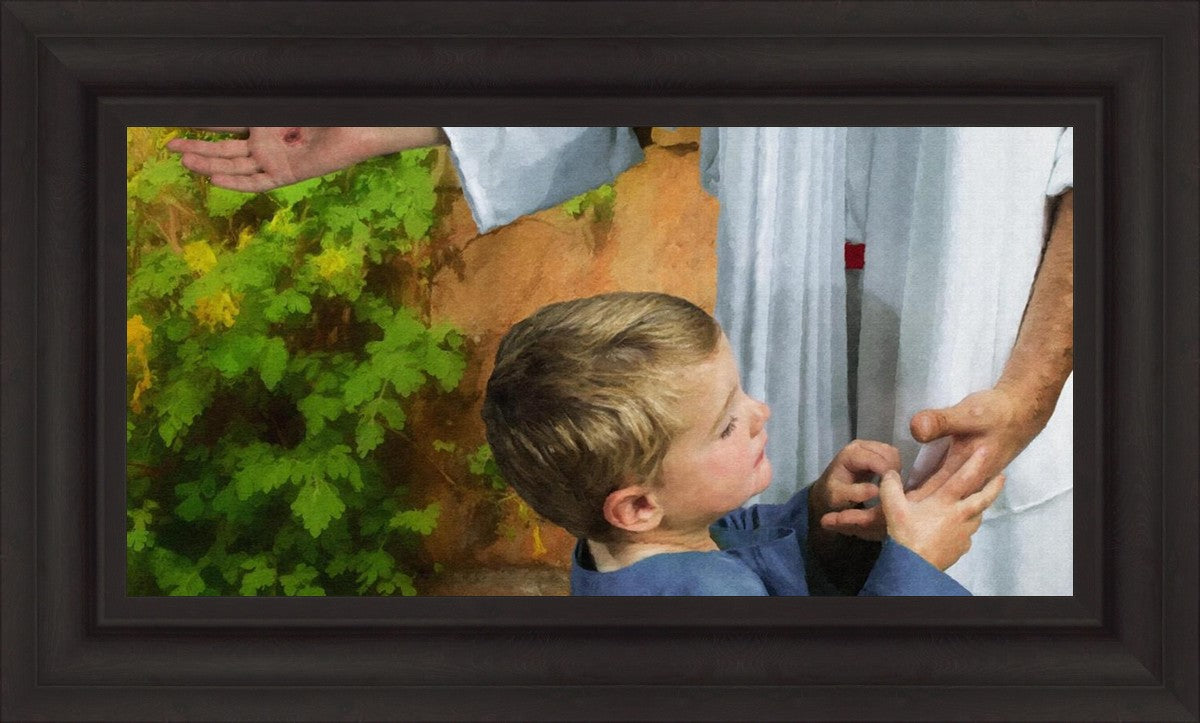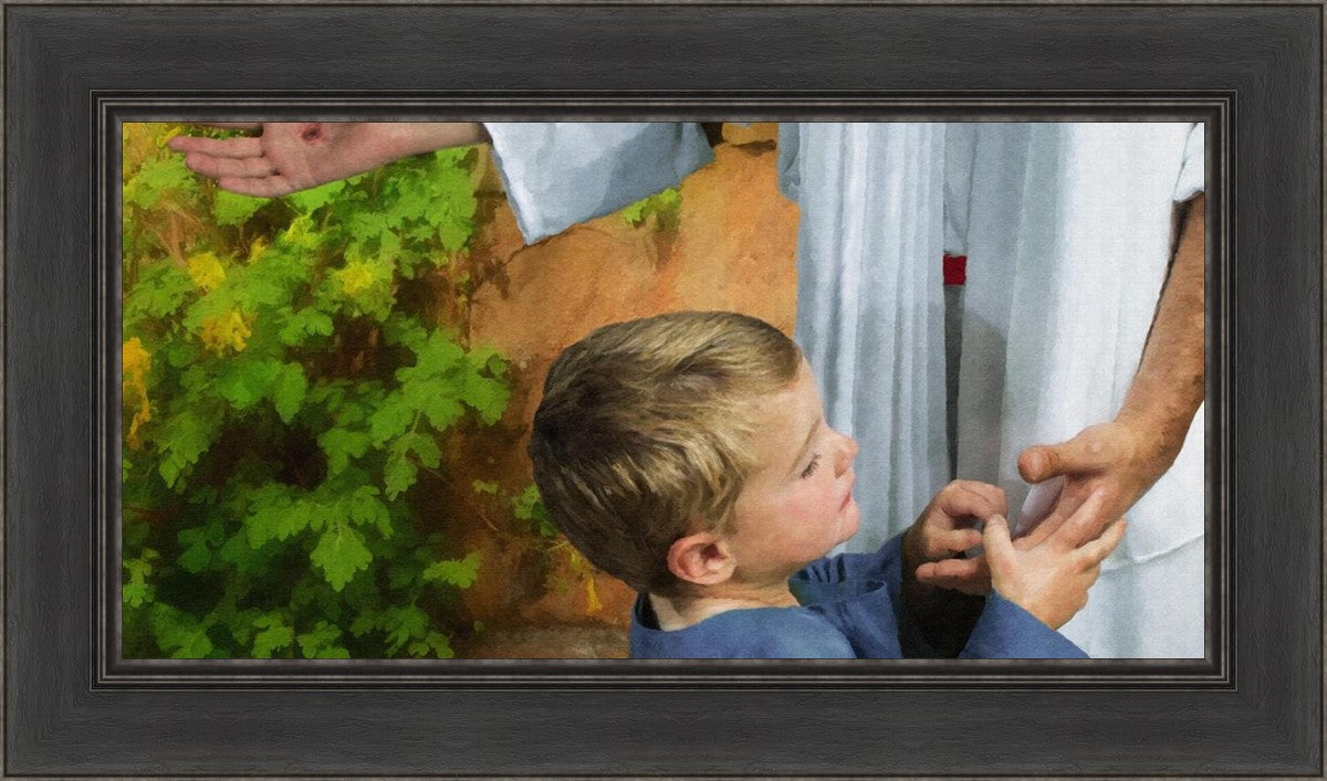 A little boy who is looking at the hands of Christ and asking him did it hurt.