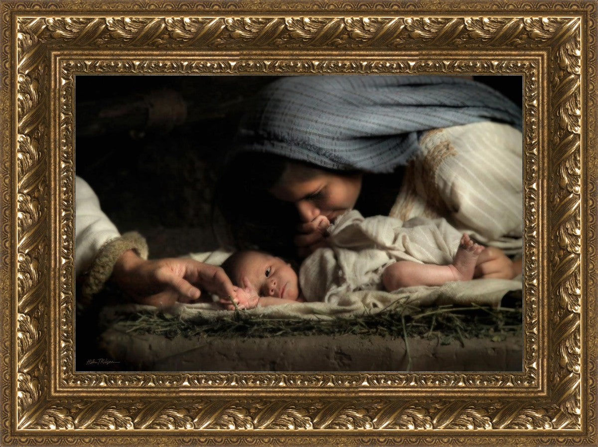 The sense of purpose in the eyes of the newborn Christ as he reaches out to Joseph's fingers is amazing.