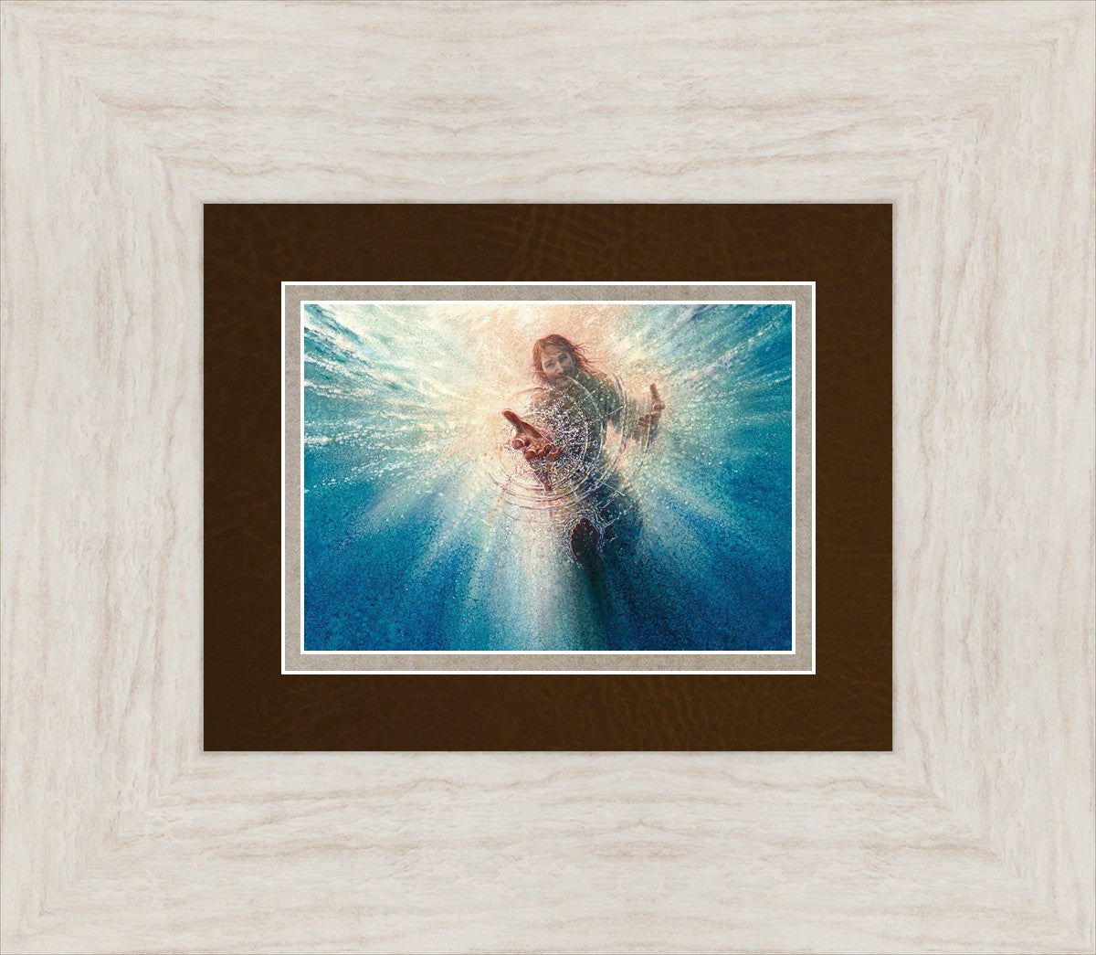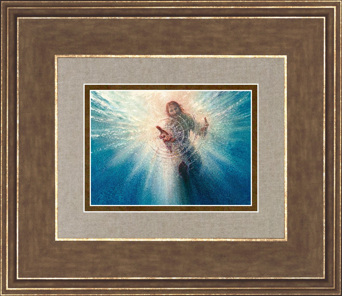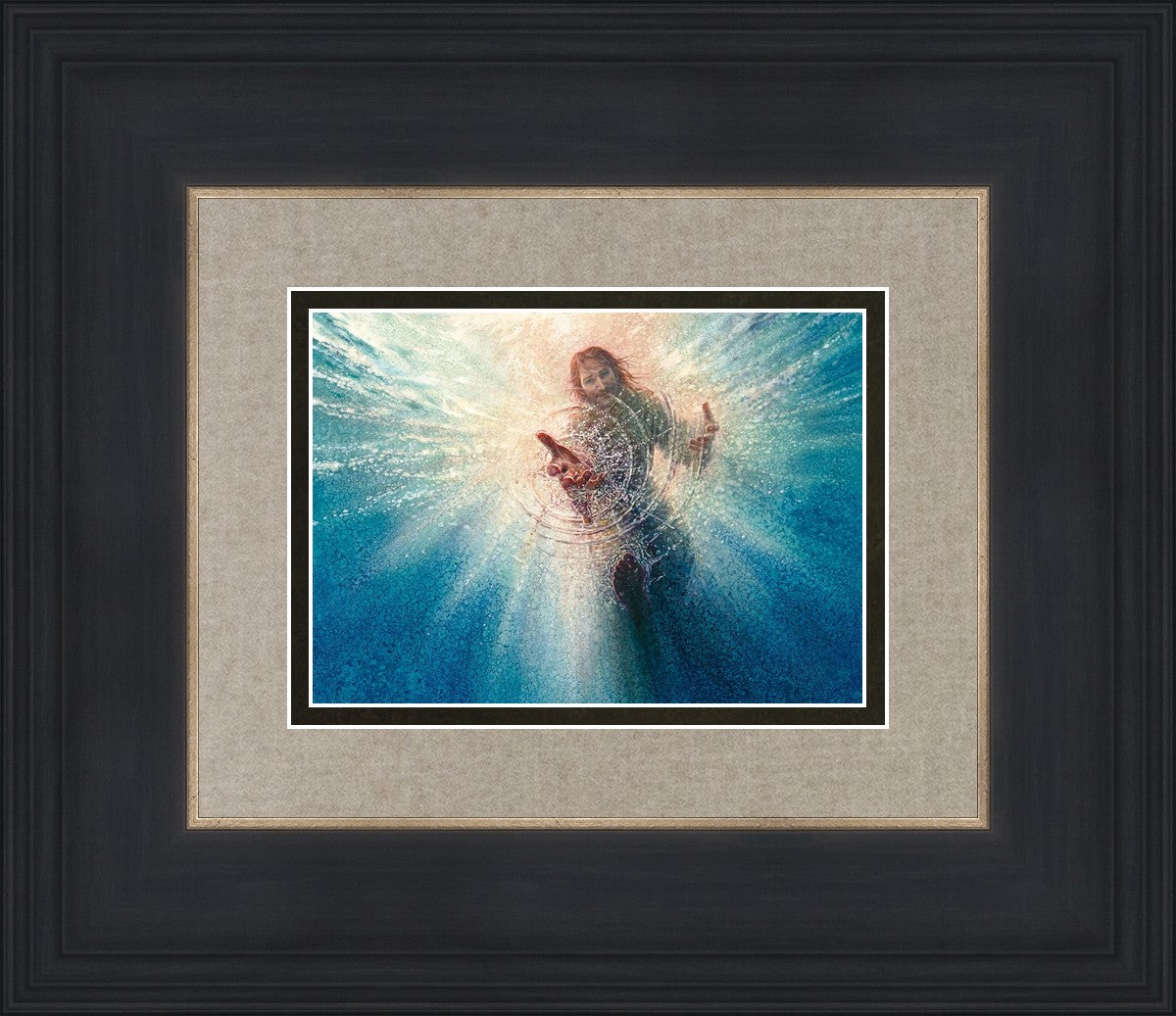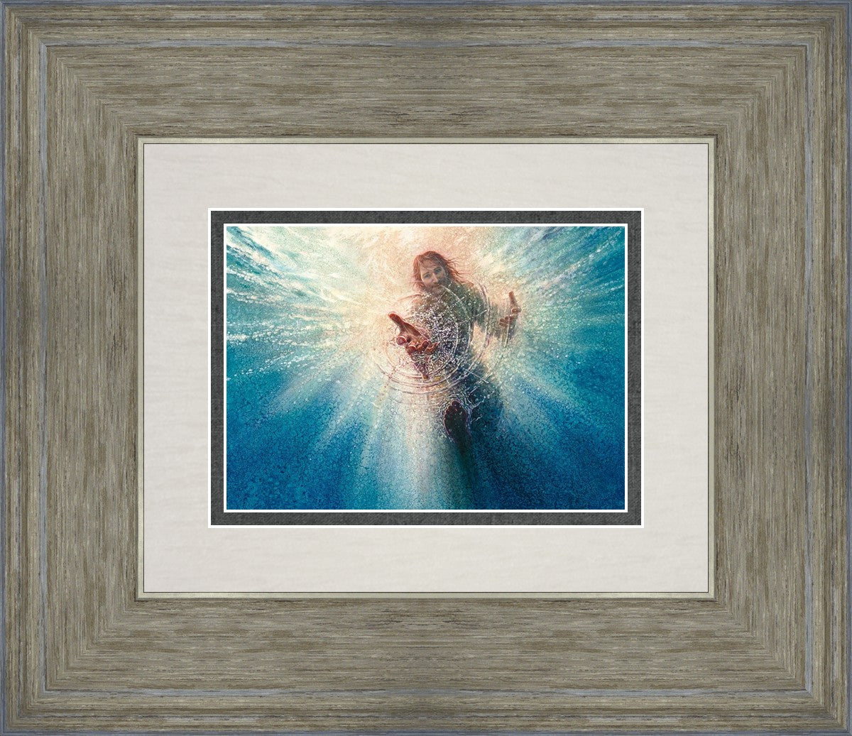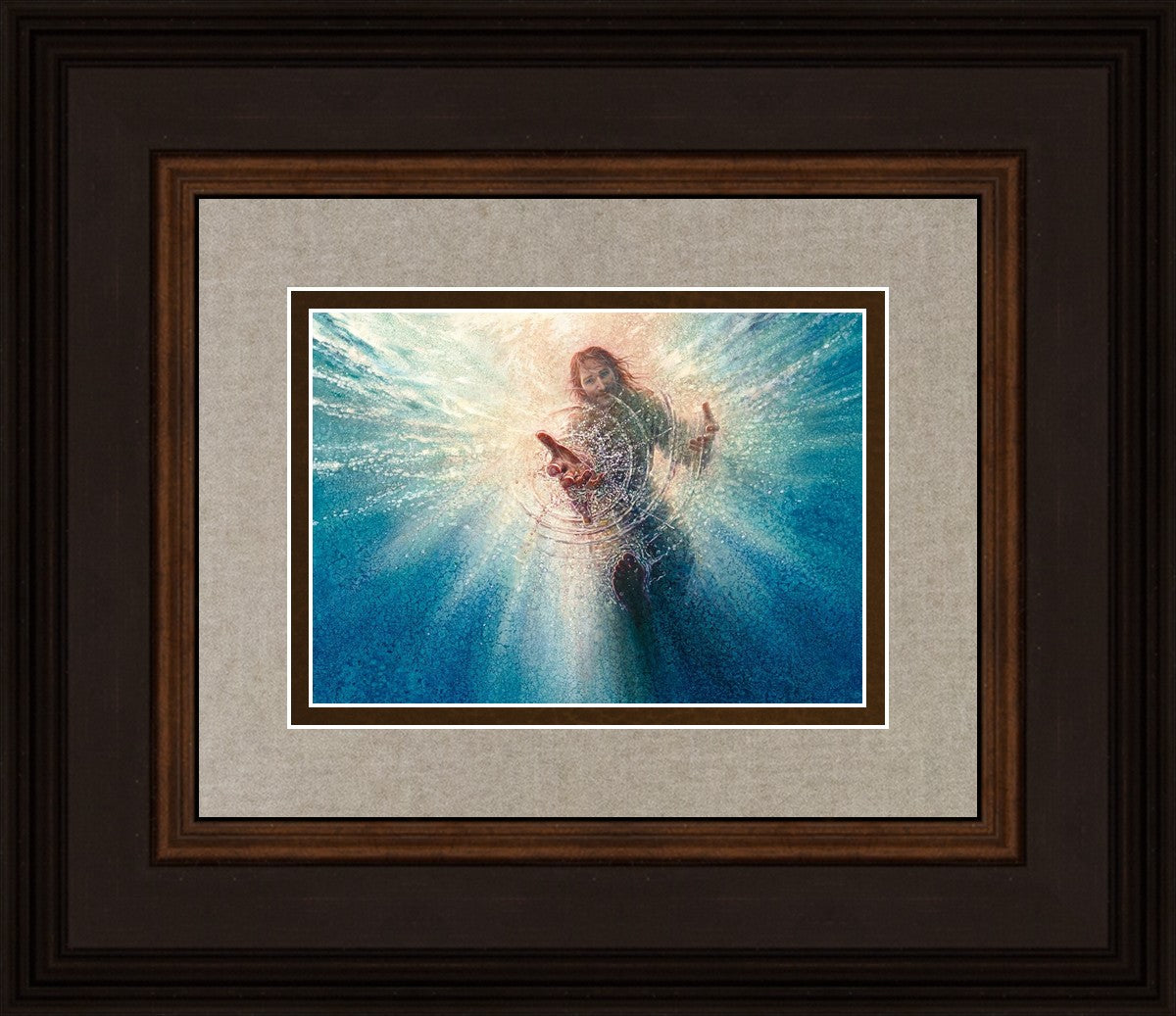 His Mighty Hand is a painting by Yongsung Kim. This painting depicts Jesus reaching down to save Peter from drowning.