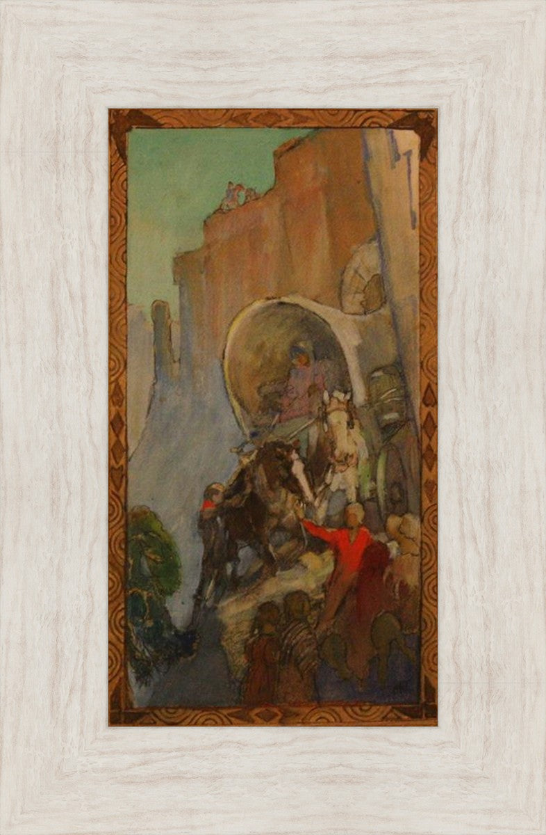 ®Stanford started the team down the 'Hole.' The wagon lurched downward. With the first jolt the rear horse and Sister Smith were literally catapulted into the air. Recovering, she hung back, pulling on the lines with all her strength and courage. A jagged rock cut a cruel gash in her leg from heel to hip. The horse behind the wagon fell to his haunches. The halfdead animal was literally dragged most of the way down the