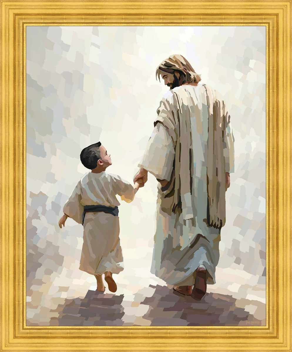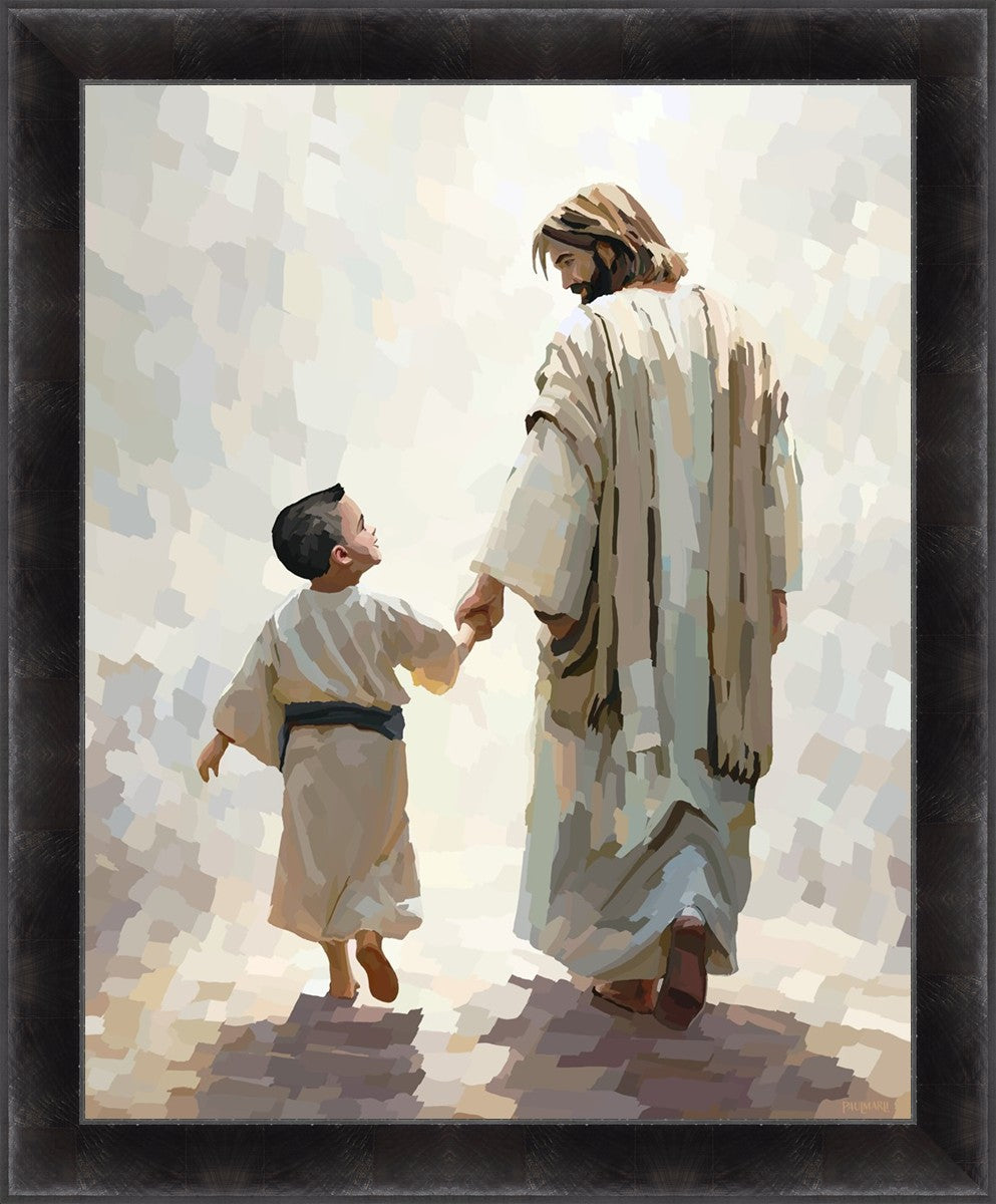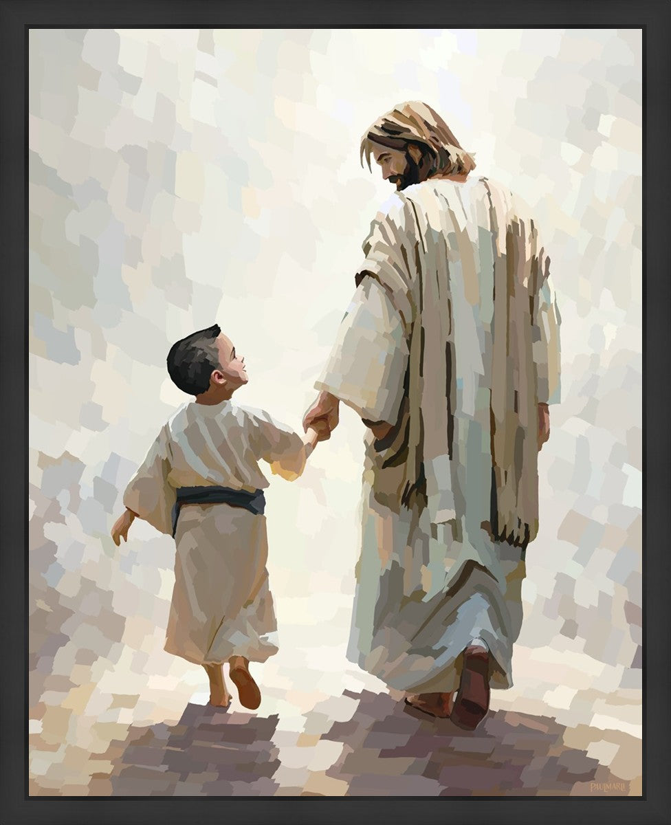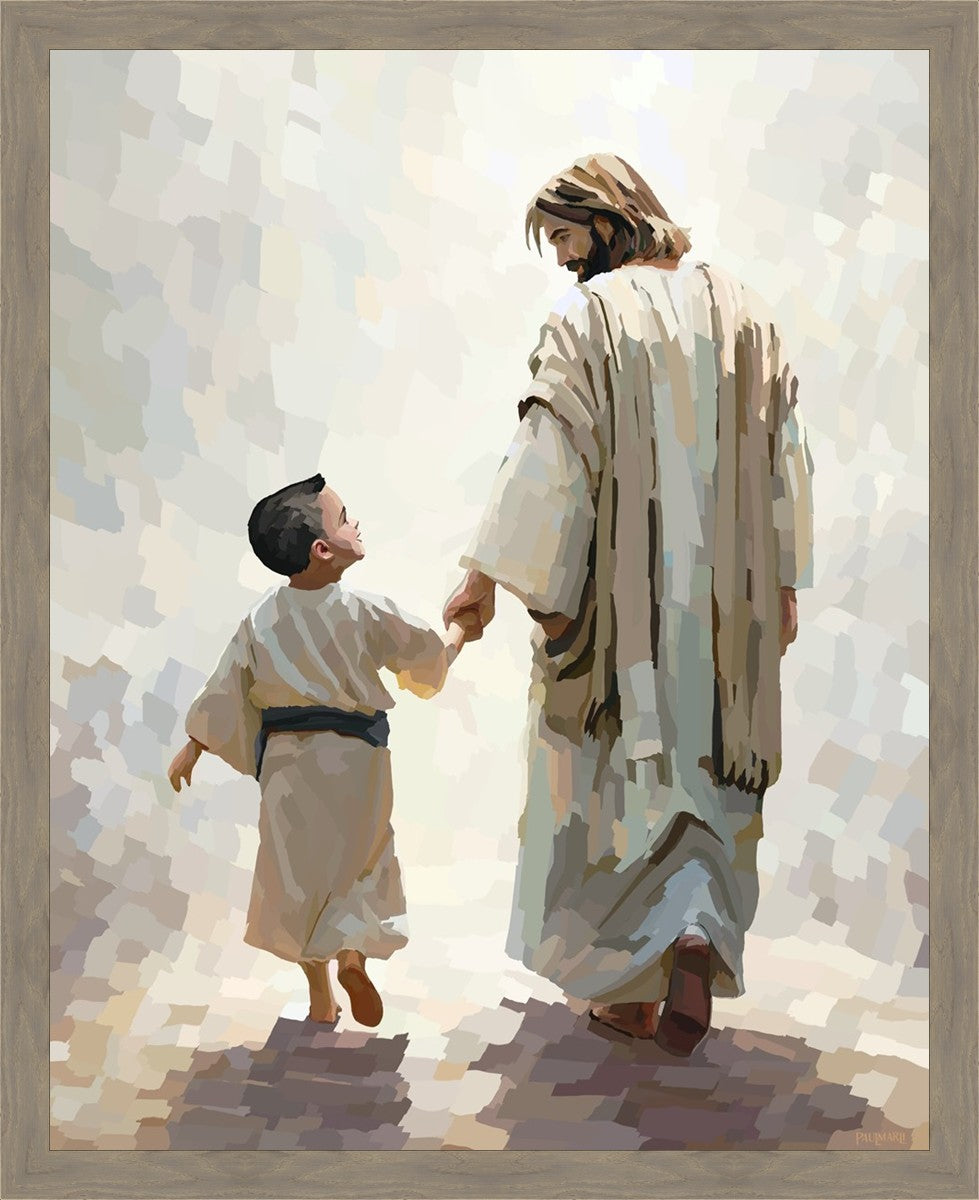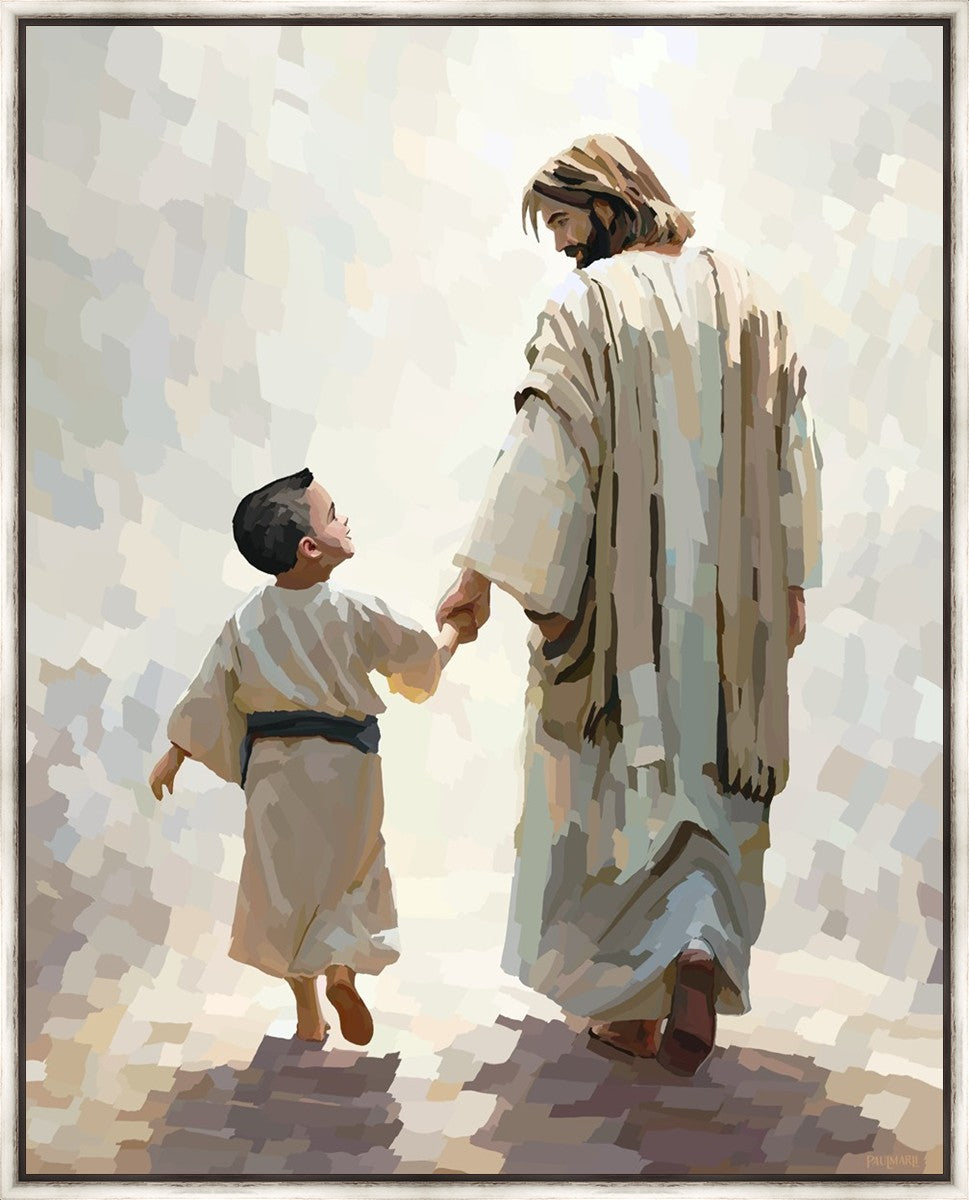 This painting was inspired by a family whose young boy recently had a tragic passing. I had an idea of an image of what a painting can look like with Christ and a young boy, but then I had a dear friend of mine mention an experience they had - a dream of an image to paint - which ended up leading to this view of the image with Christ and the boy.