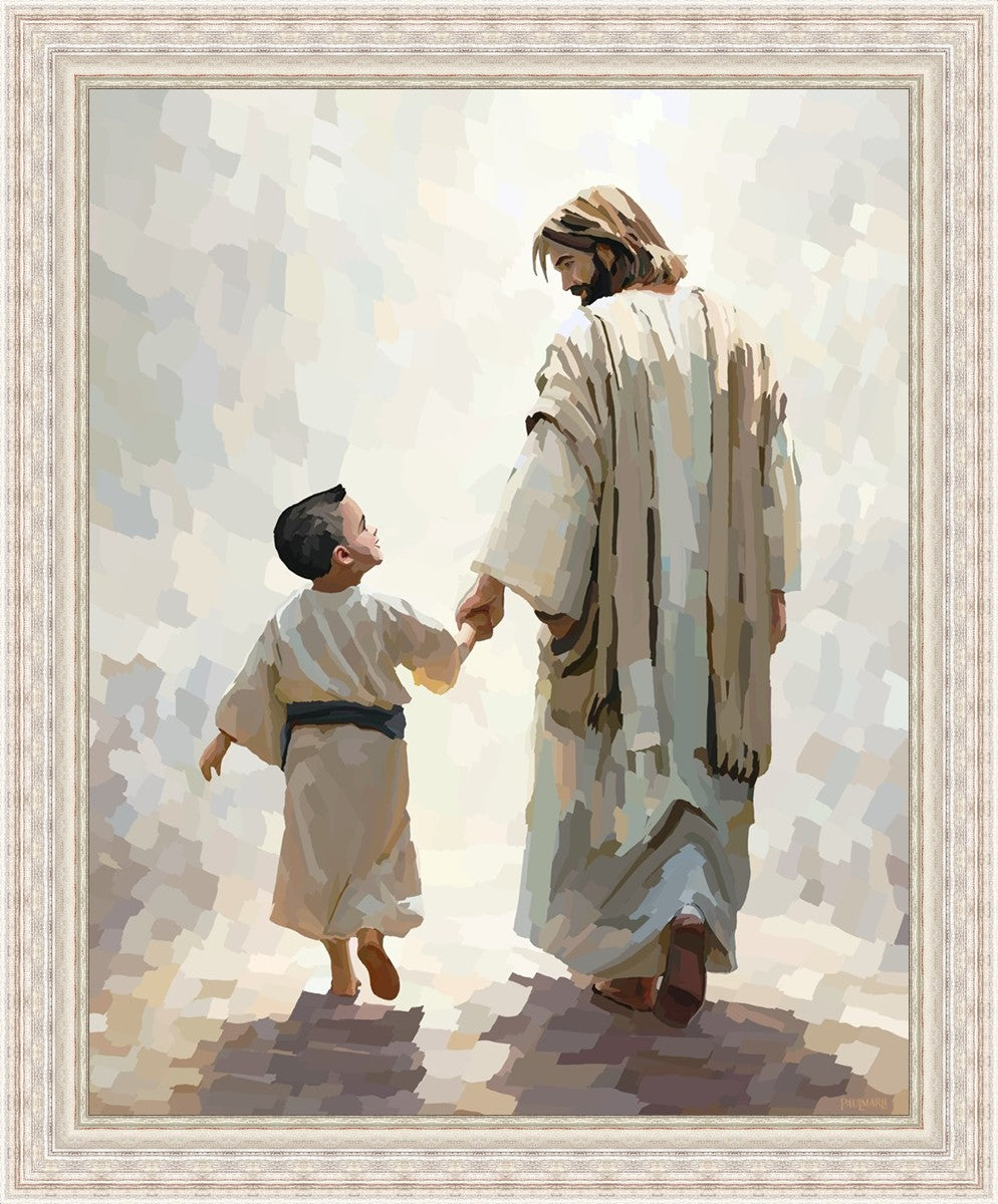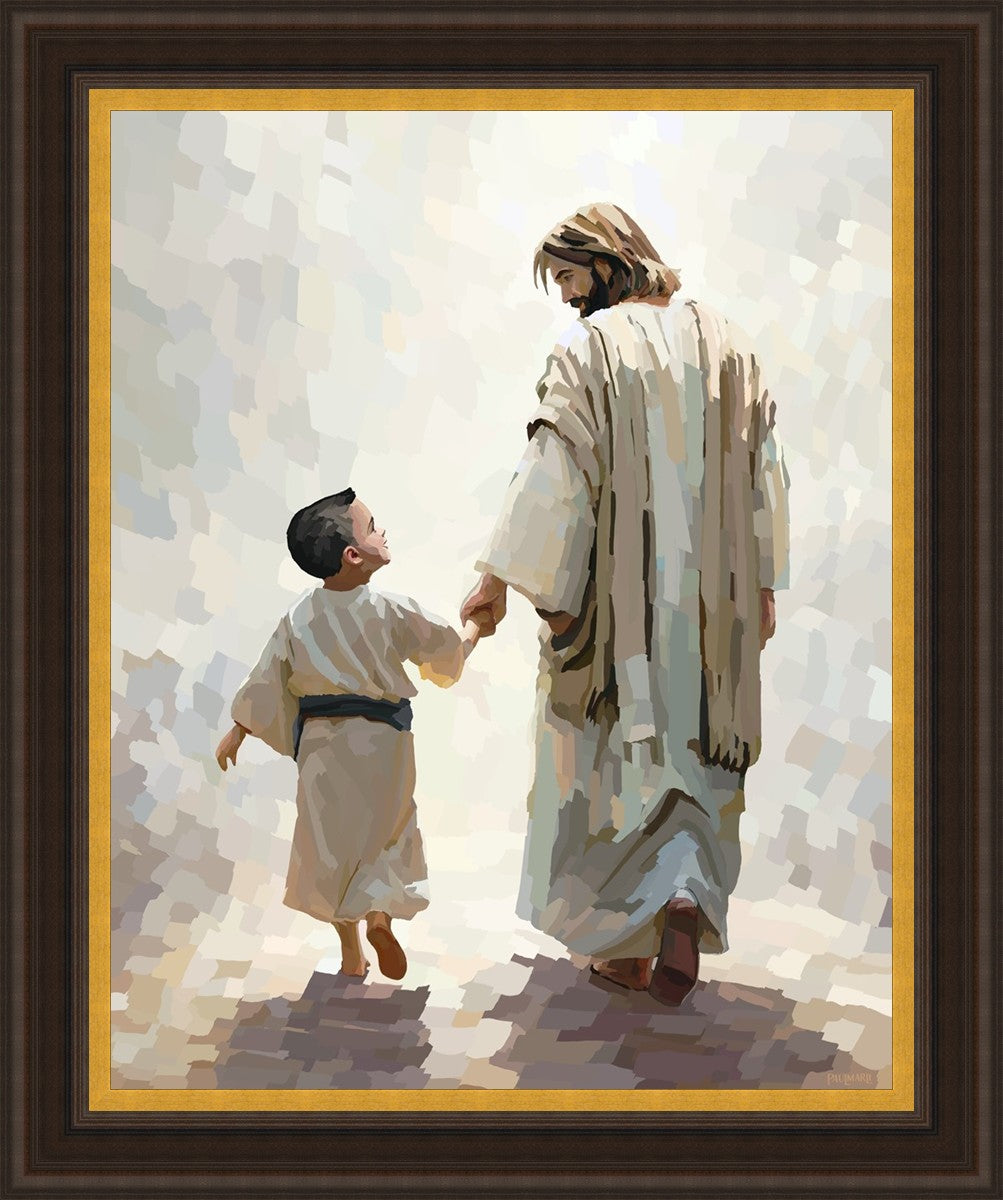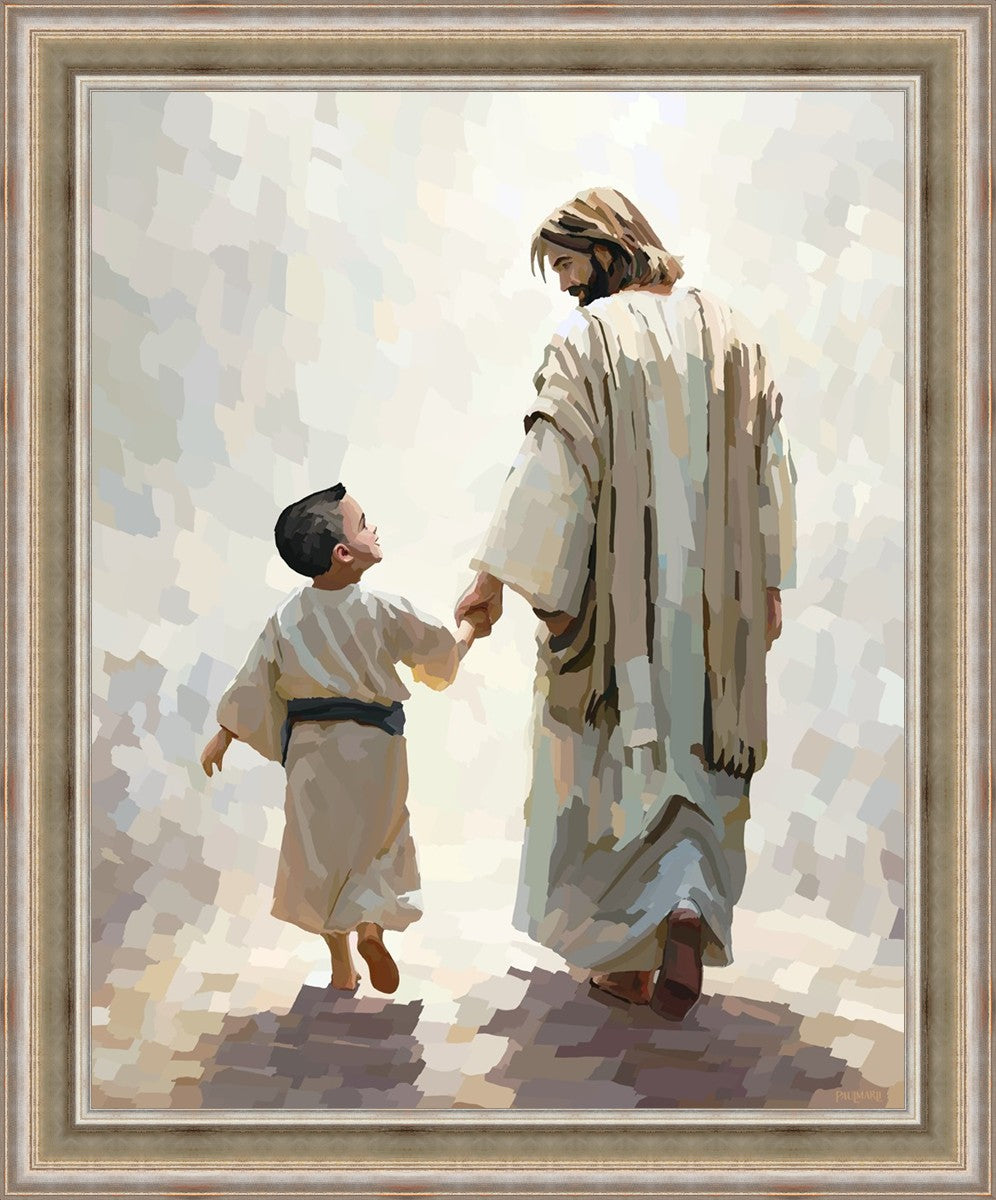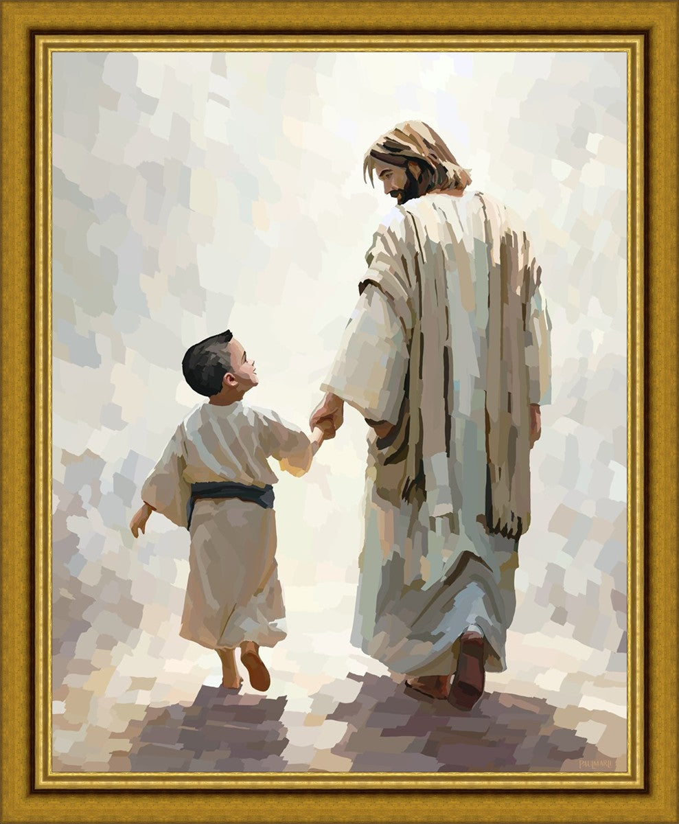 This painting was inspired by a family whose young boy recently had a tragic passing. I had an idea of an image of what a painting can look like with Christ and a young boy, but then I had a dear friend of mine mention an experience they had - a dream of an image to paint - which ended up leading to this view of the image with Christ and the boy.