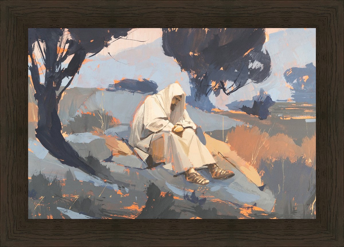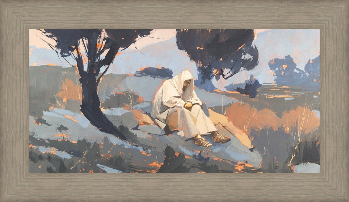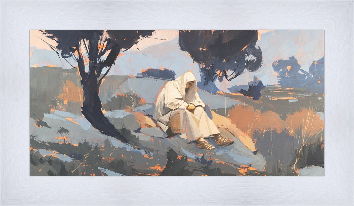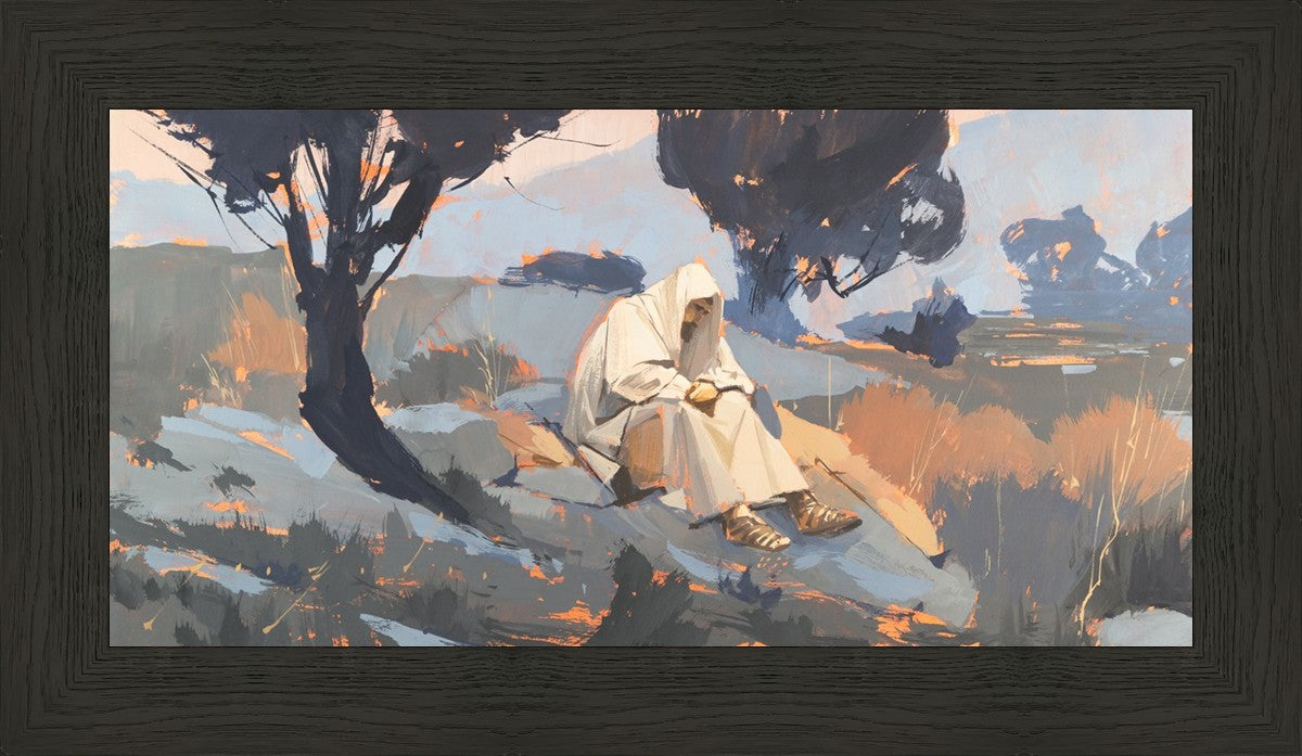 Humble Prayer is a depiction of Christ praying in a solitary place. I like to think that Christ had times where he sought solitude and peace away from the hustle and bustle of life and people. I feel that nature has a way of healing us and creates an atmosphere where we can reflect on things and perhaps get clarity of mind.