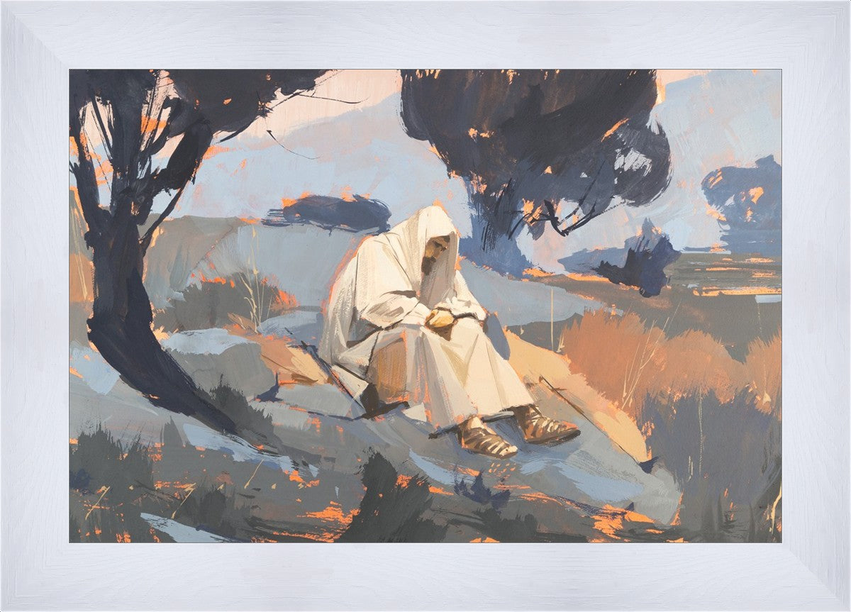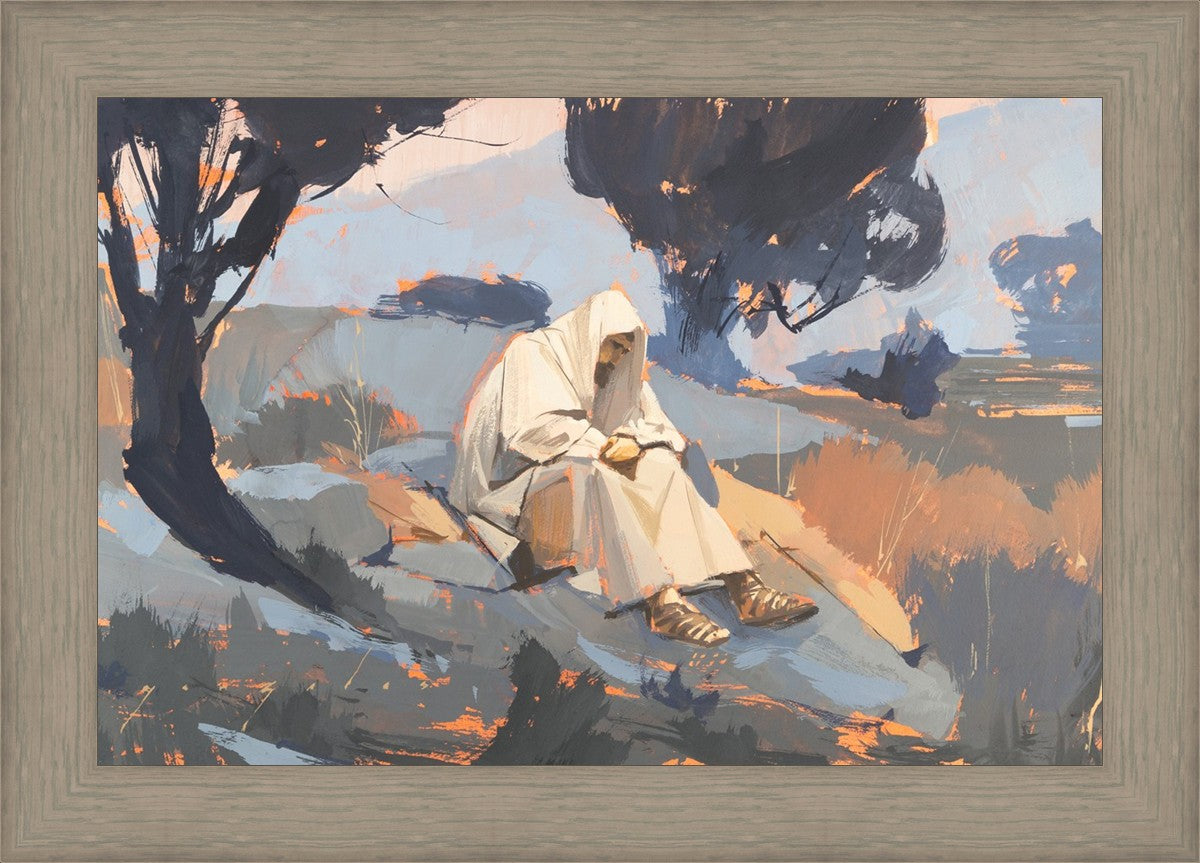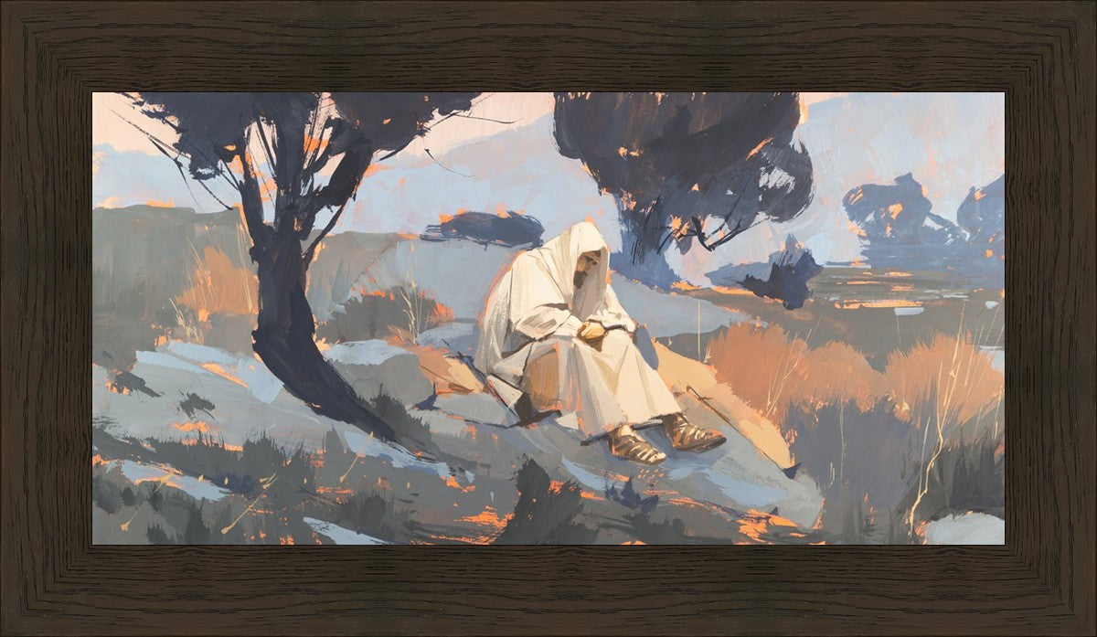 Humble Prayer is a depiction of Christ praying in a solitary place. I like to think that Christ had times where he sought solitude and peace away from the hustle and bustle of life and people. I feel that nature has a way of healing us and creates an atmosphere where we can reflect on things and perhaps get clarity of mind.