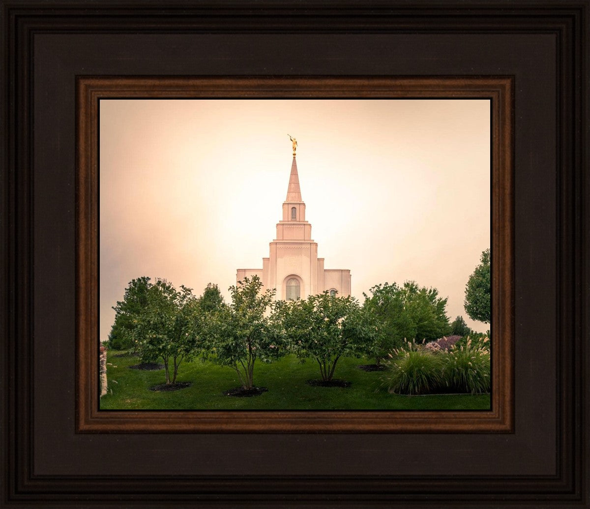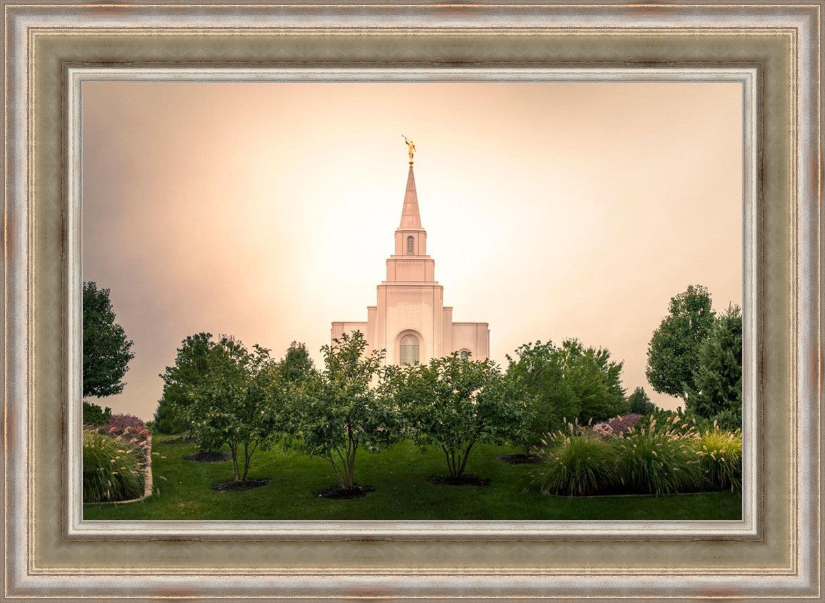 Sun breaking through the rain clouds at the Kansas City Temple.