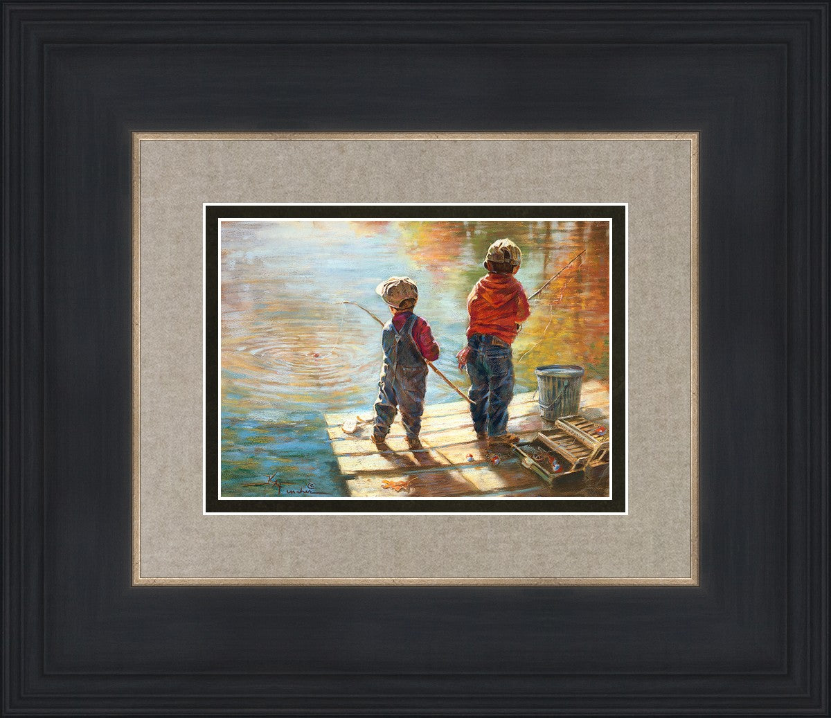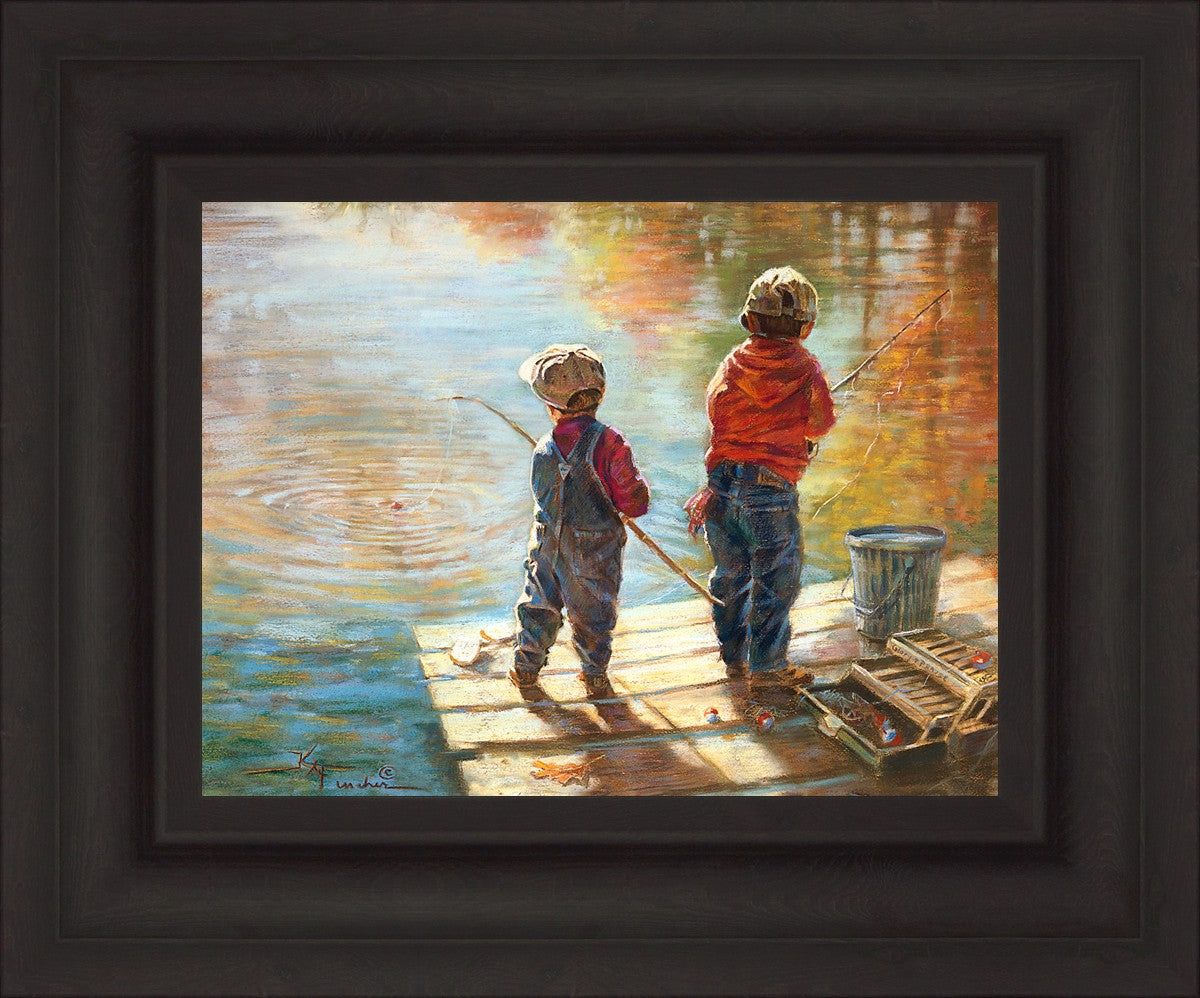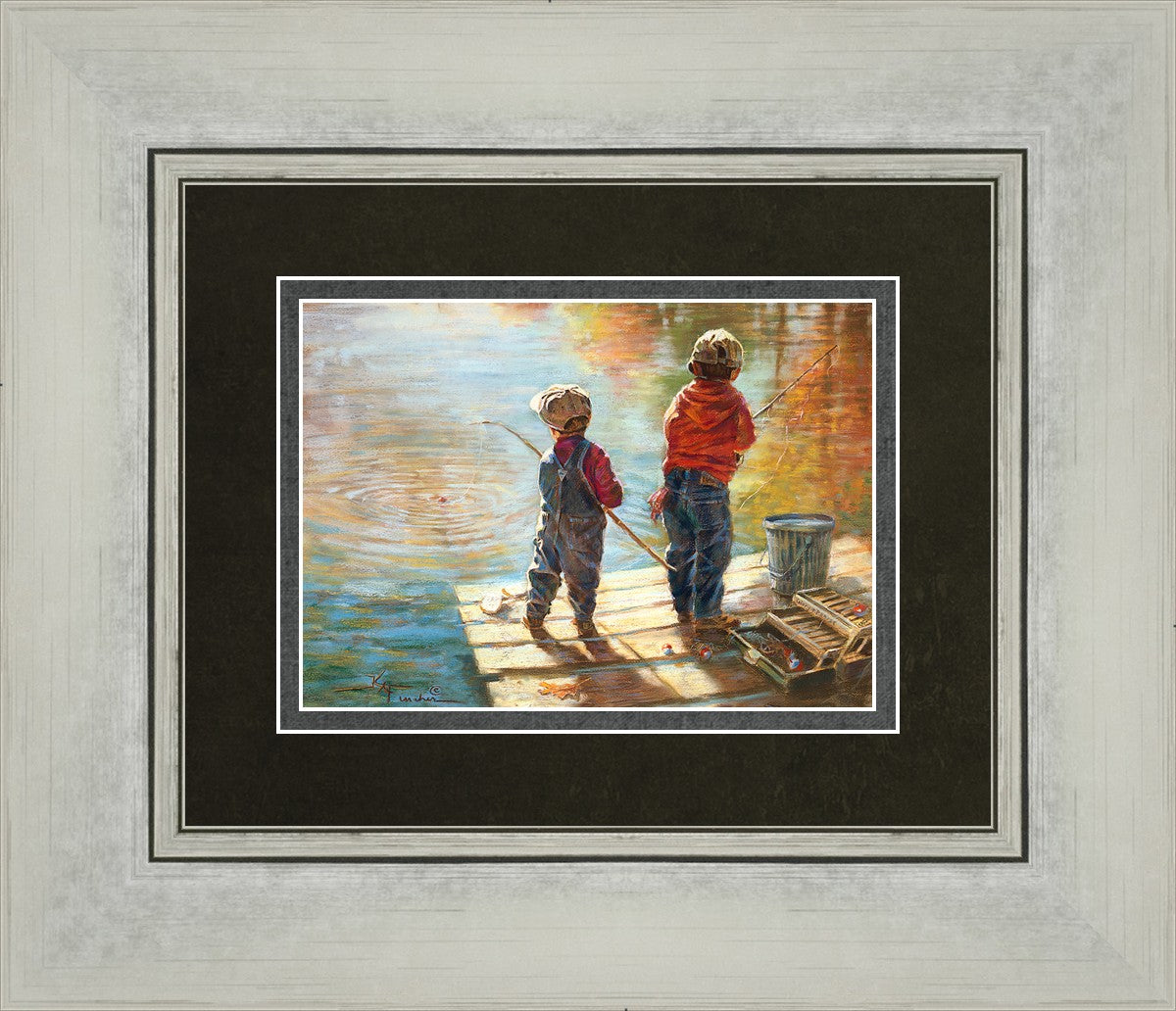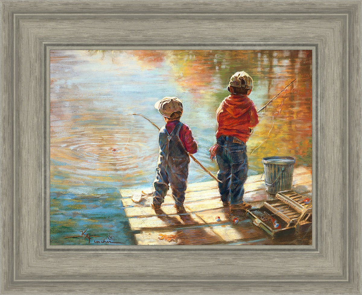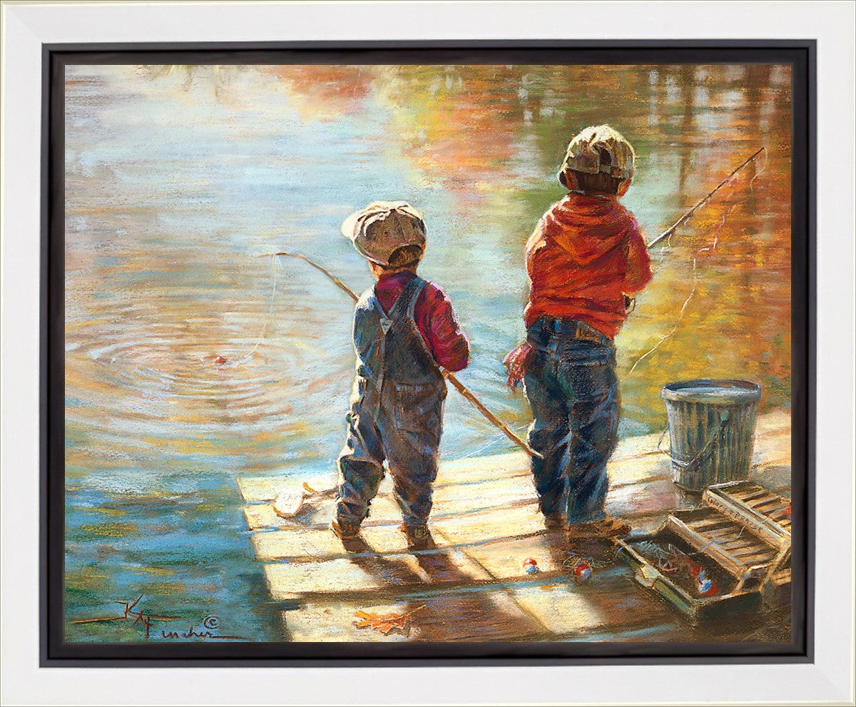You’re a Keeper shares the story of two brothers learning to fish. The older brother proudly holds a new rod and reel with a fully stocked tacklebox at his feet. It is doubtful he will catch anything, for his line is slack and knotted. His younger brother is fishing with the basics—a cane pole and bread ball. He is awarded a bouncing bobber with a bite and quickly learns that it’s no longer fishing when you have a bite!