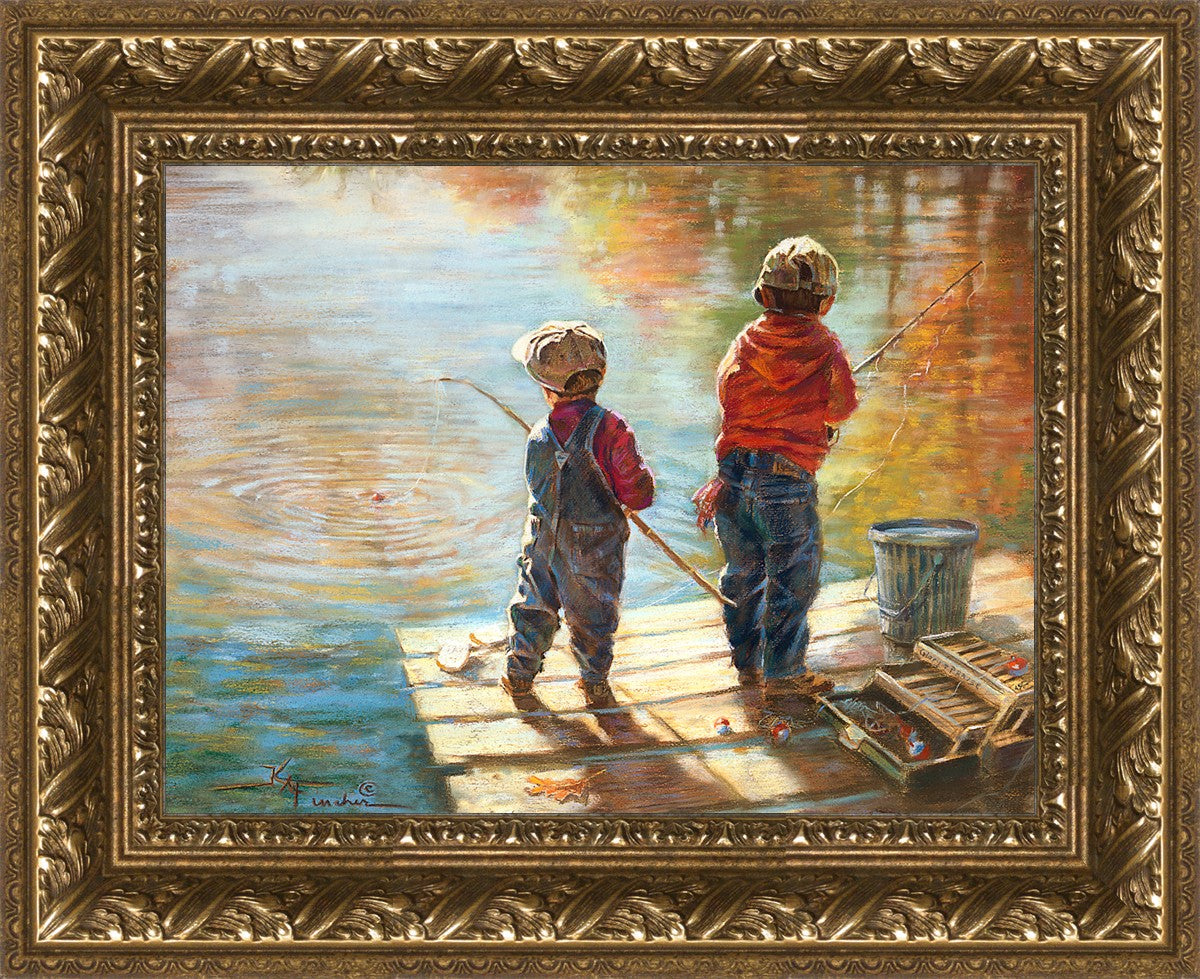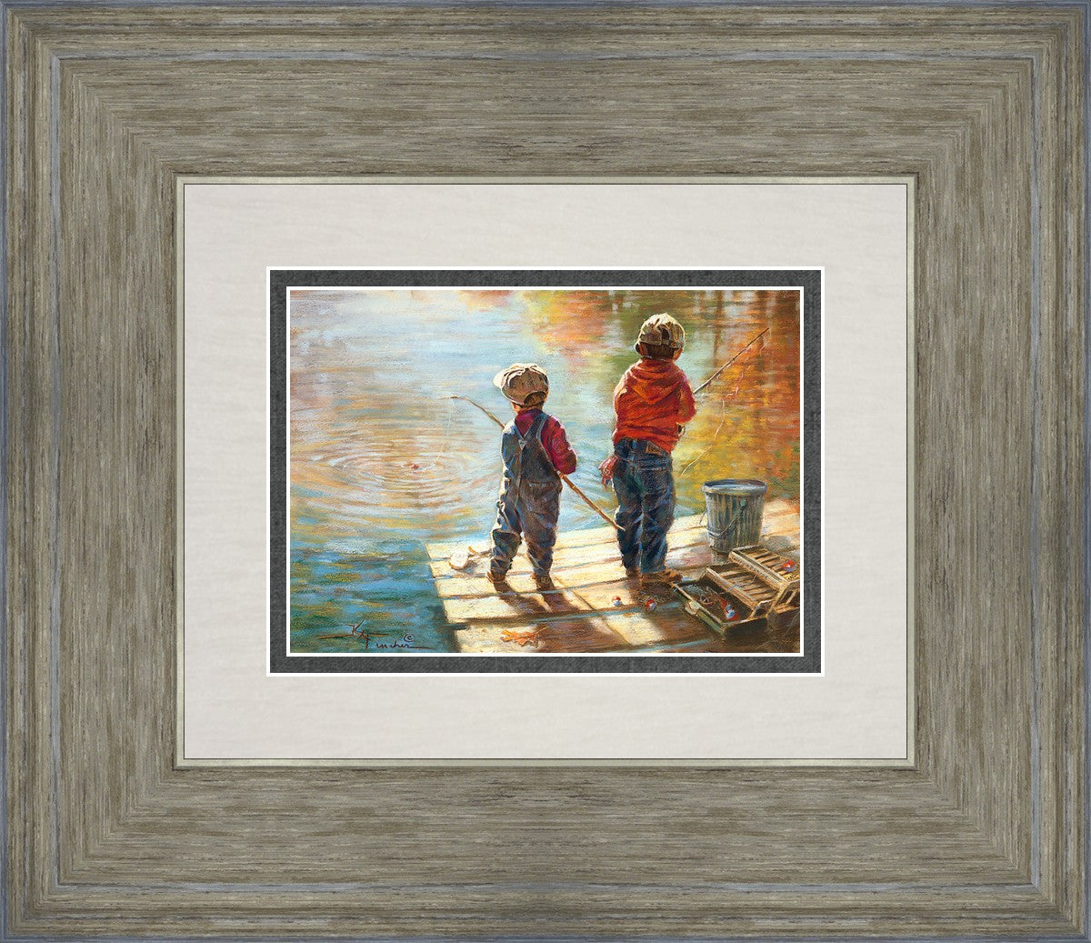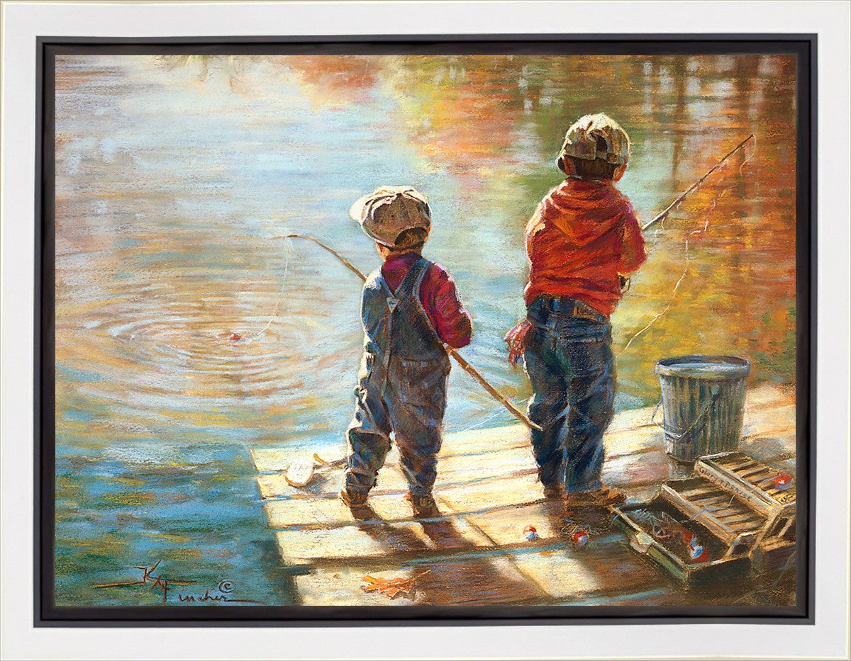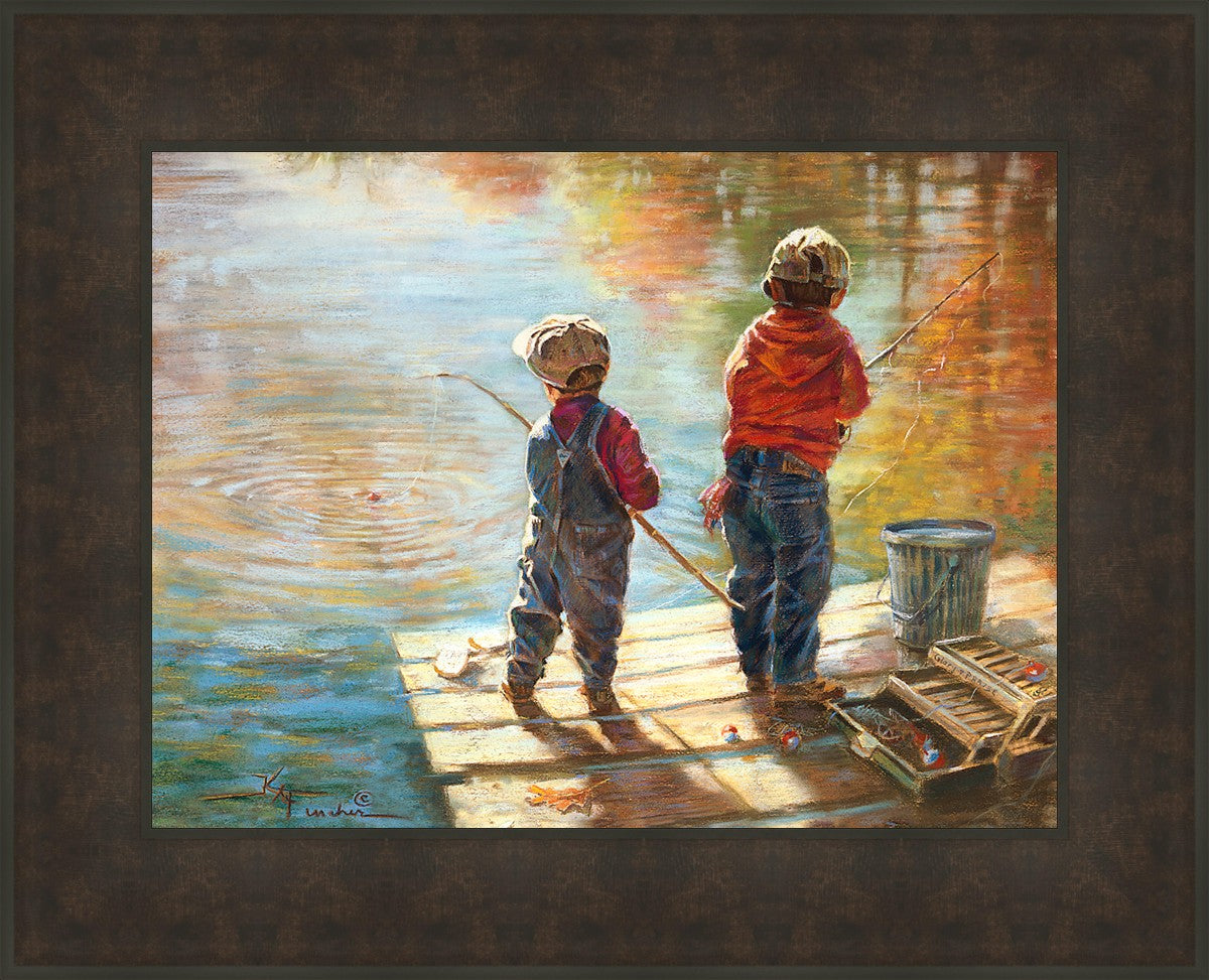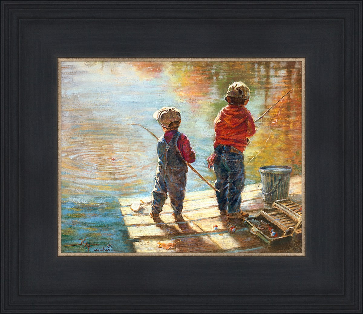 You’re a Keeper shares the story of two brothers learning to fish. The older brother proudly holds a new rod and reel with a fully stocked tacklebox at his feet. It is doubtful he will catch anything, for his line is slack and knotted. His younger brother is fishing with the basics—a cane pole and bread ball. He is awarded a bouncing bobber with a bite and quickly learns that it’s no longer fishing when you have a bite!