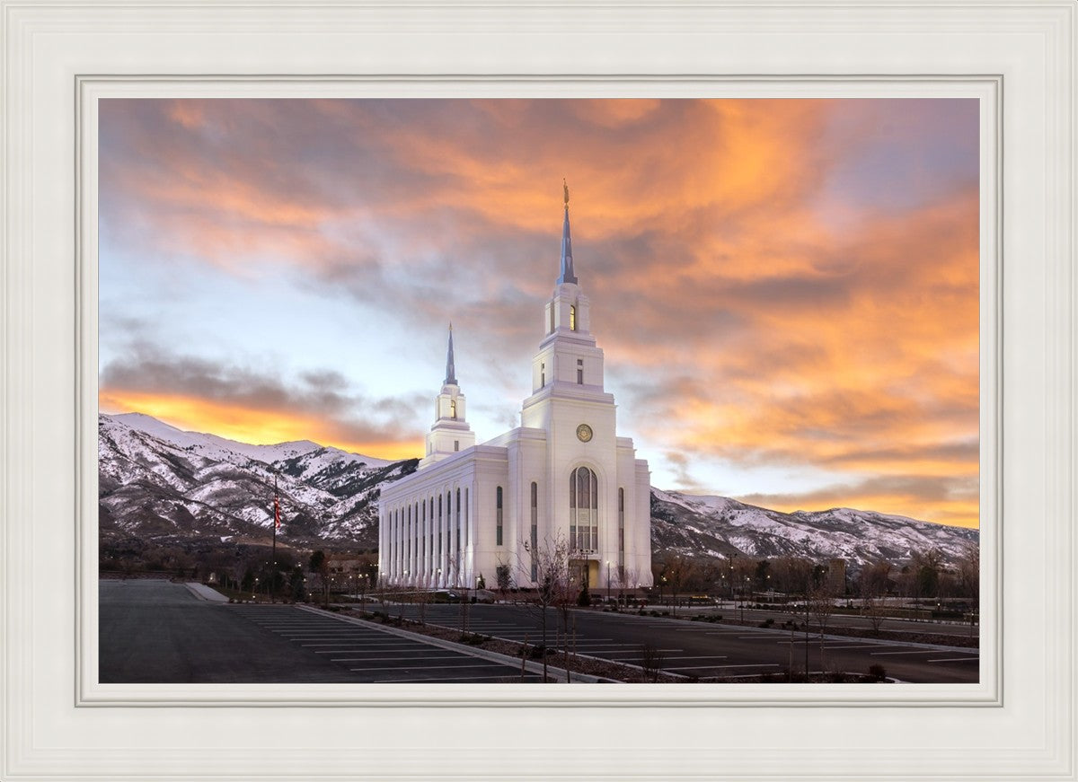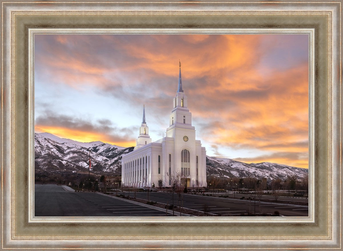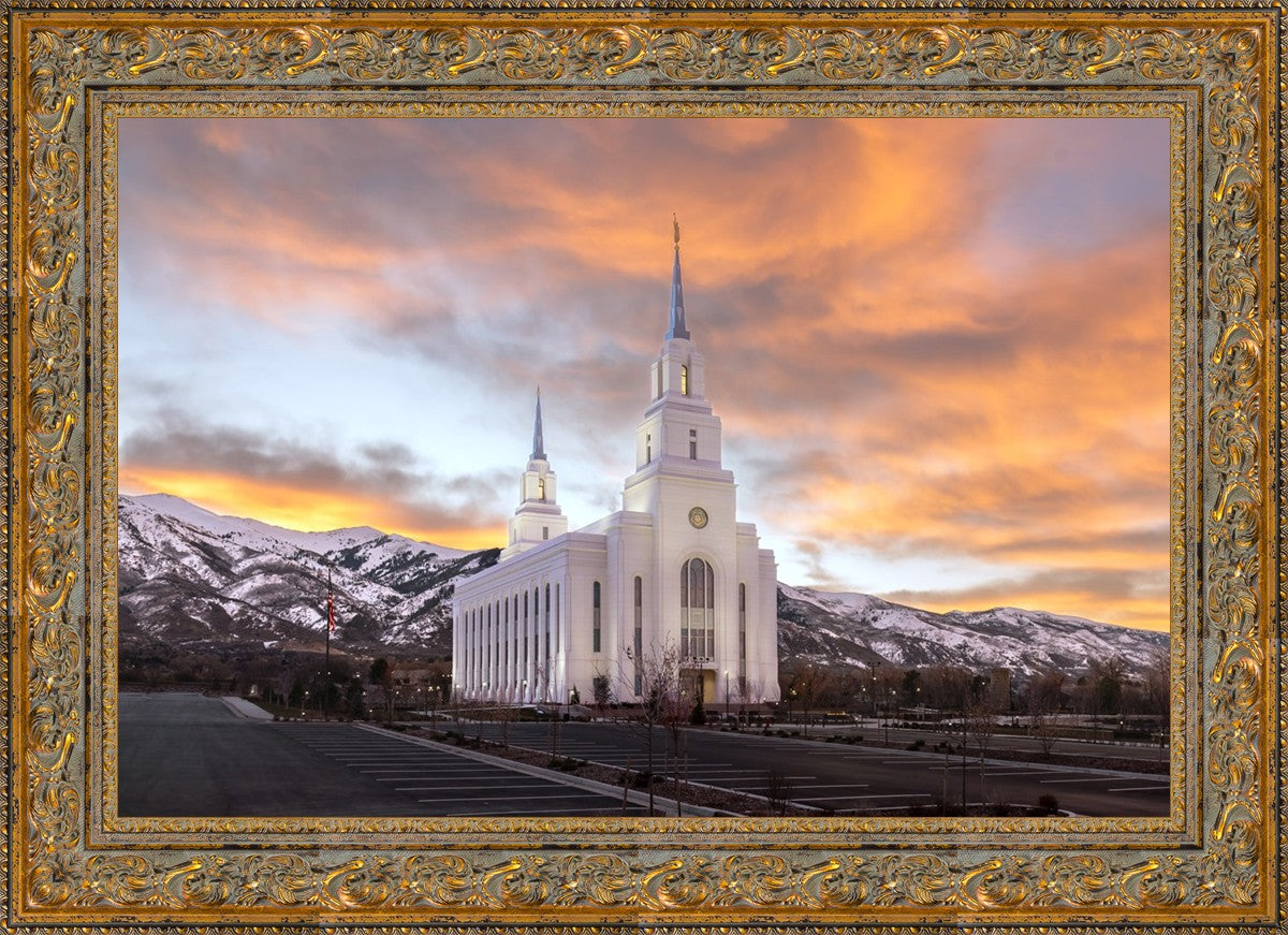 With the approaching storm and the high clouds before sunrise, I knew the color could be good and was able to capture this golden sunrise picture of the Layton Utah Temple.