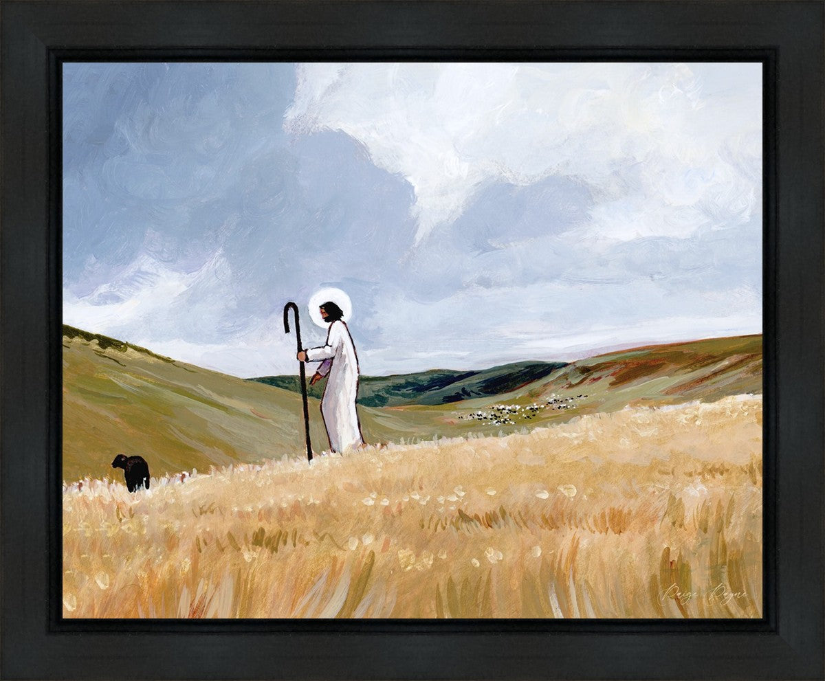 I think all of us can relate to this wandering sheep in some way. I know that I have been the lost sheep many times in my life. In the times where I feel isolated, afraid, full of fear, sorrow, anger, or loneliness, there is one constant. Him. The Good Shepherd who always seeks me when I wander. Wandering is many different things for me. I wander away when I am stressed, overwhelmed, sad, going through hard things, when I have really big and scary questions that don’t have answers, when I make mistakes. Even when I’m looking away from Him, just like the little black sheep in this painting, He is coming to find me again. He never turns His back on His precious, wandering sheep.