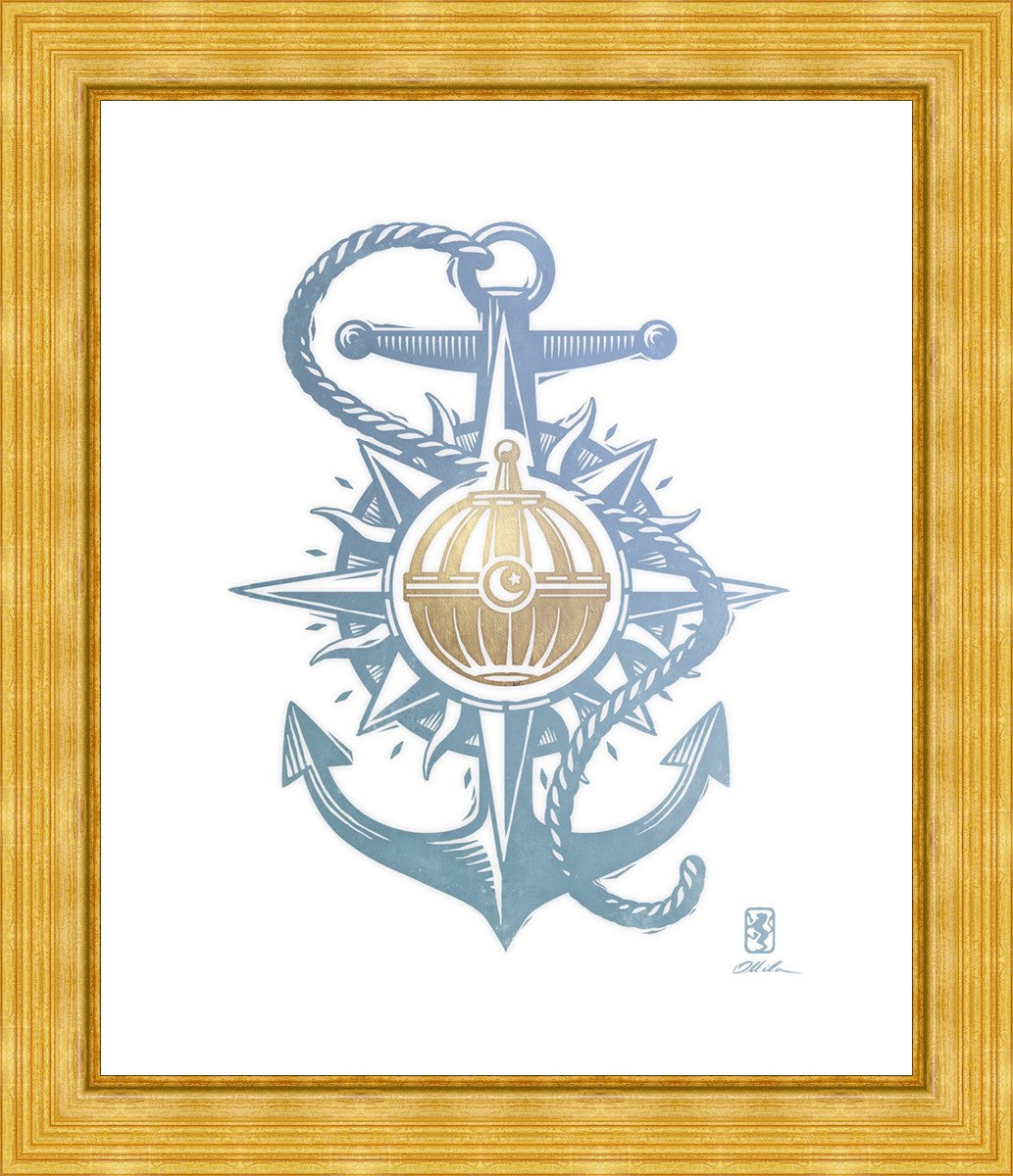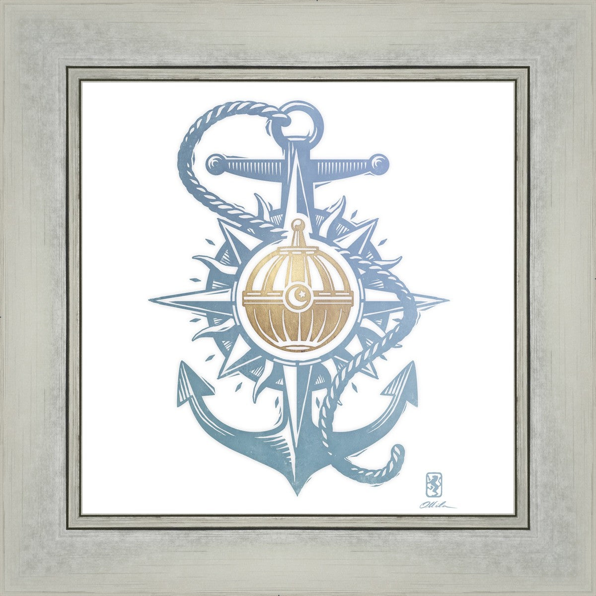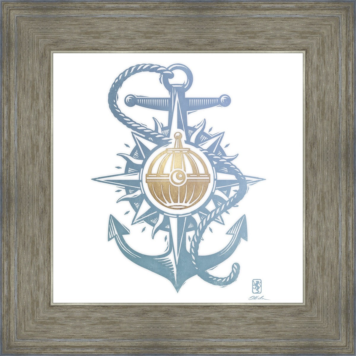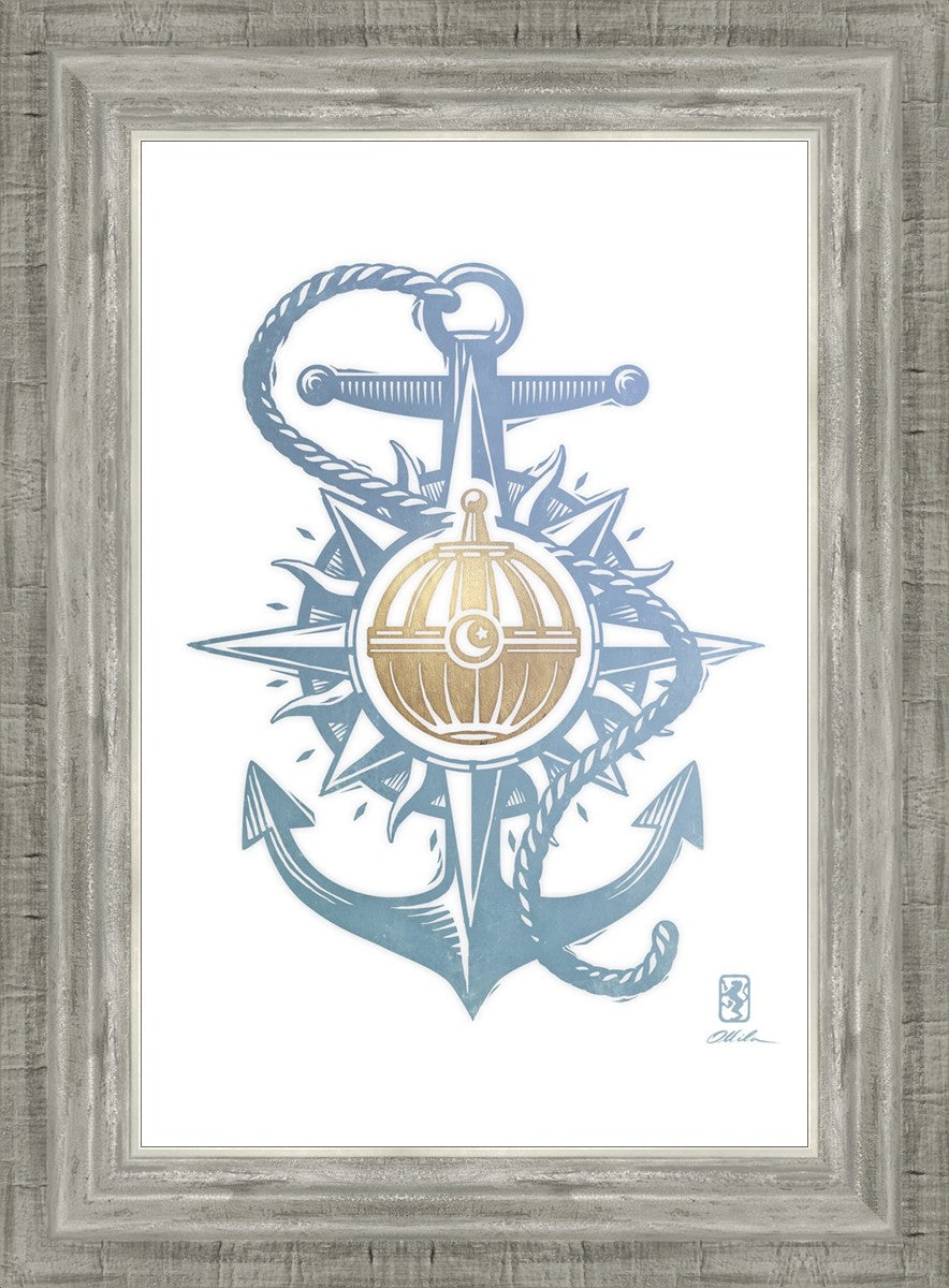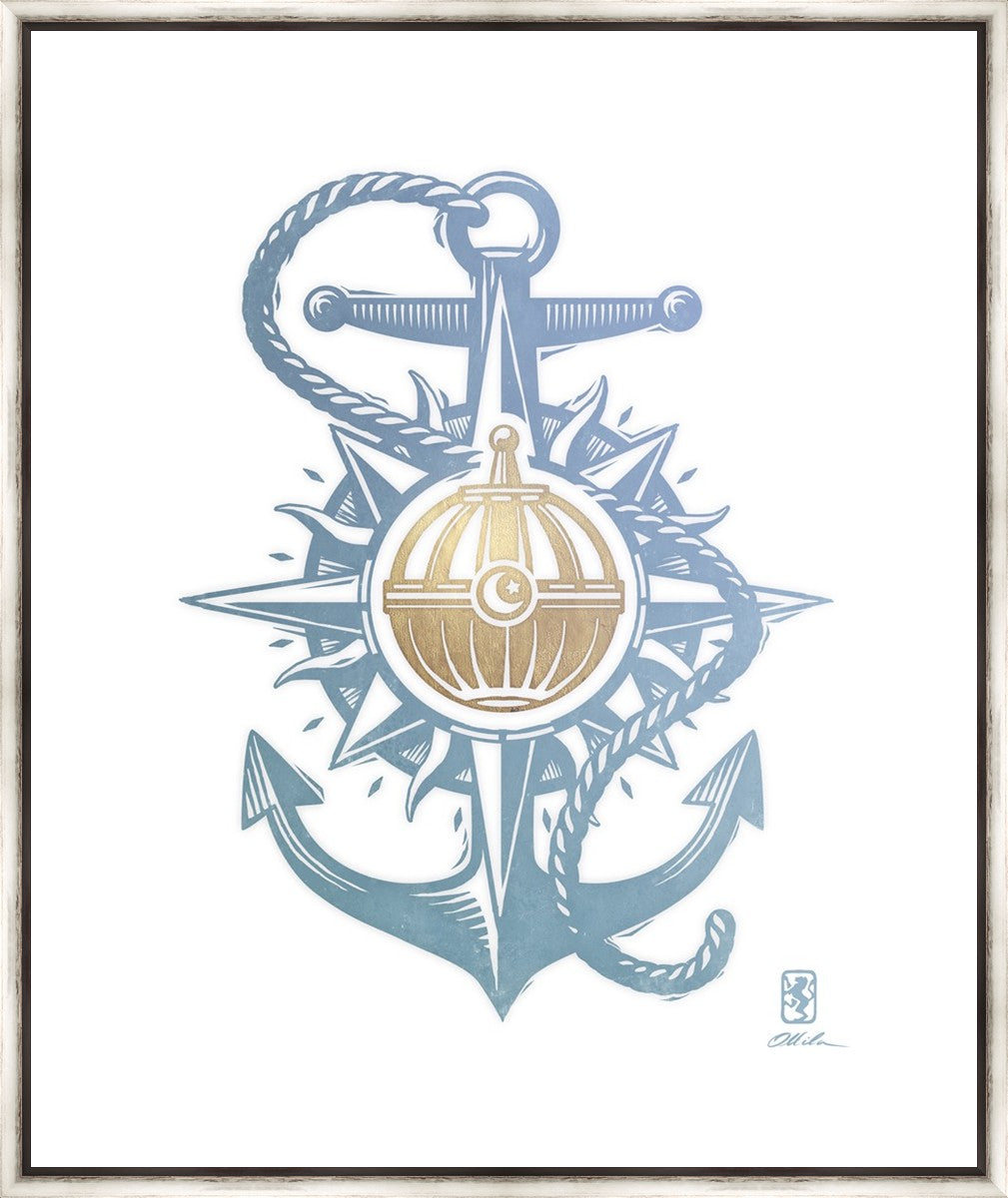 This piece is a hand carved woodcut relief print. The artist was inspired to create this piece by the story of Lehi's journey across the sea. The Liahona represents the word of Christ, which can act as a compass to guide us, and an anchor to which we may hold.