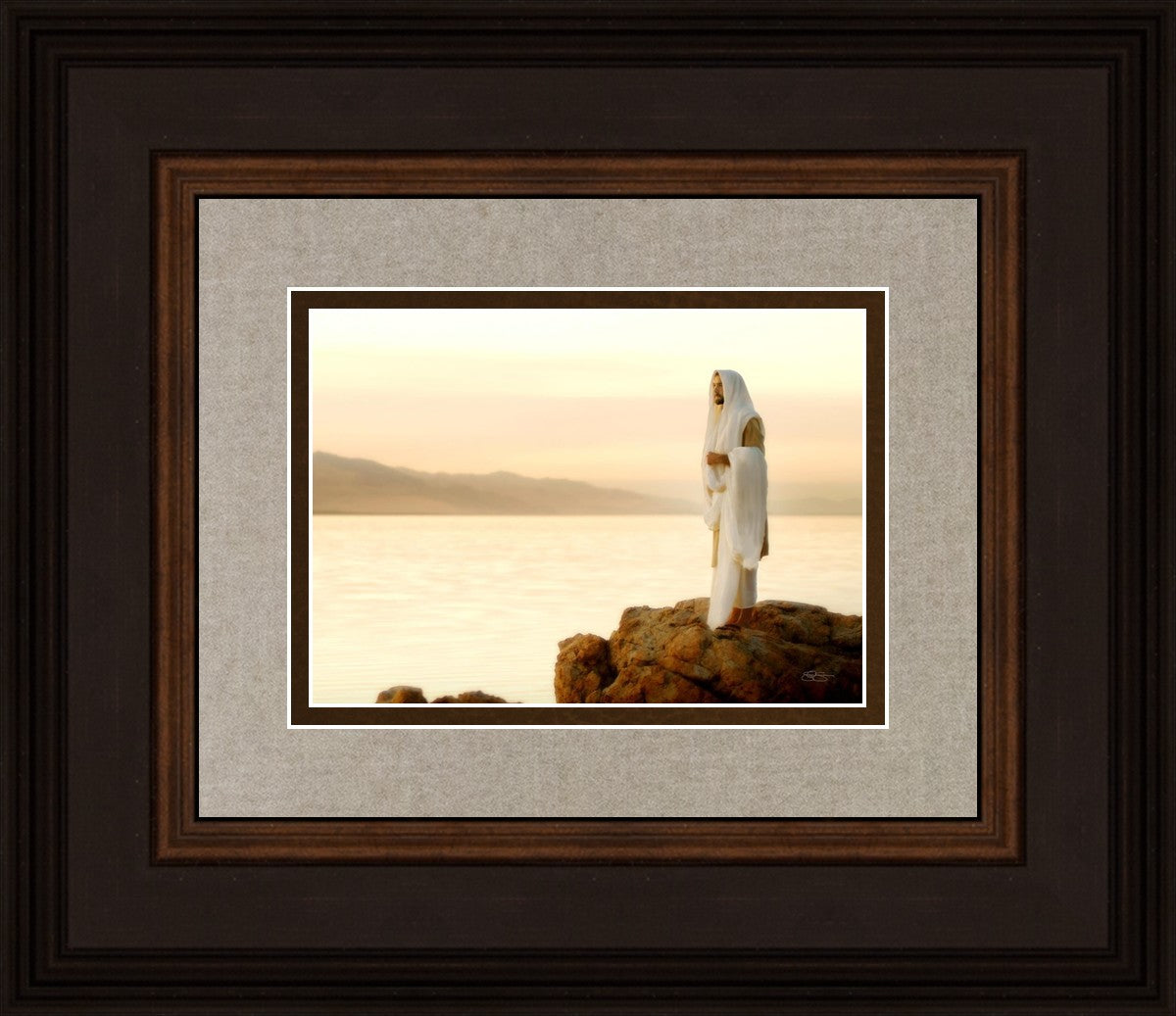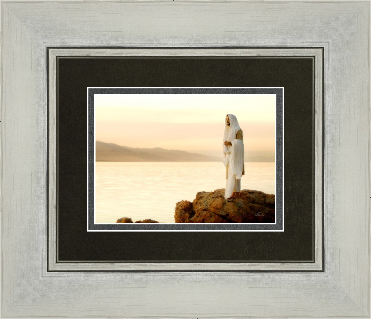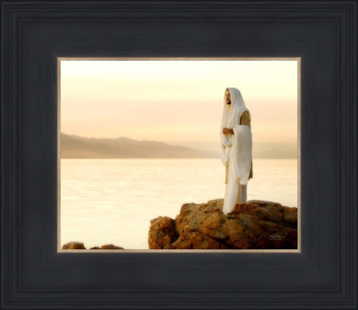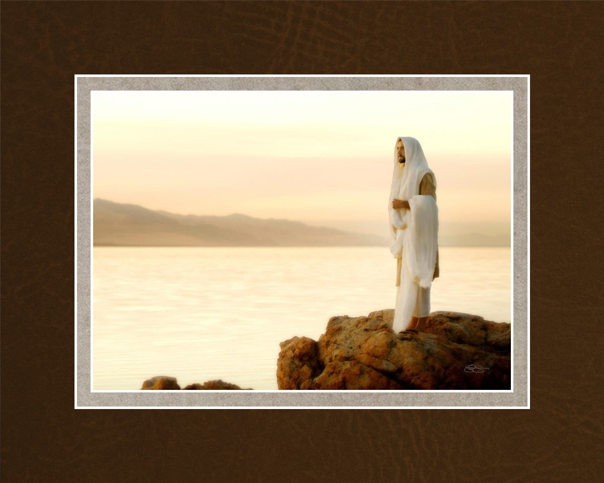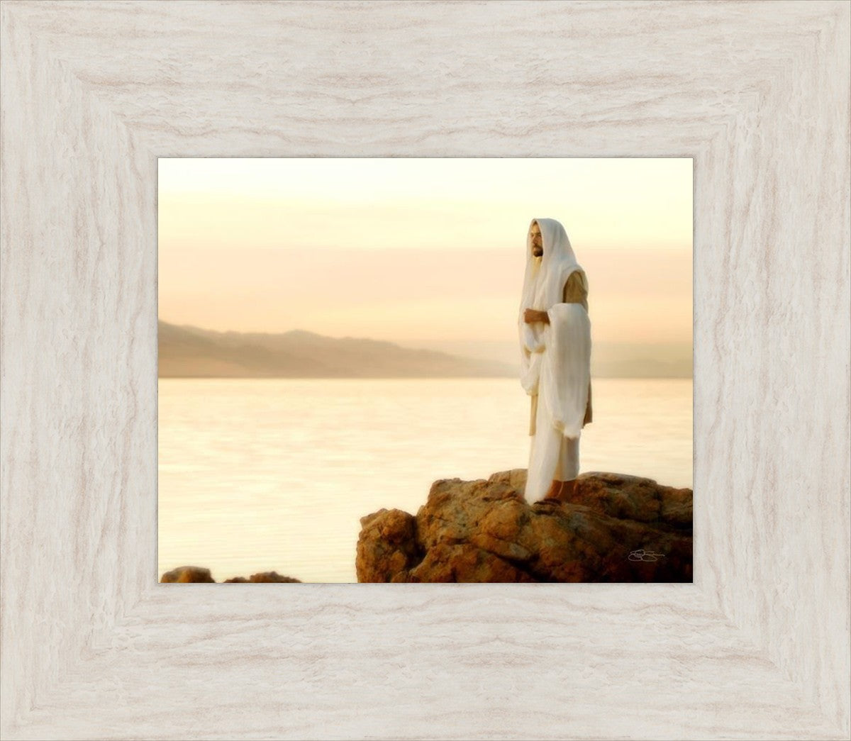 "Light of the World" by Scott Sumner depicts Jesus Christ the light of the world standing on shoreline rocks overlooking the Sea of Galilee.