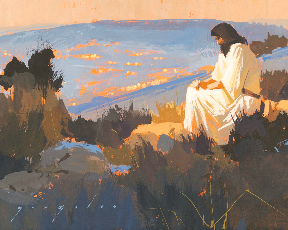 The title comes from Mathew 5:14 and Christ's Sermon on the Mount. Christ is the ultimate light to the world and an example to all of us. I wanted to show Christ in a wilderness setting where he likely was found numerous times seeking guidance from our Father in Heaven as he grew from grace to grace. Here he is shown as being a light to all.