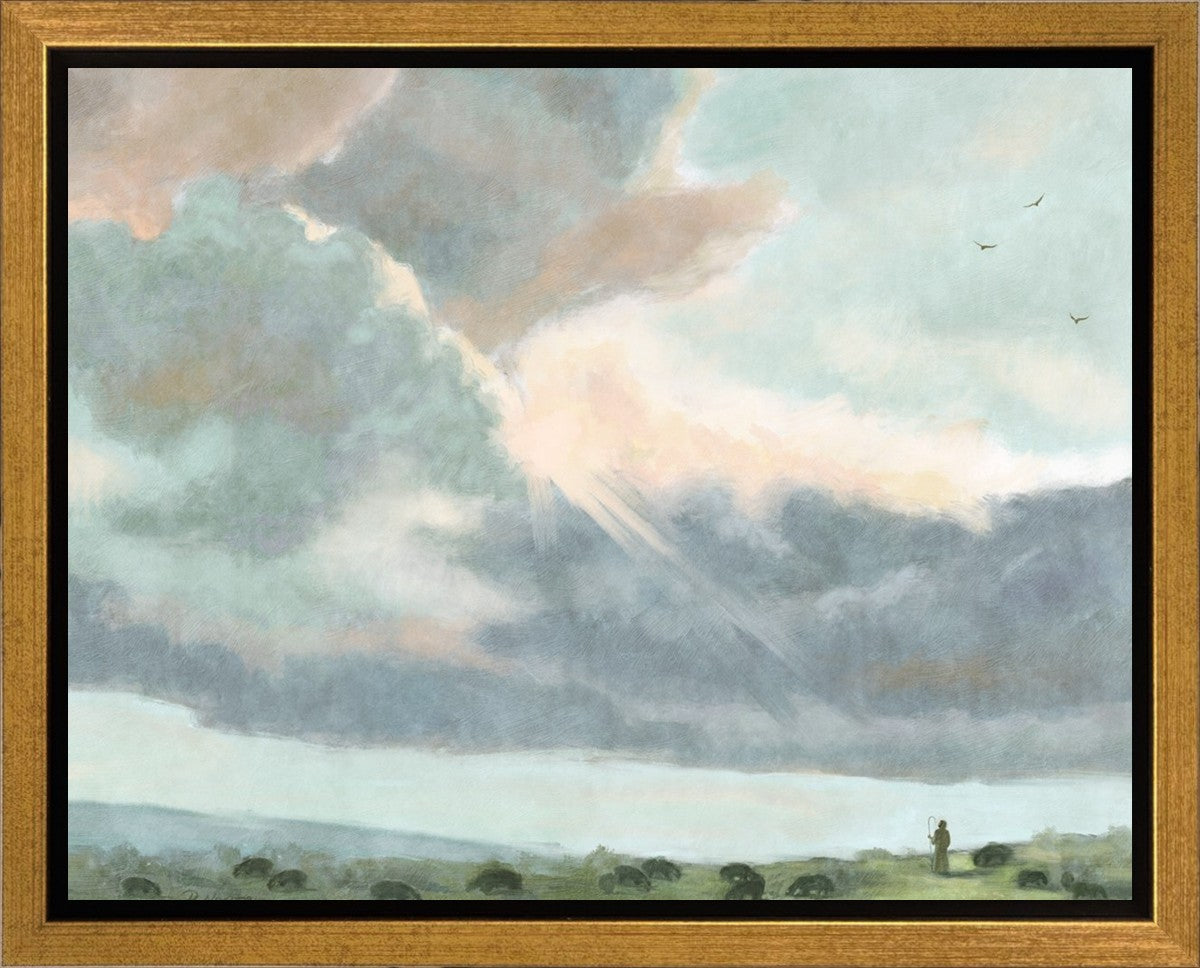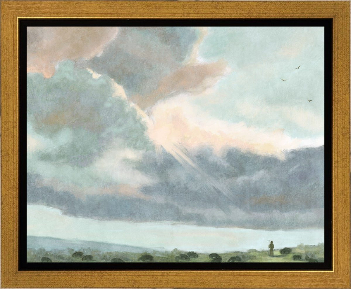 Inspired by Luke 12:32 "Fear not, little flock; for it is your Father's good pleasure to give you the kingdom." Based on Simon Andre Clement's 'Study of Clouds with a Sunset near Rome'
