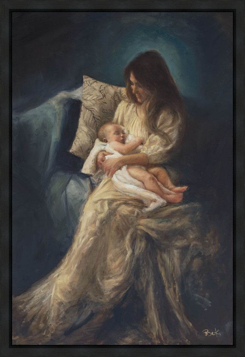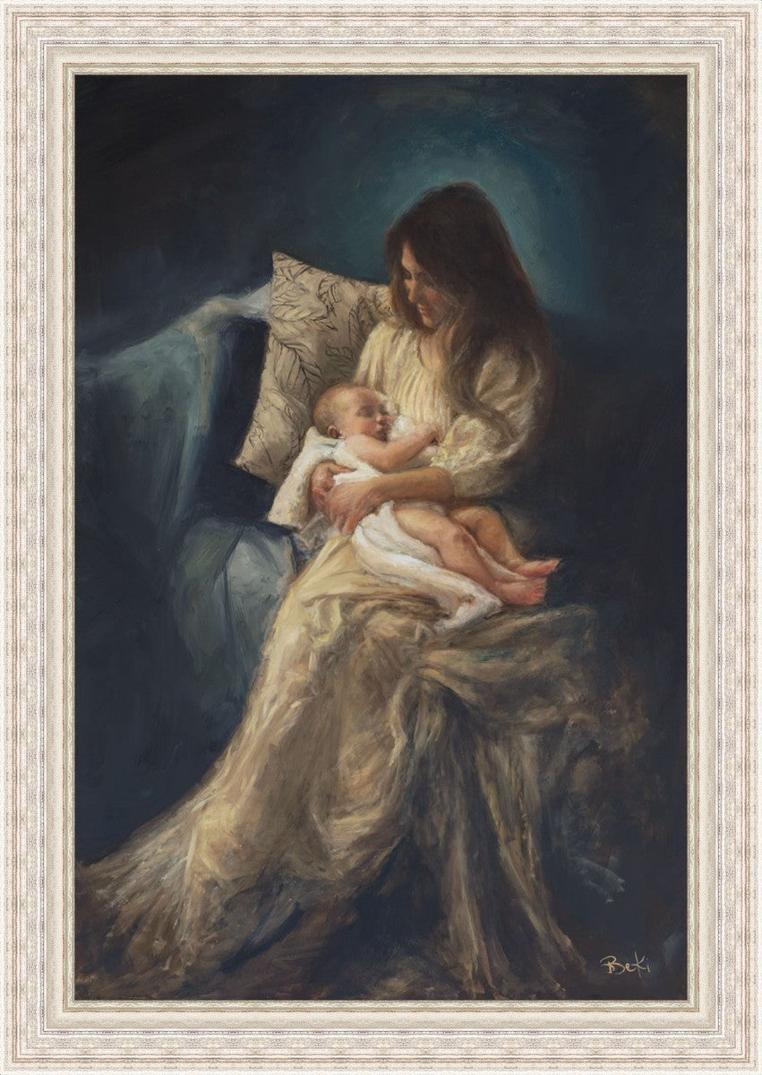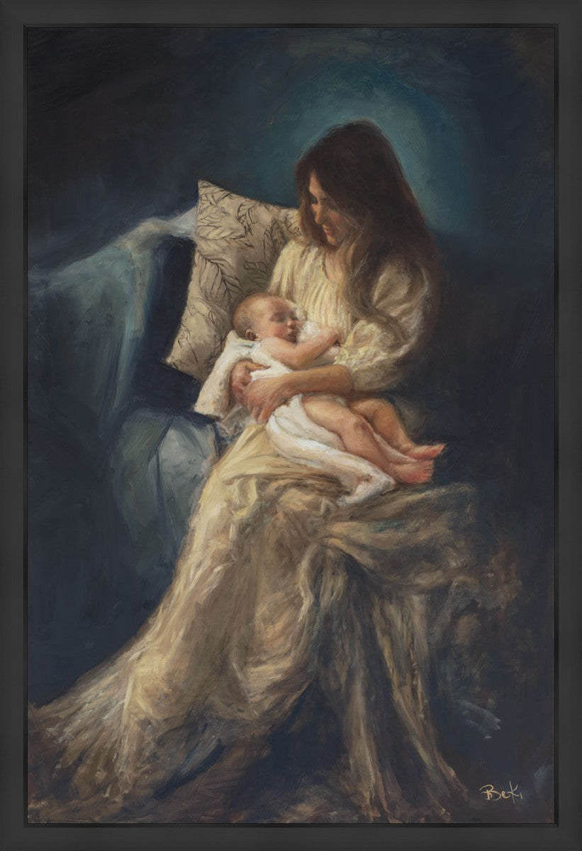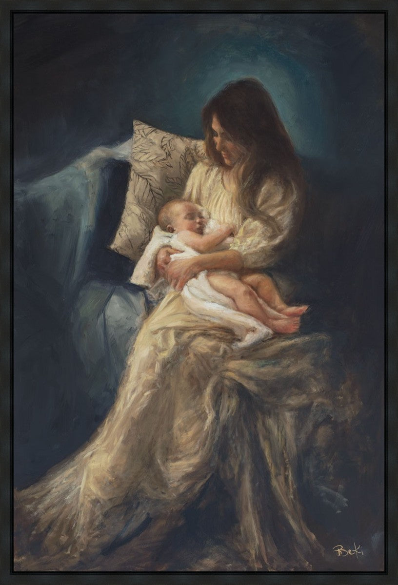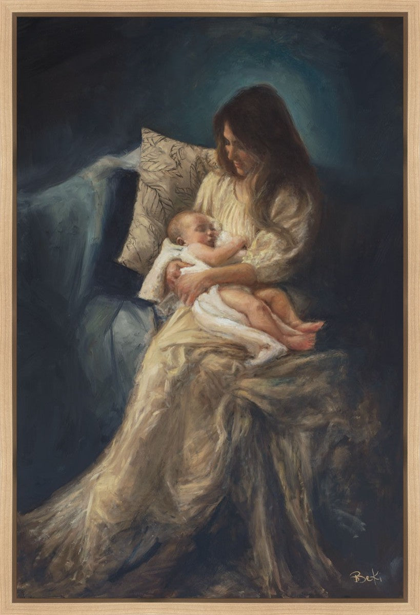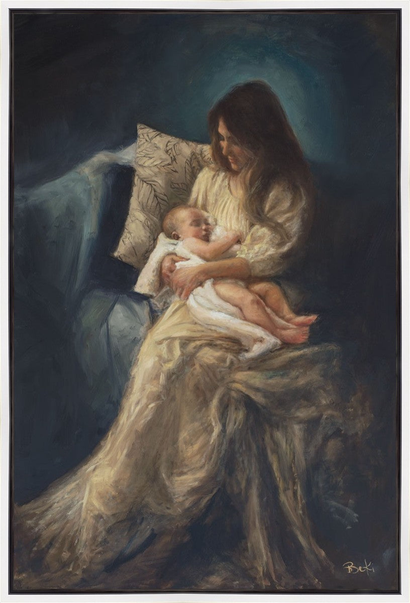 This is a reminder of what it feels like to hold heaven in your arms, reminder of the sacred birth of the Christ child and the cherished birth of every child born into this world; A hint of Madonna and child, a suggestion of Lamb of God, but placed in the arms of every mother today.