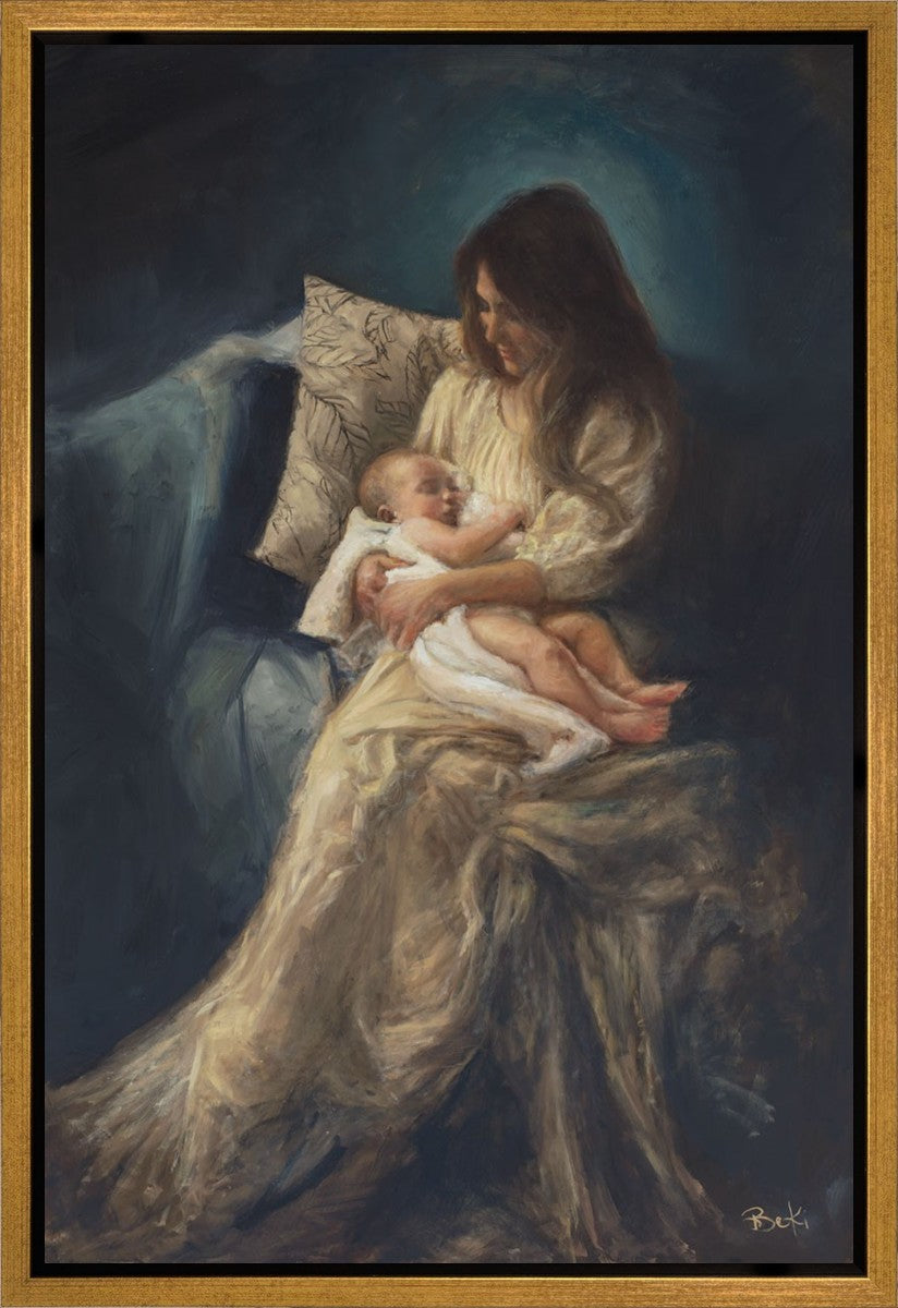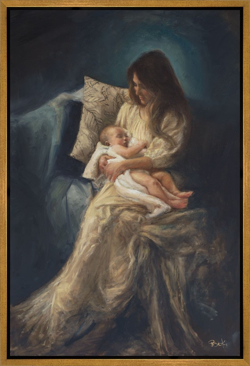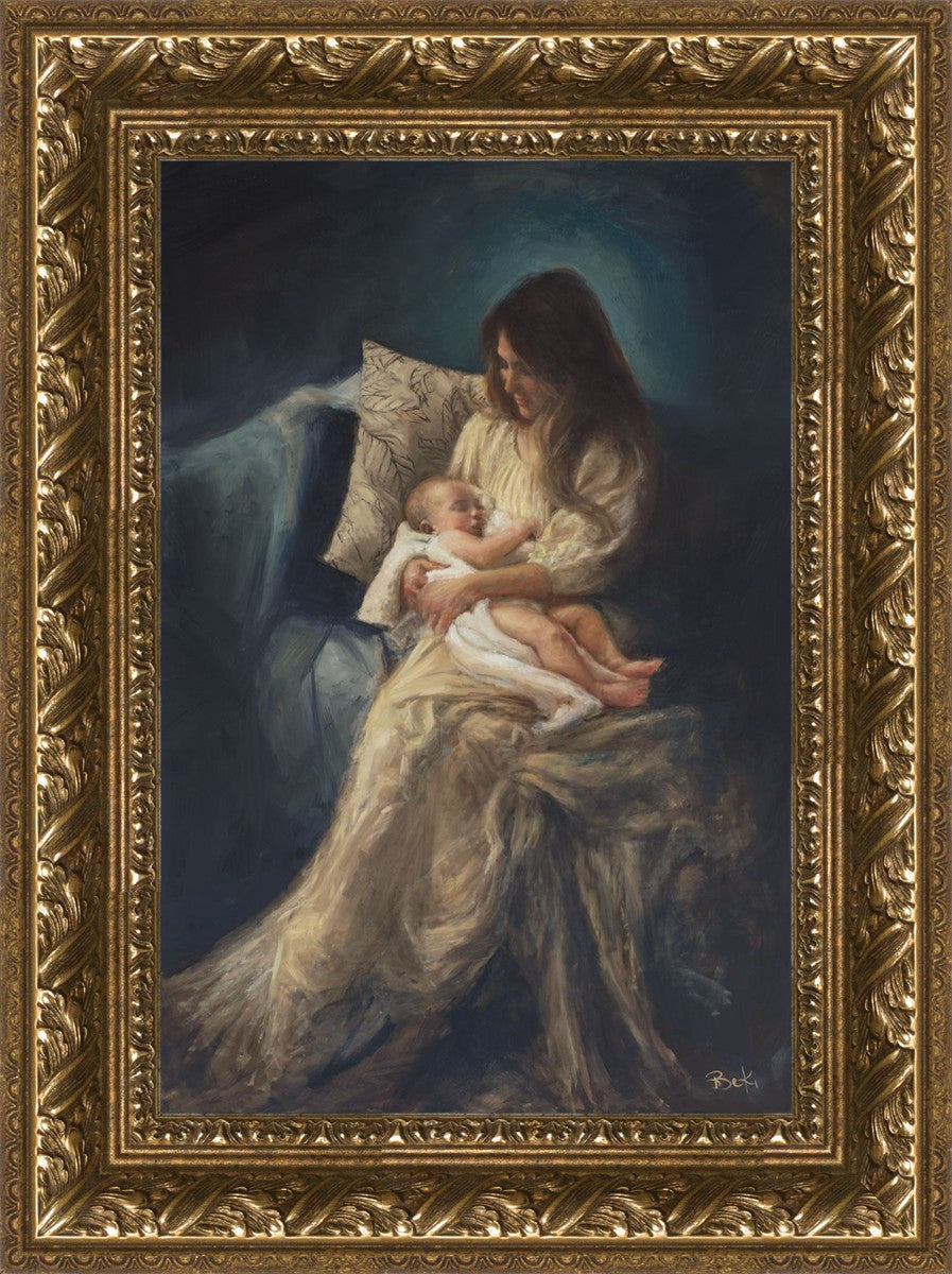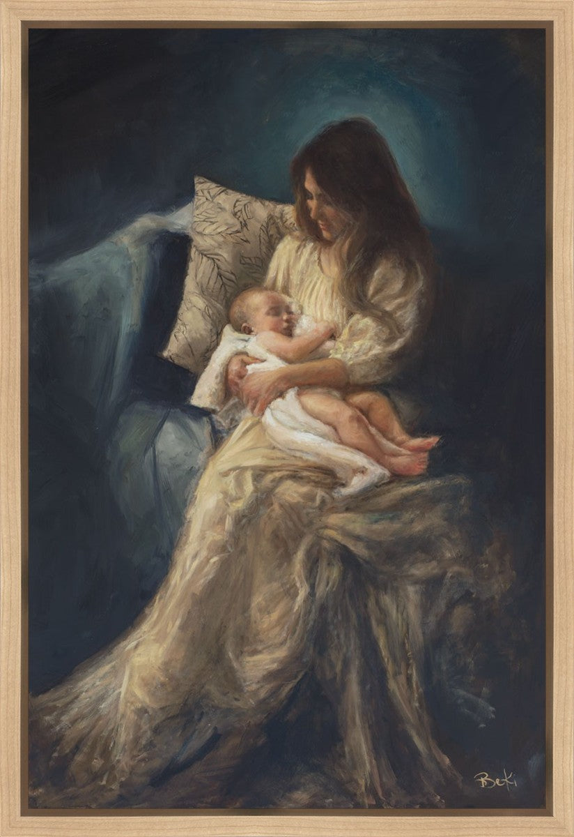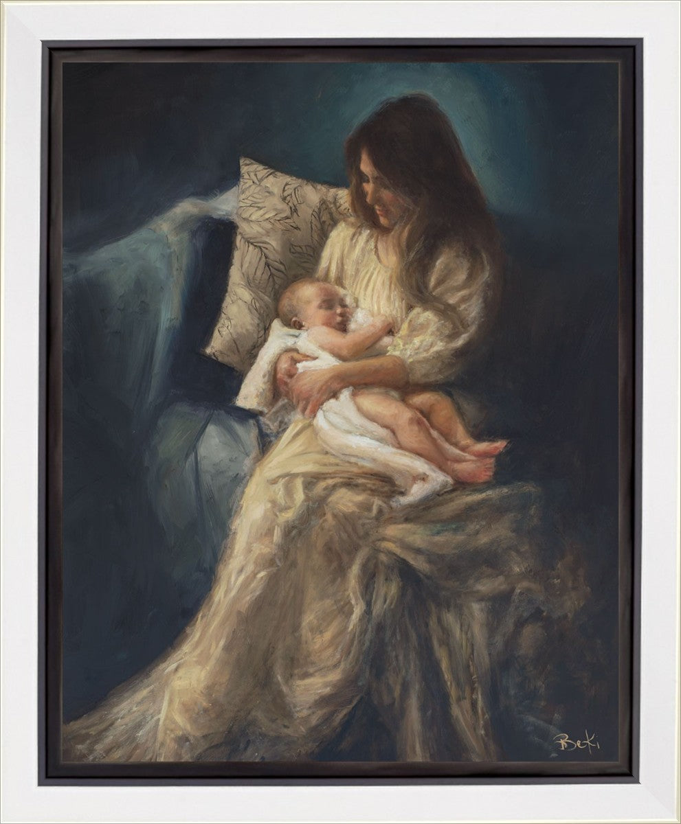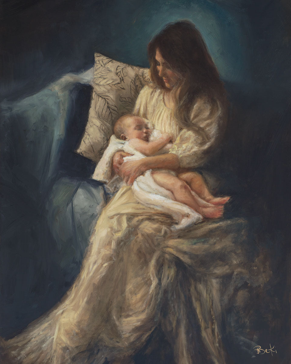 This is a reminder of what it feels like to hold heaven in your arms, reminder of the sacred birth of the Christ child and the cherished birth of every child born into this world; A hint of Madonna and child, a suggestion of Lamb of God, but placed in the arms of every mother today.