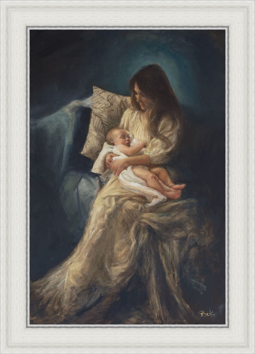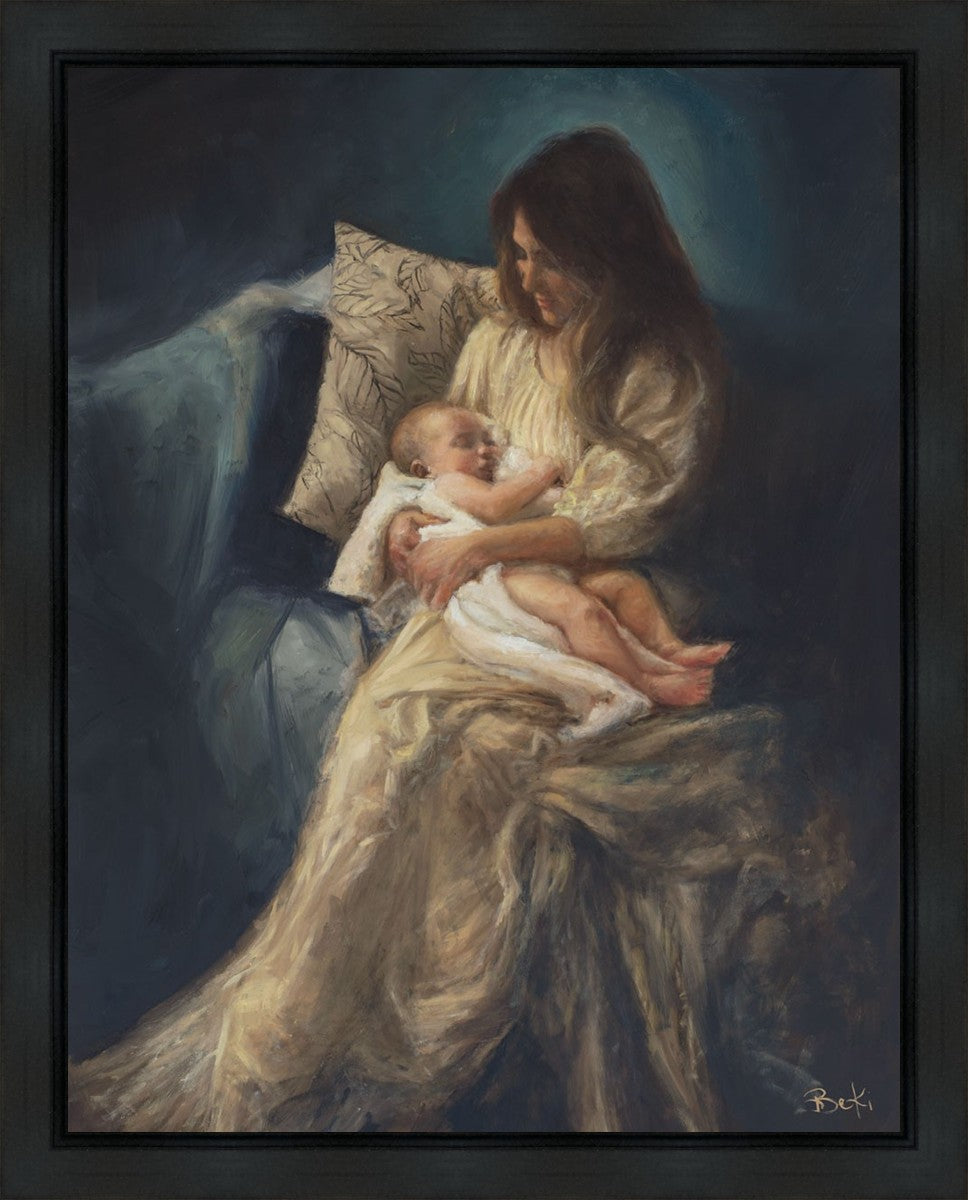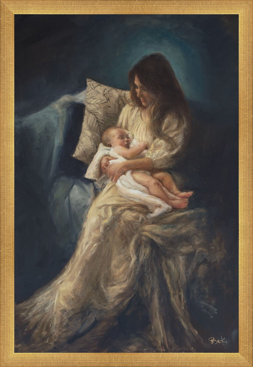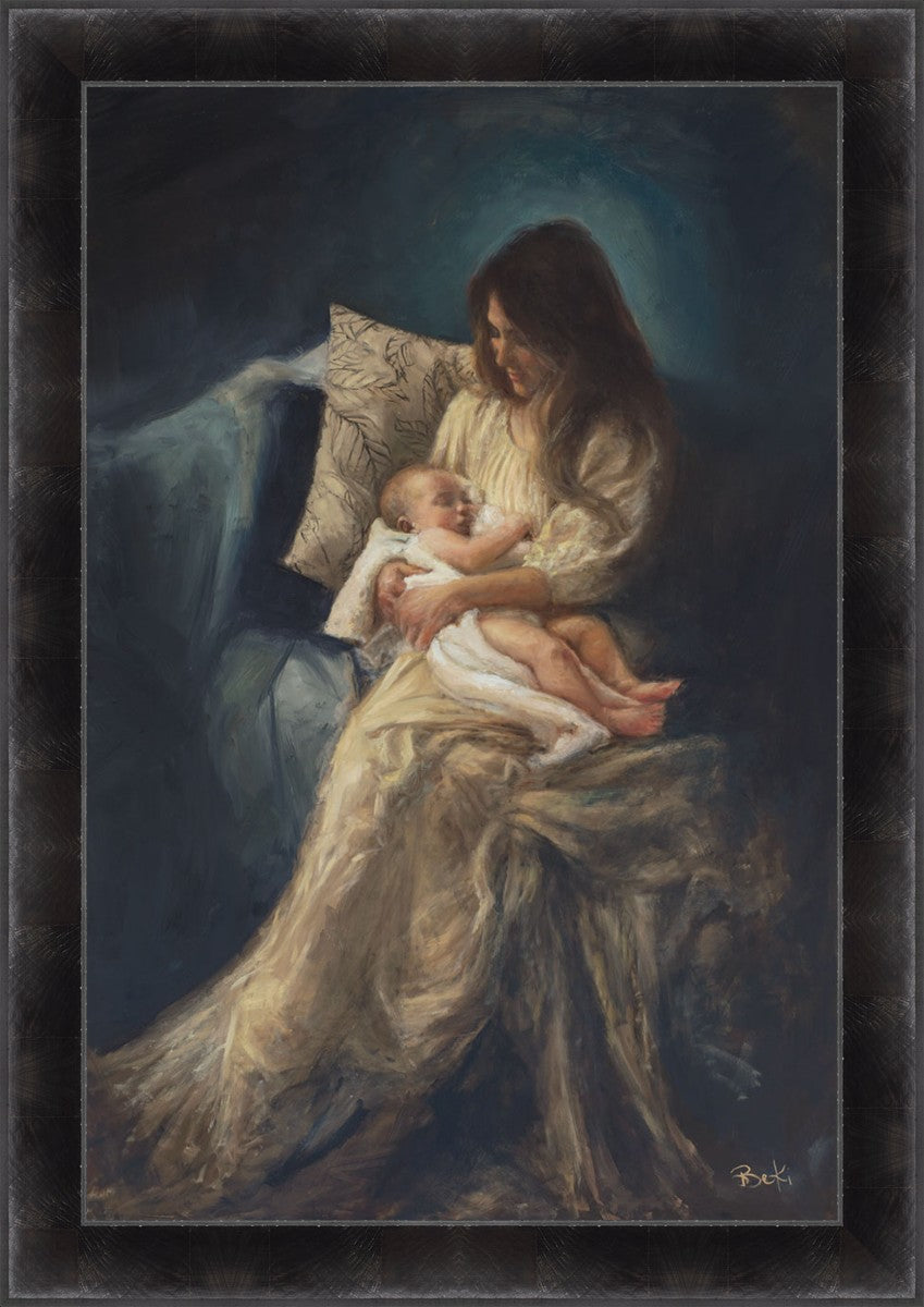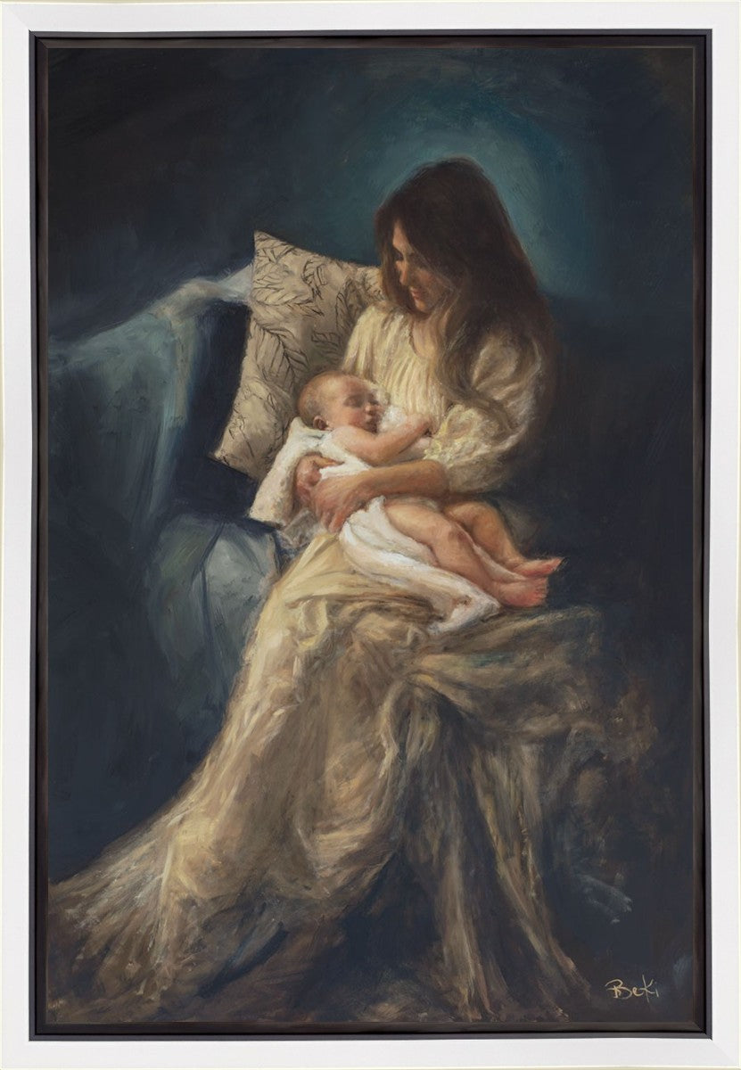 This is a reminder of what it feels like to hold heaven in your arms, reminder of the sacred birth of the Christ child and the cherished birth of every child born into this world; A hint of Madonna and child, a suggestion of Lamb of God, but placed in the arms of every mother today.