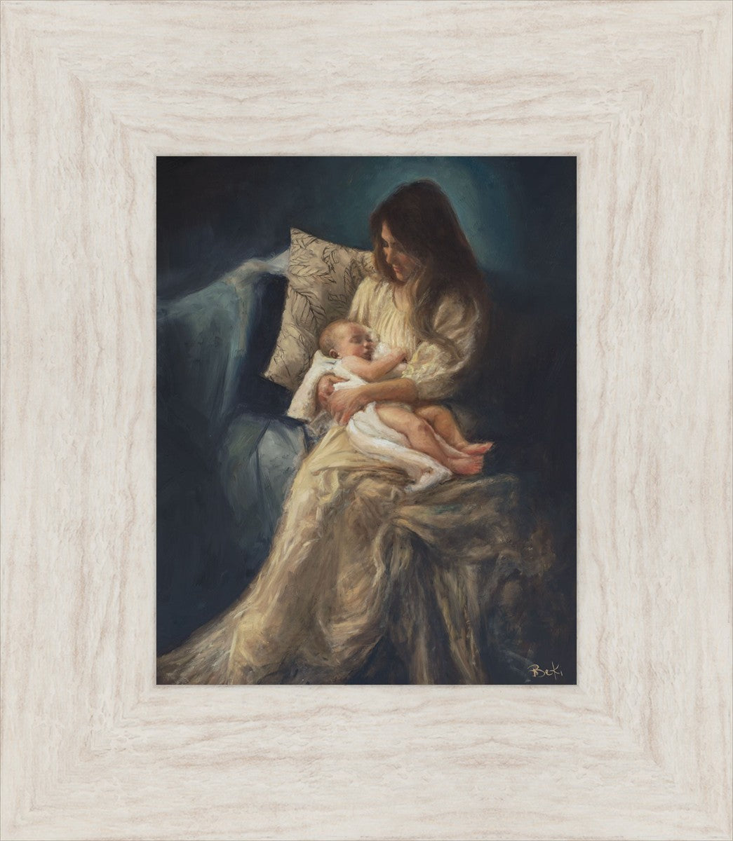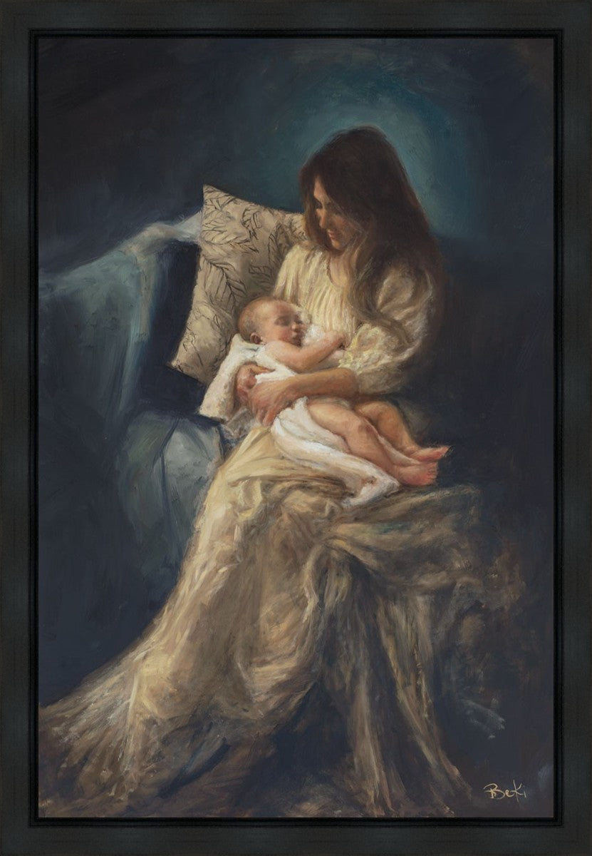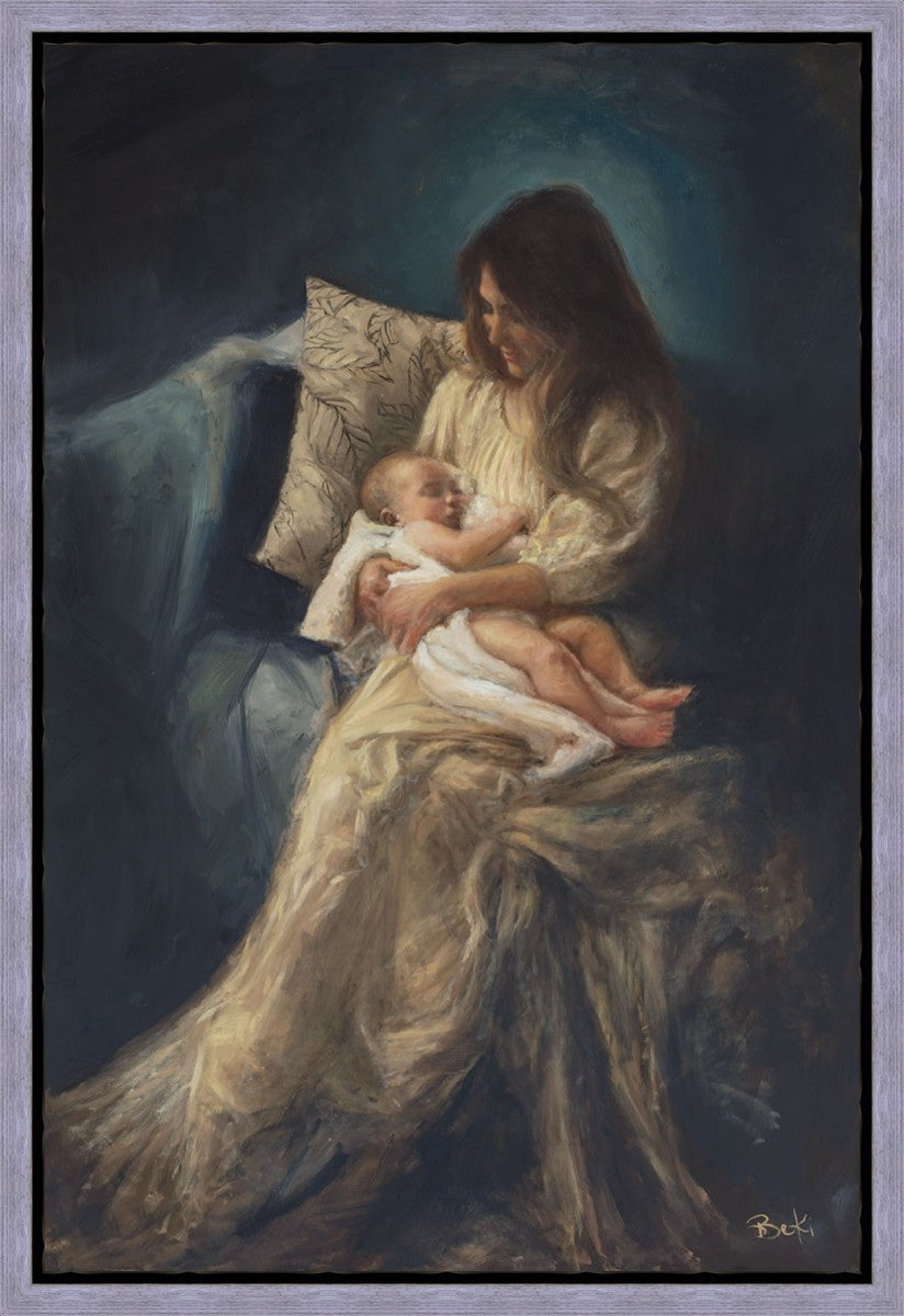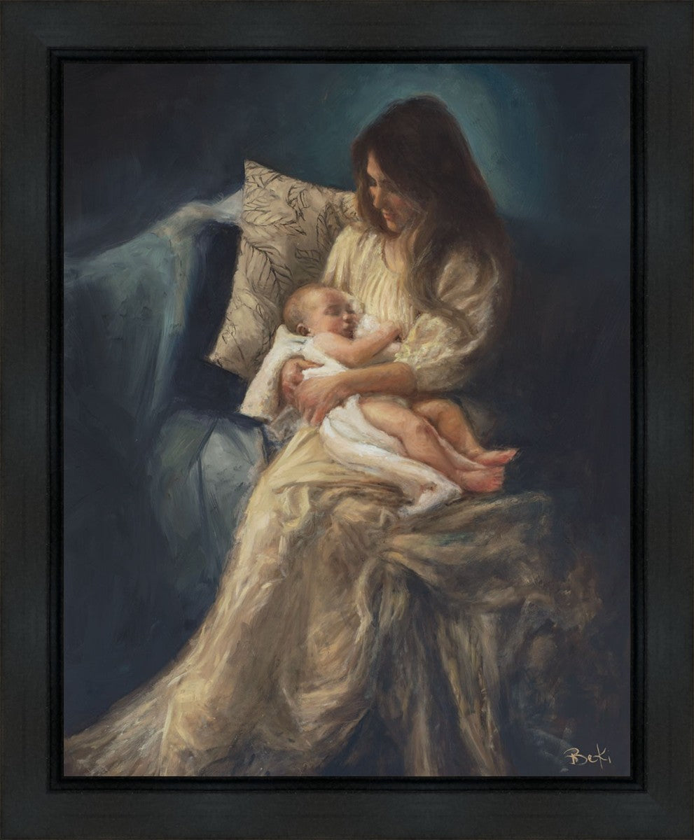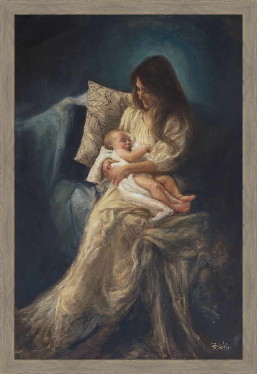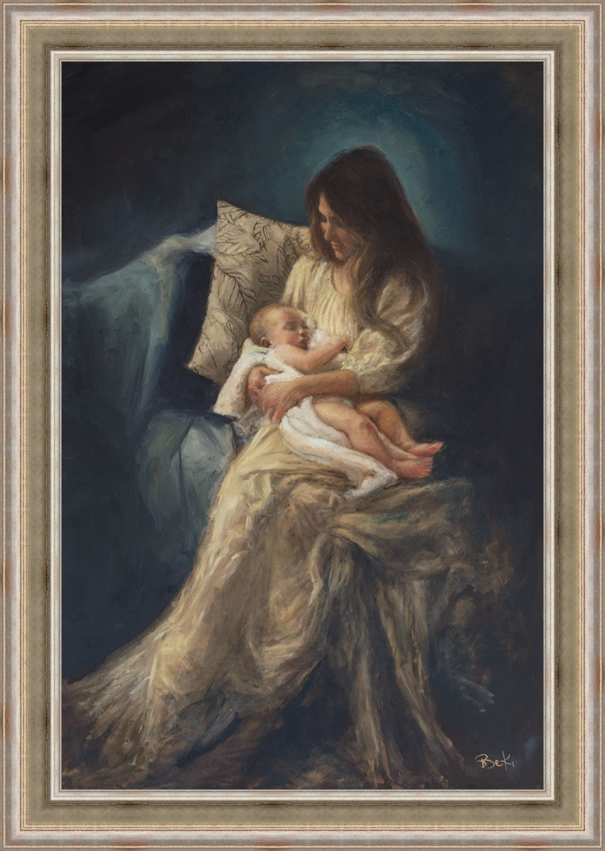 This is a reminder of what it feels like to hold heaven in your arms, reminder of the sacred birth of the Christ child and the cherished birth of every child born into this world; A hint of Madonna and child, a suggestion of Lamb of God, but placed in the arms of every mother today.
