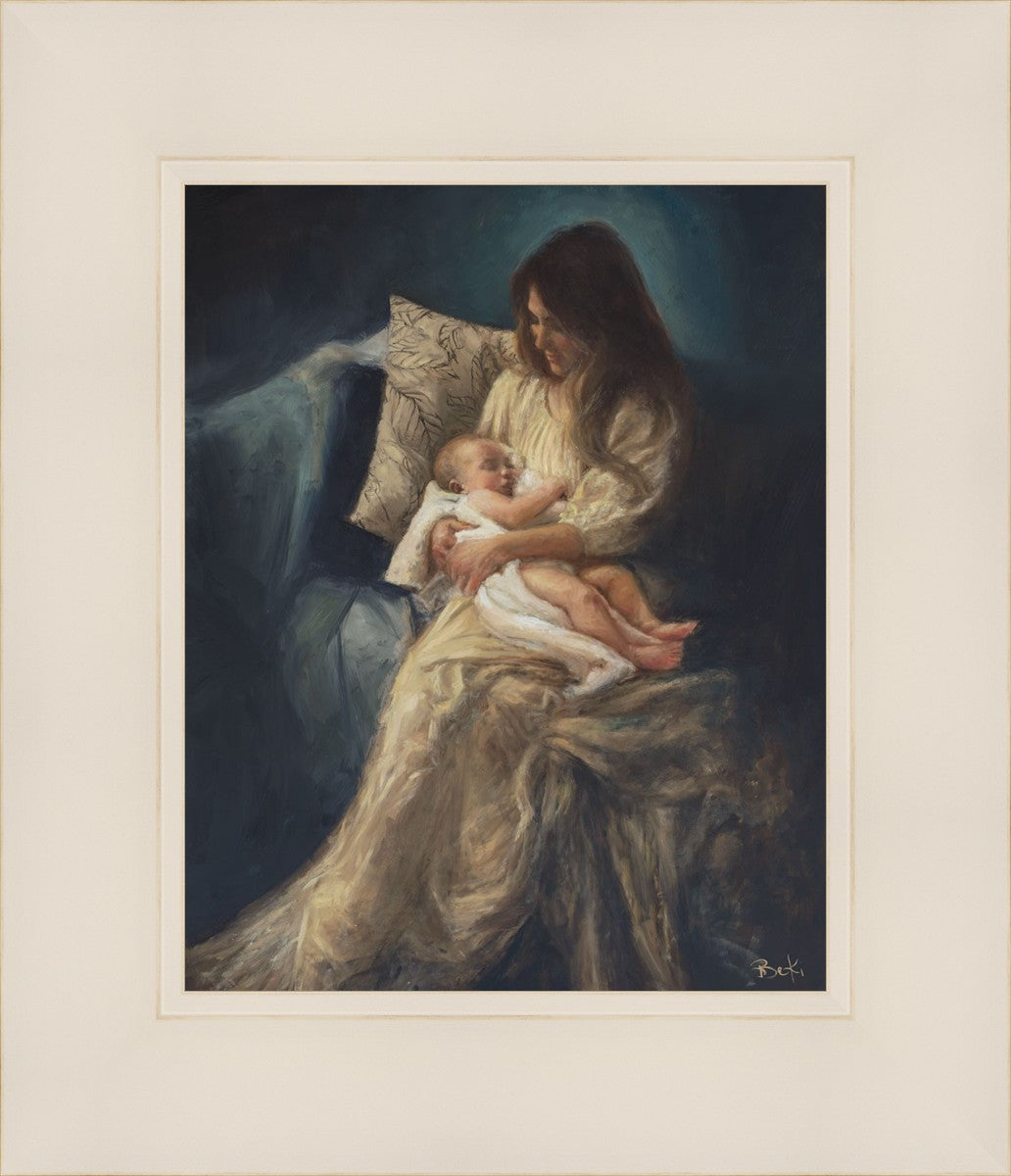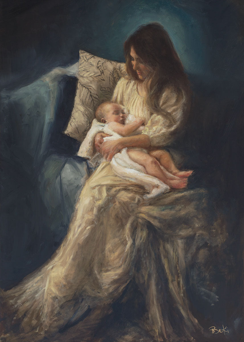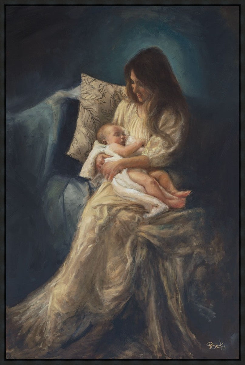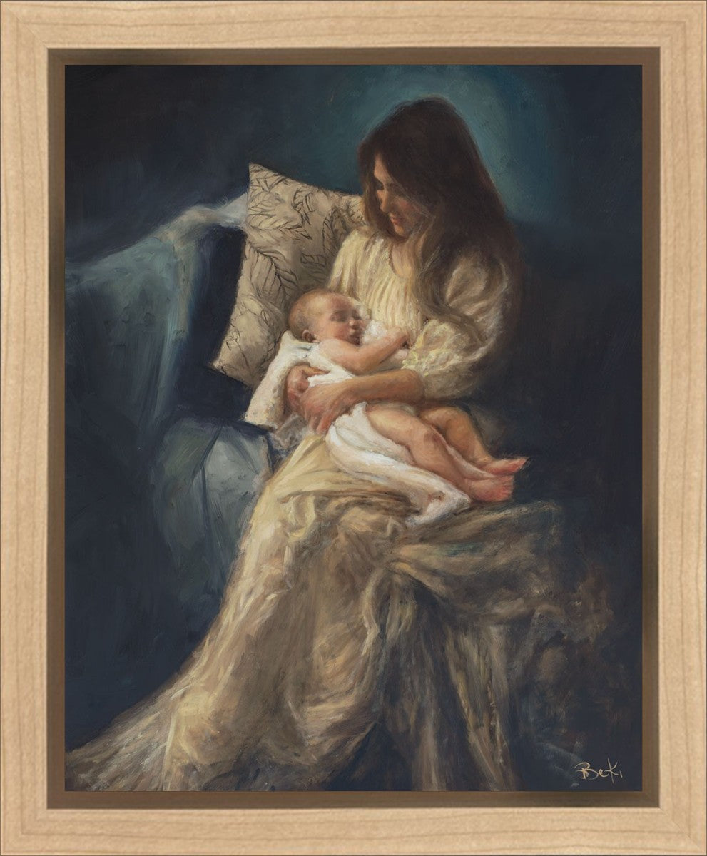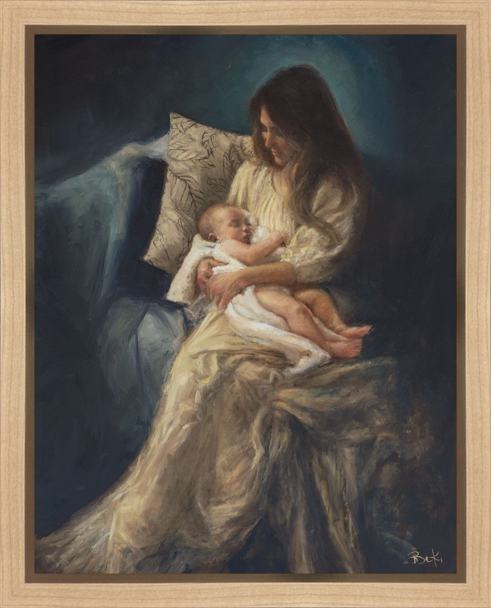 This is a reminder of what it feels like to hold heaven in your arms, reminder of the sacred birth of the Christ child and the cherished birth of every child born into this world; A hint of Madonna and child, a suggestion of Lamb of God, but placed in the arms of every mother today.