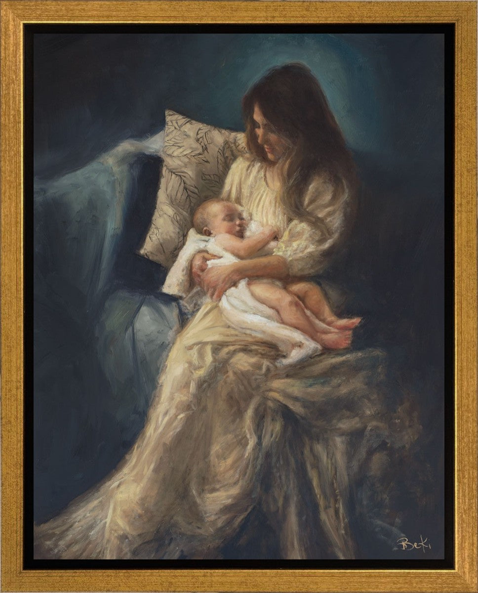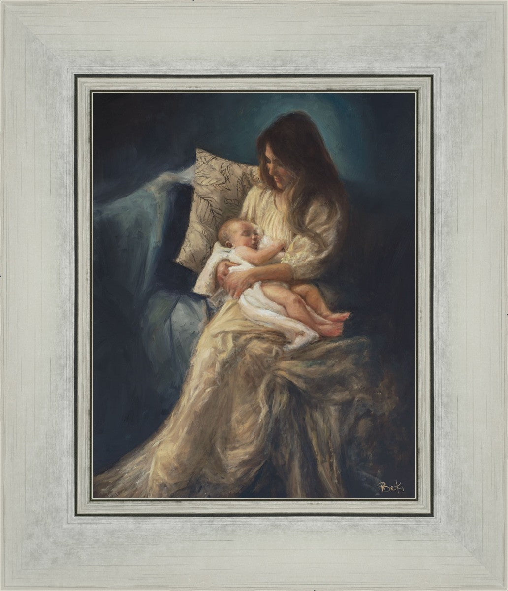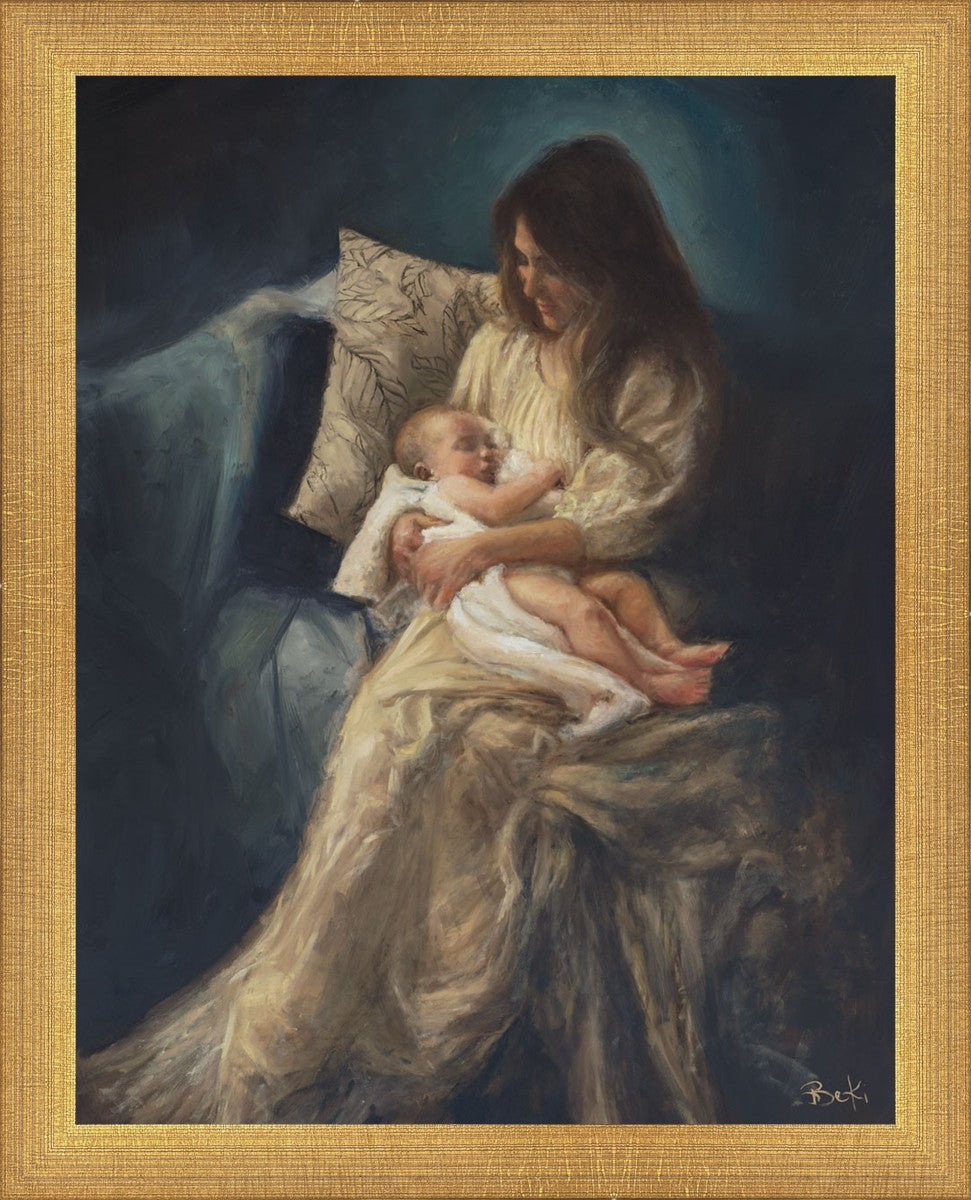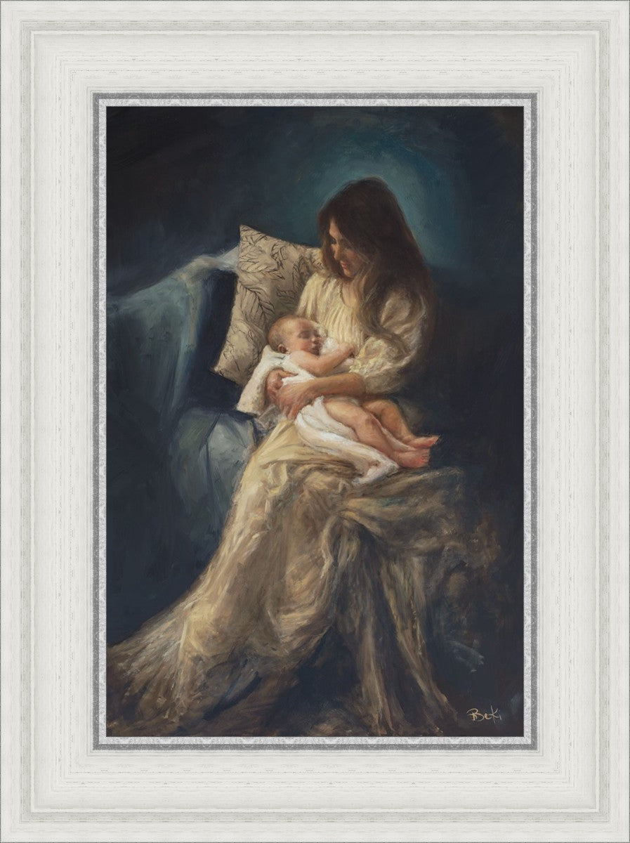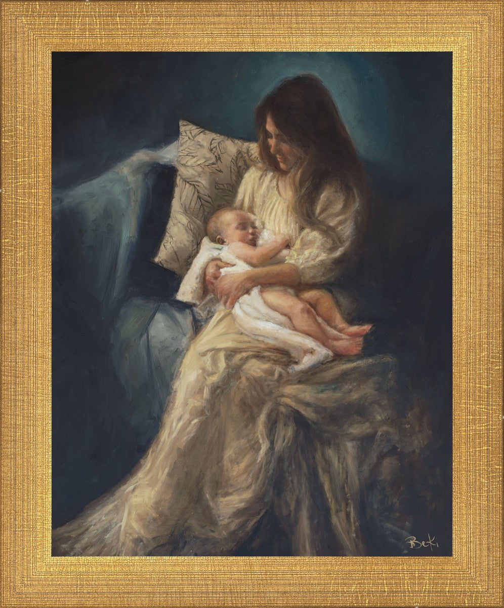 This is a reminder of what it feels like to hold heaven in your arms, reminder of the sacred birth of the Christ child and the cherished birth of every child born into this world; A hint of Madonna and child, a suggestion of Lamb of God, but placed in the arms of every mother today.