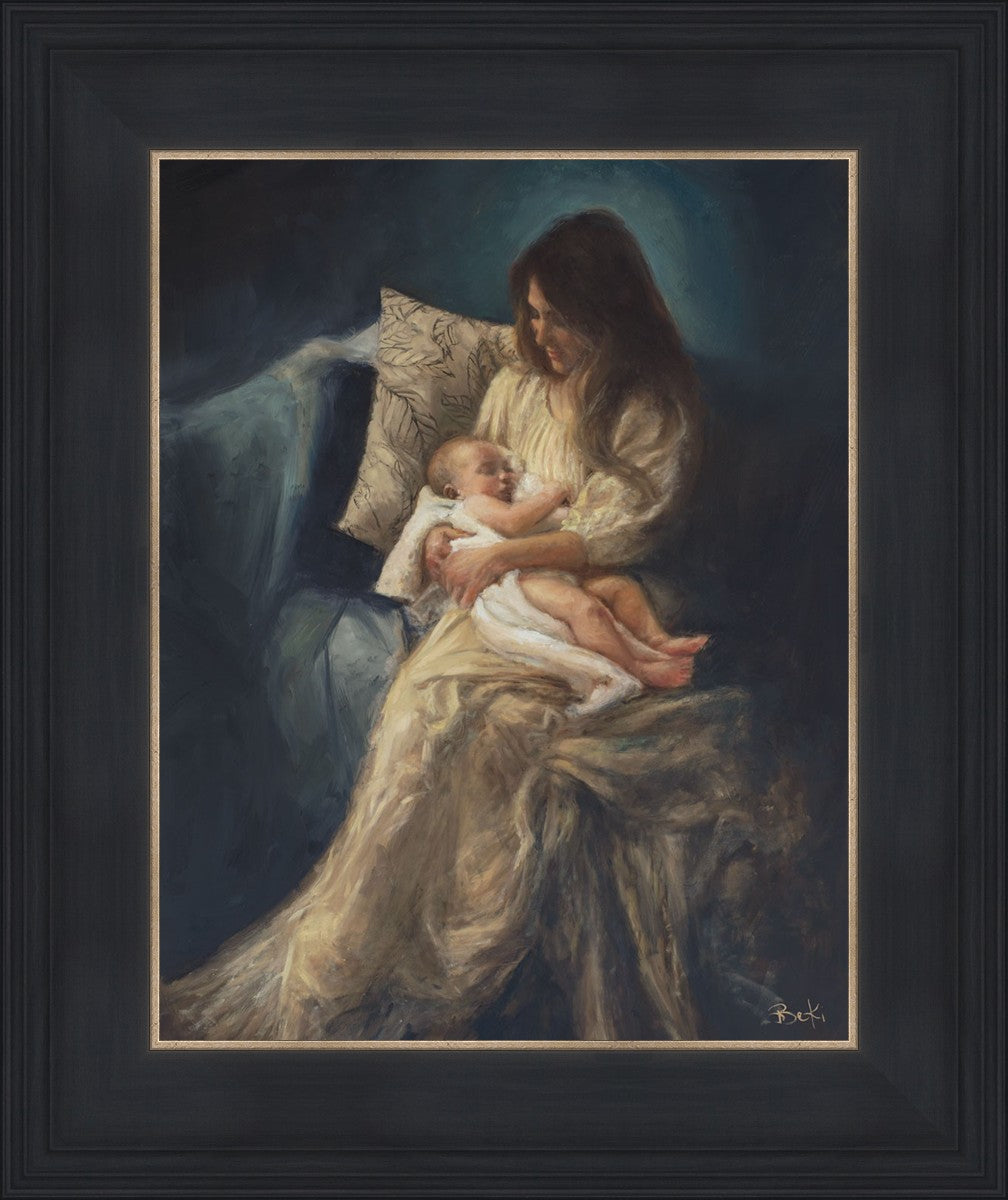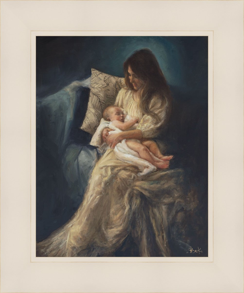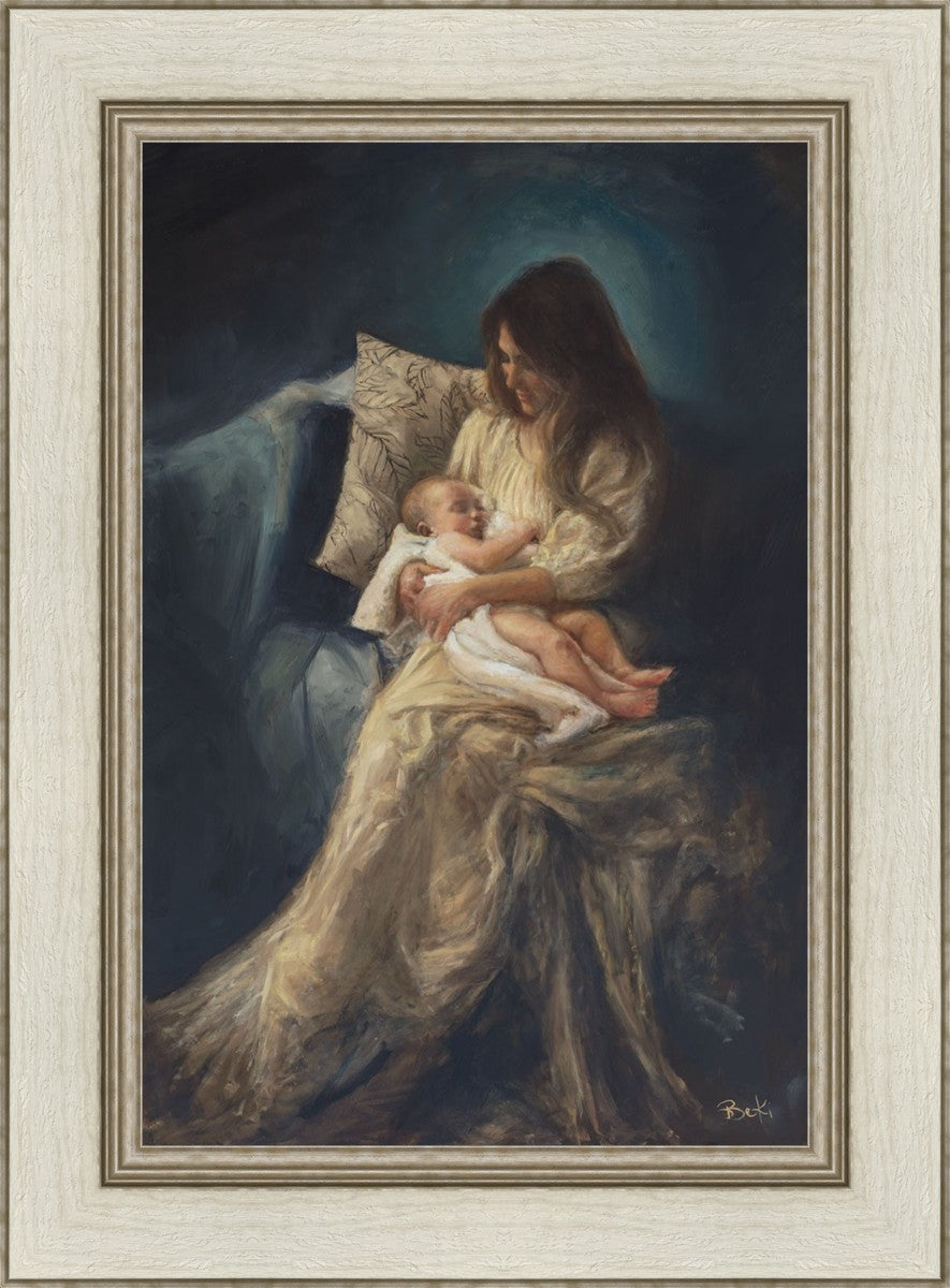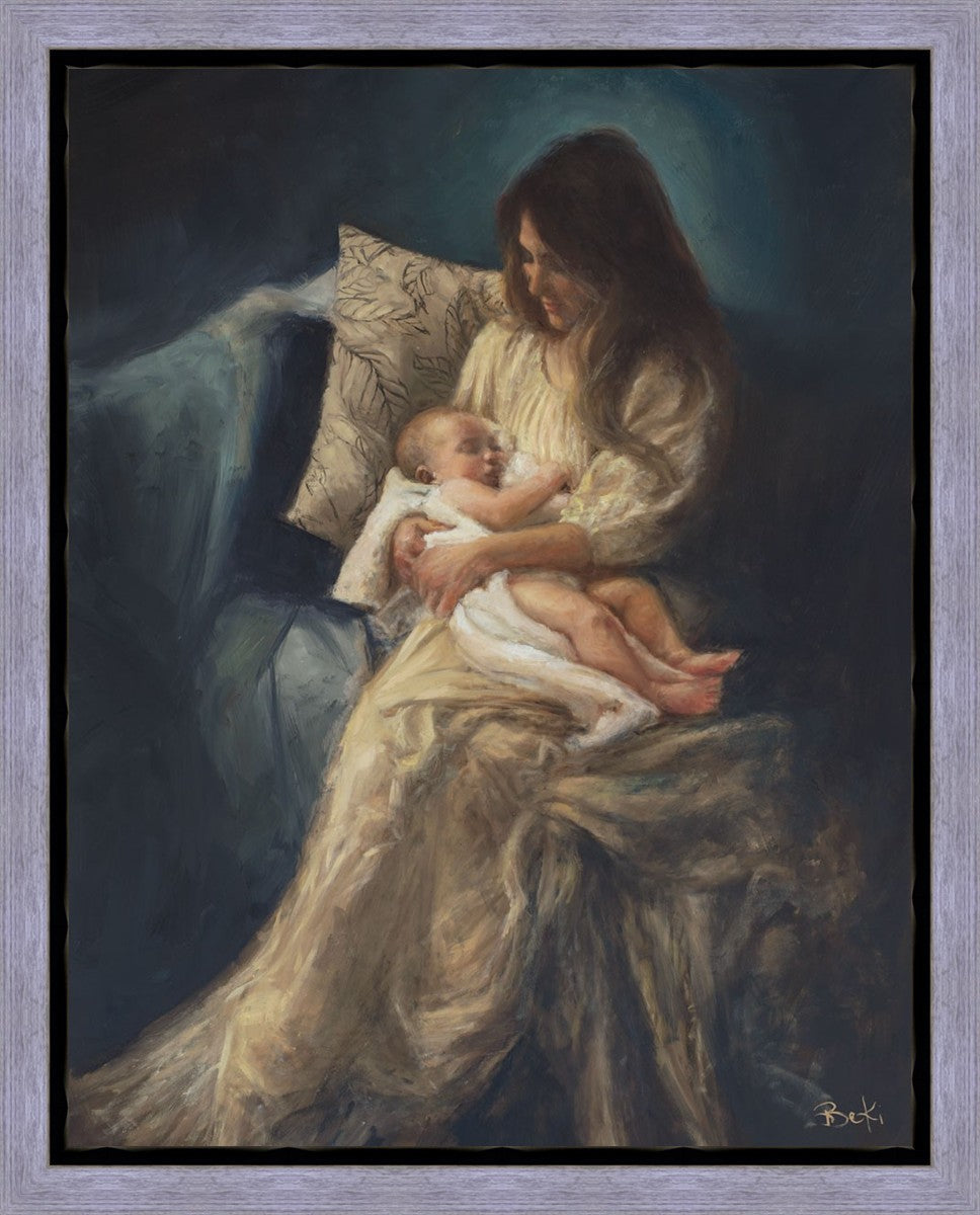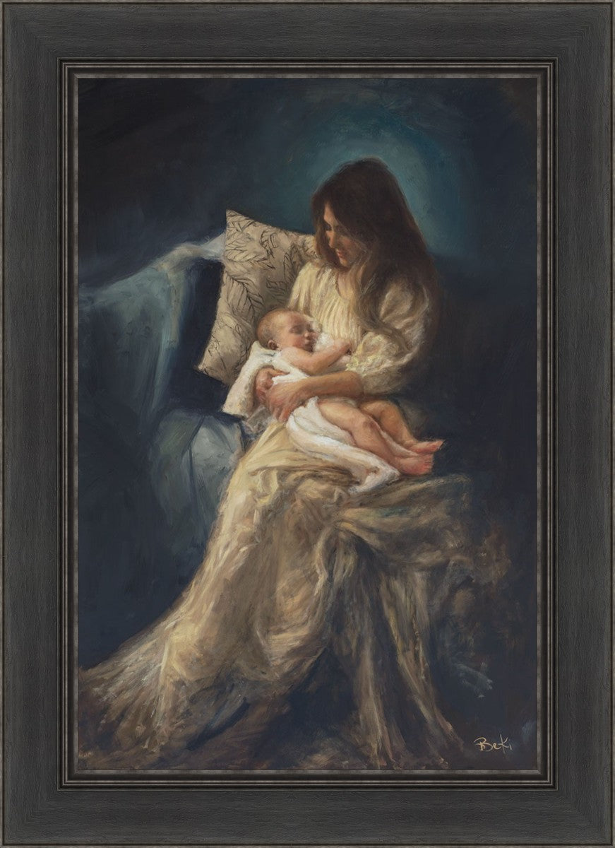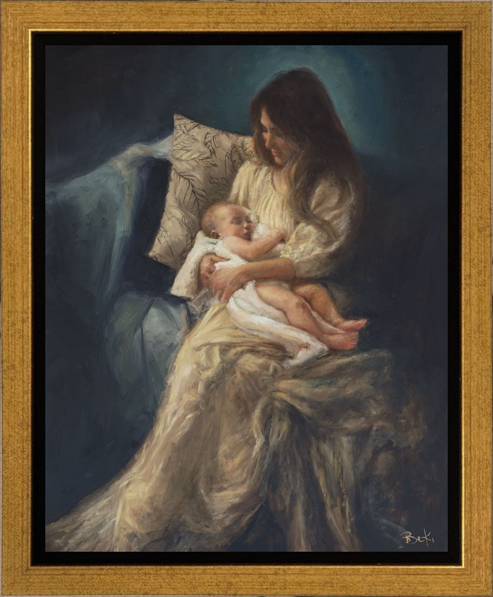 This is a reminder of what it feels like to hold heaven in your arms, reminder of the sacred birth of the Christ child and the cherished birth of every child born into this world; A hint of Madonna and child, a suggestion of Lamb of God, but placed in the arms of every mother today.