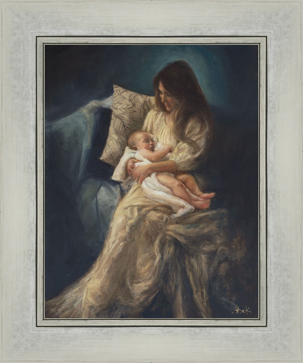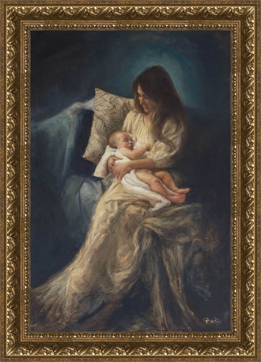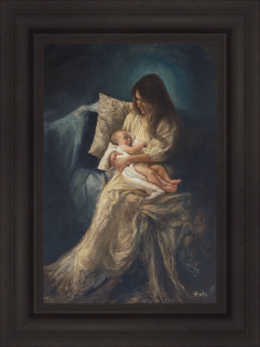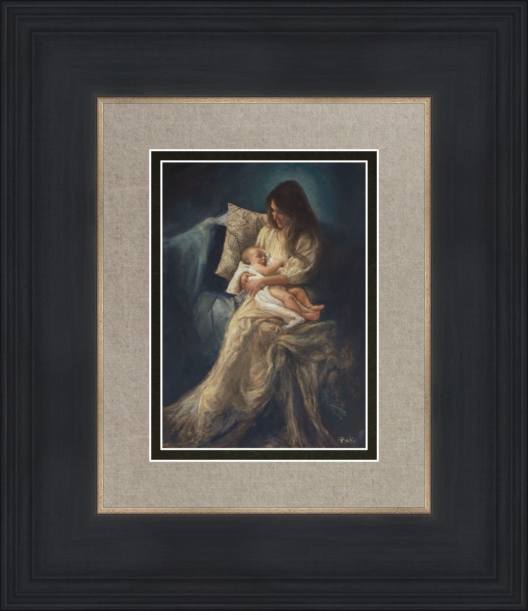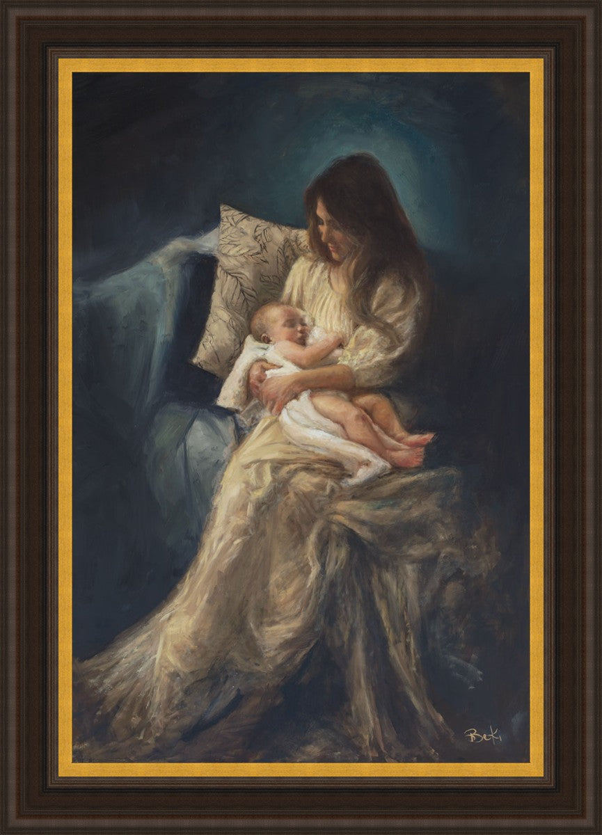 This is a reminder of what it feels like to hold heaven in your arms, reminder of the sacred birth of the Christ child and the cherished birth of every child born into this world; A hint of Madonna and child, a suggestion of Lamb of God, but placed in the arms of every mother today.