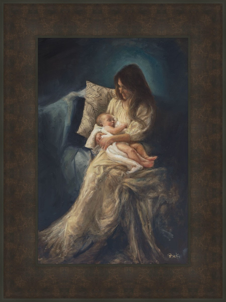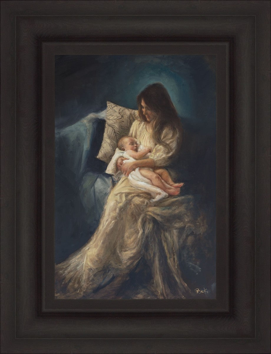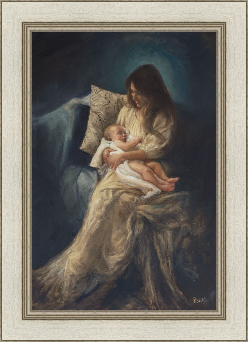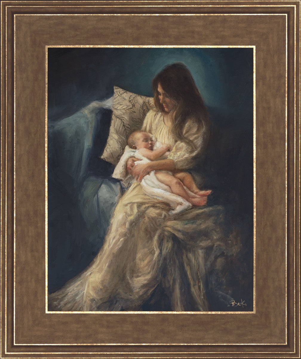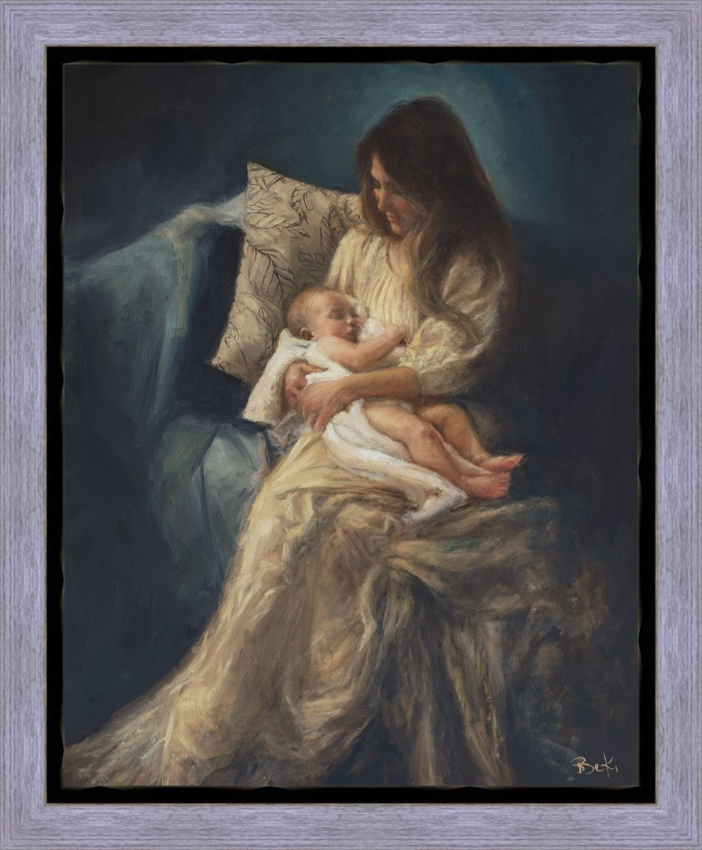 This is a reminder of what it feels like to hold heaven in your arms, reminder of the sacred birth of the Christ child and the cherished birth of every child born into this world; A hint of Madonna and child, a suggestion of Lamb of God, but placed in the arms of every mother today.