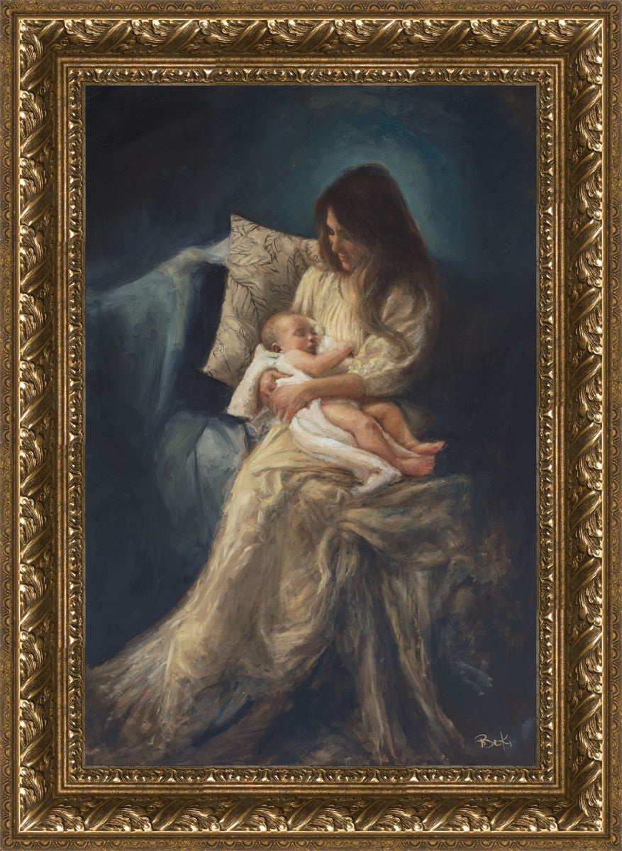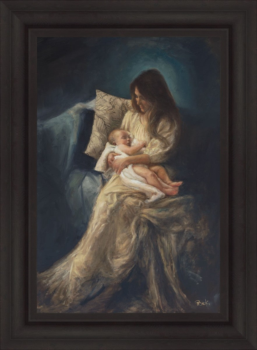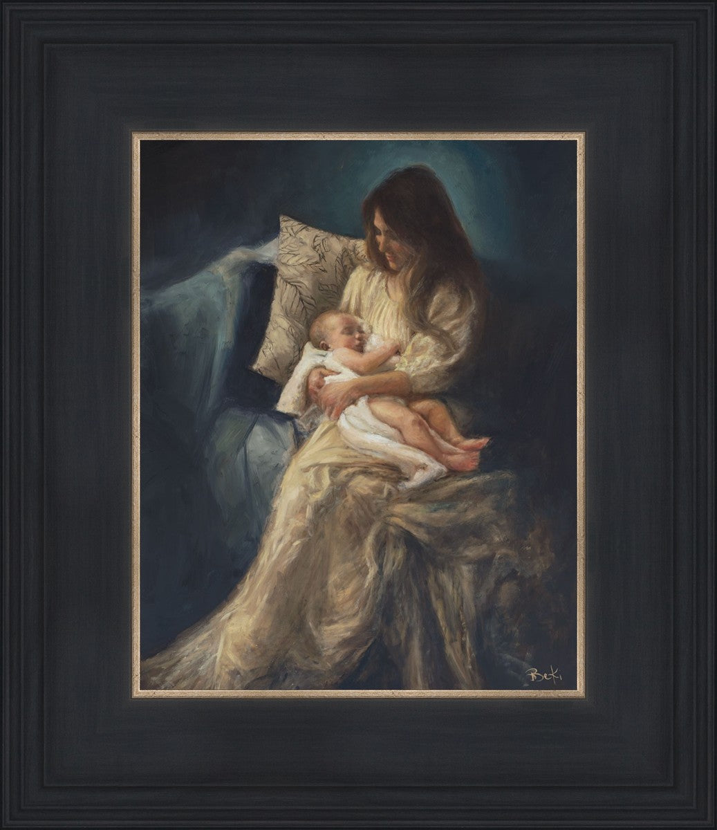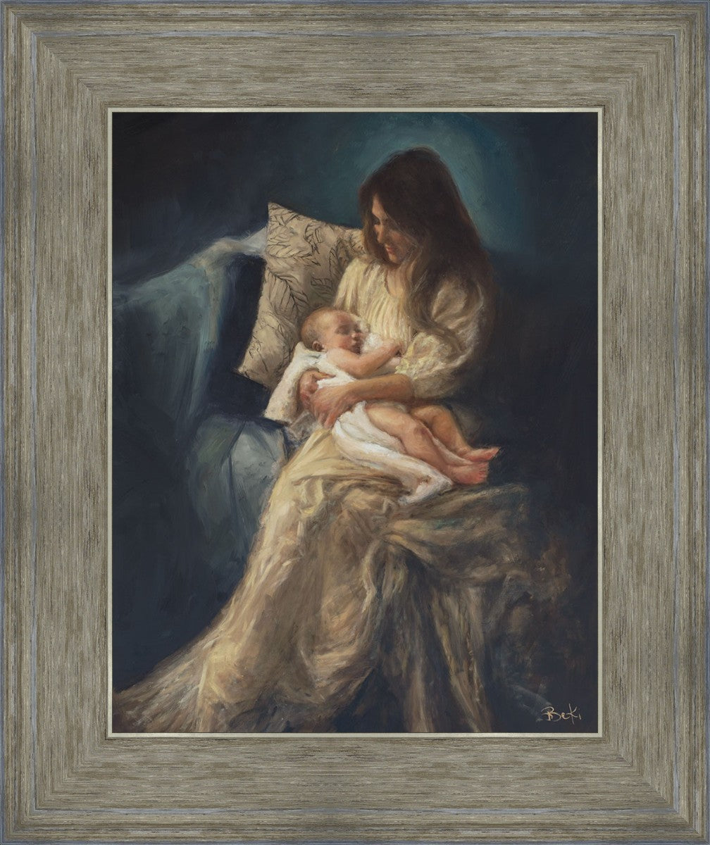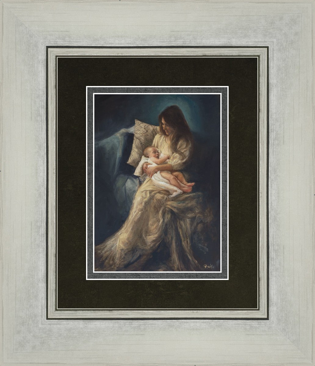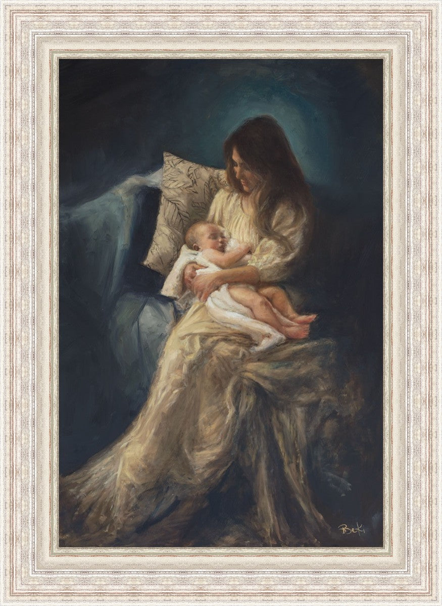 This is a reminder of what it feels like to hold heaven in your arms, reminder of the sacred birth of the Christ child and the cherished birth of every child born into this world; A hint of Madonna and child, a suggestion of Lamb of God, but placed in the arms of every mother today.