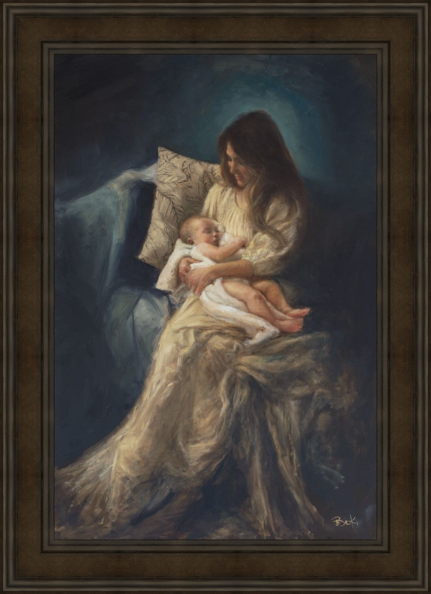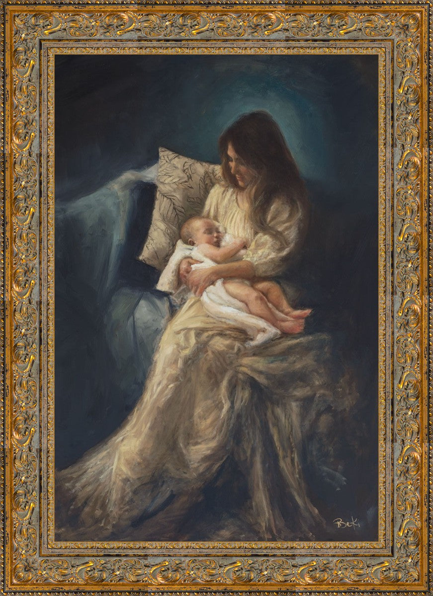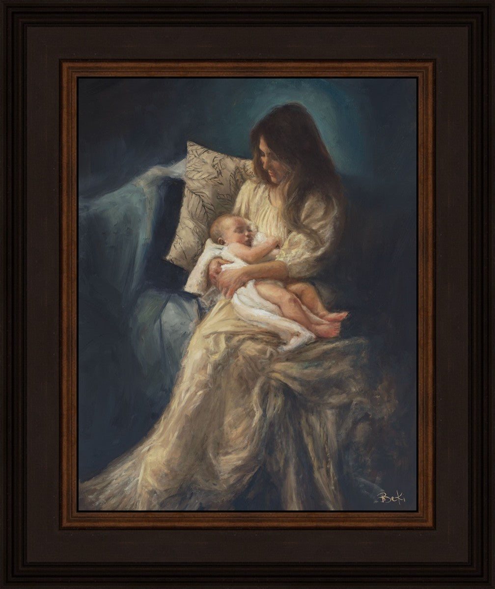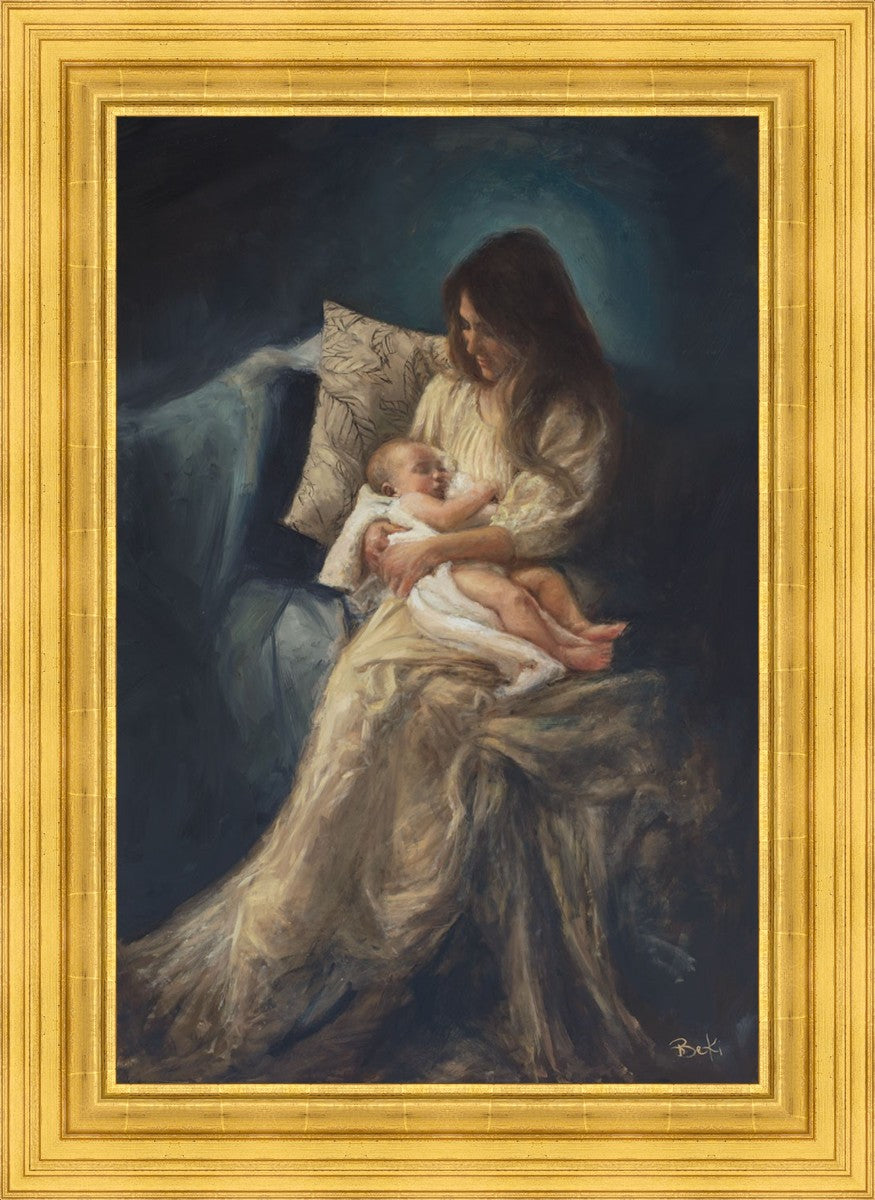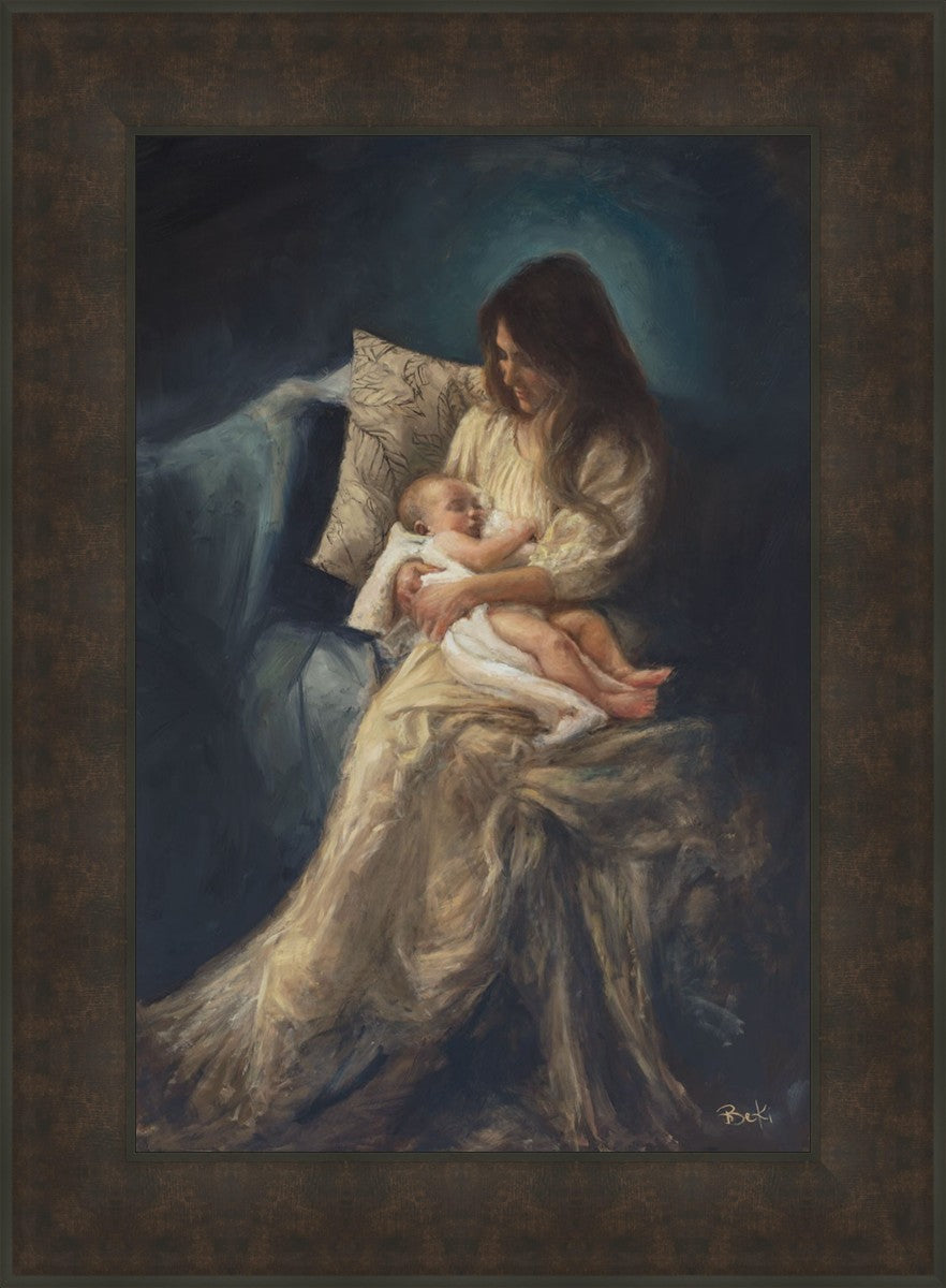 This is a reminder of what it feels like to hold heaven in your arms, reminder of the sacred birth of the Christ child and the cherished birth of every child born into this world; A hint of Madonna and child, a suggestion of Lamb of God, but placed in the arms of every mother today.