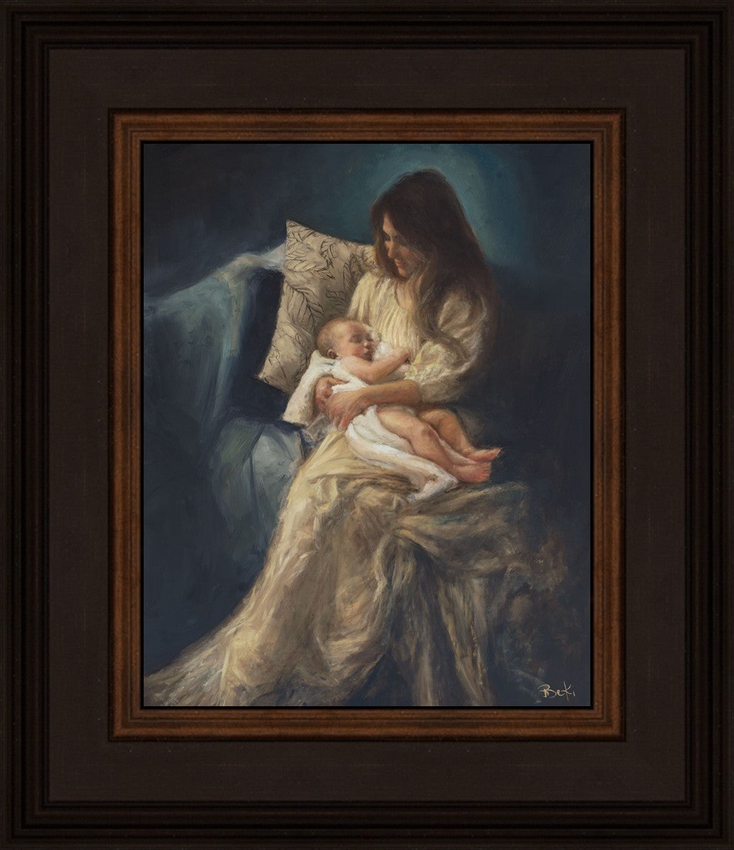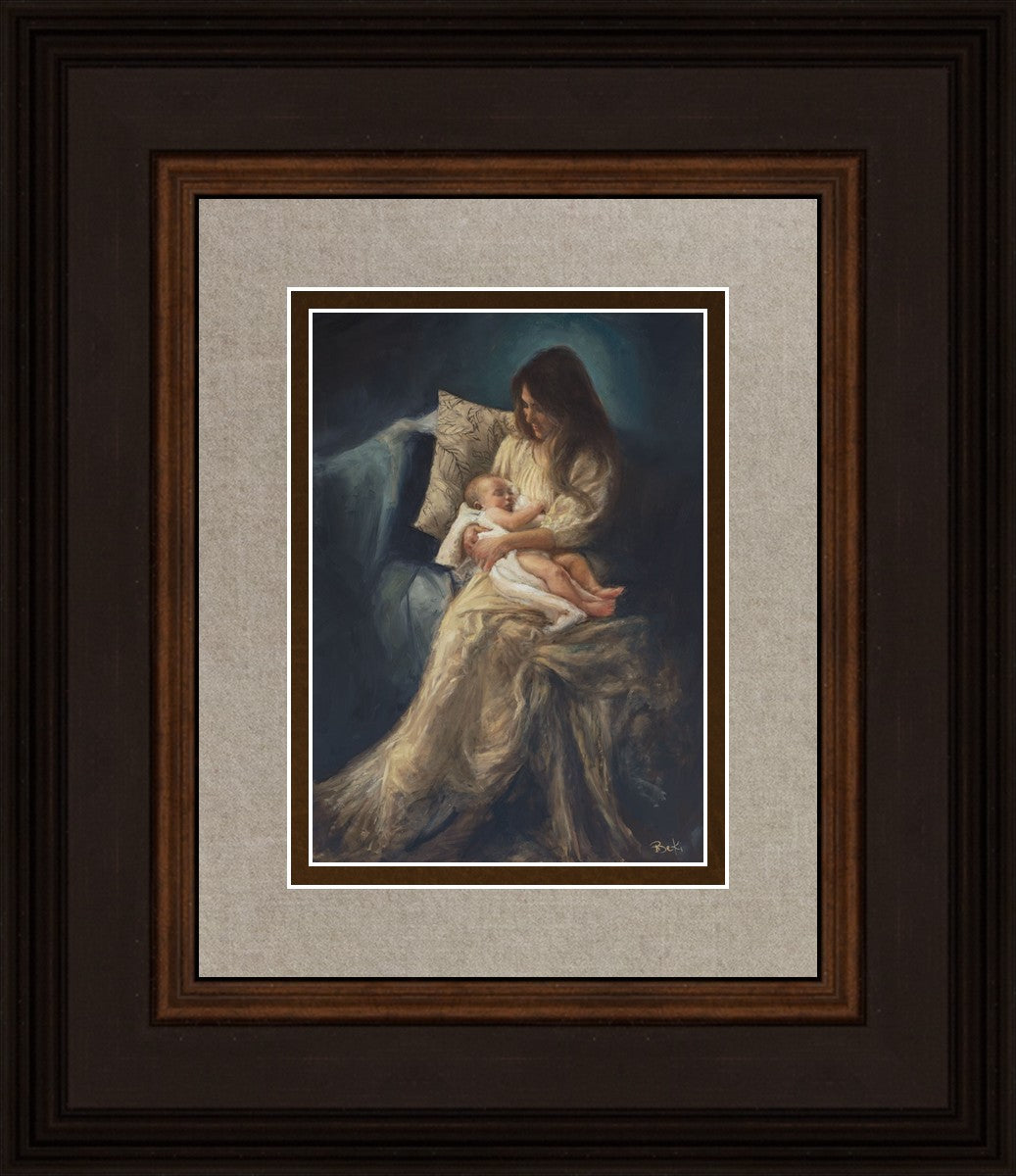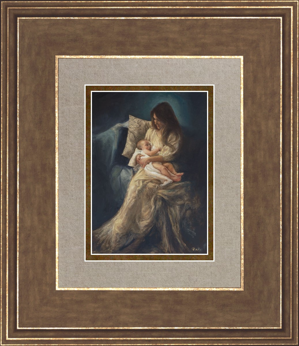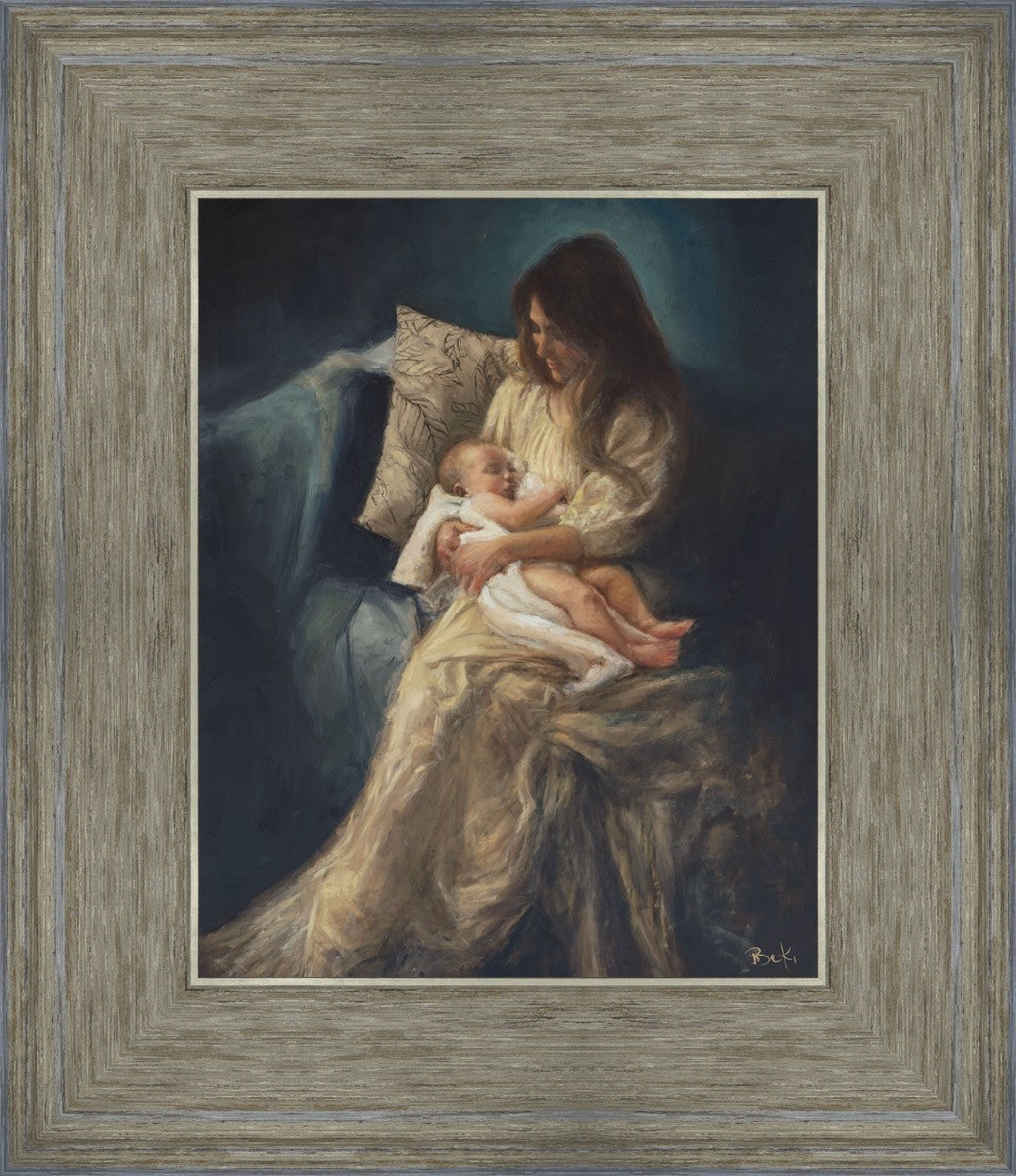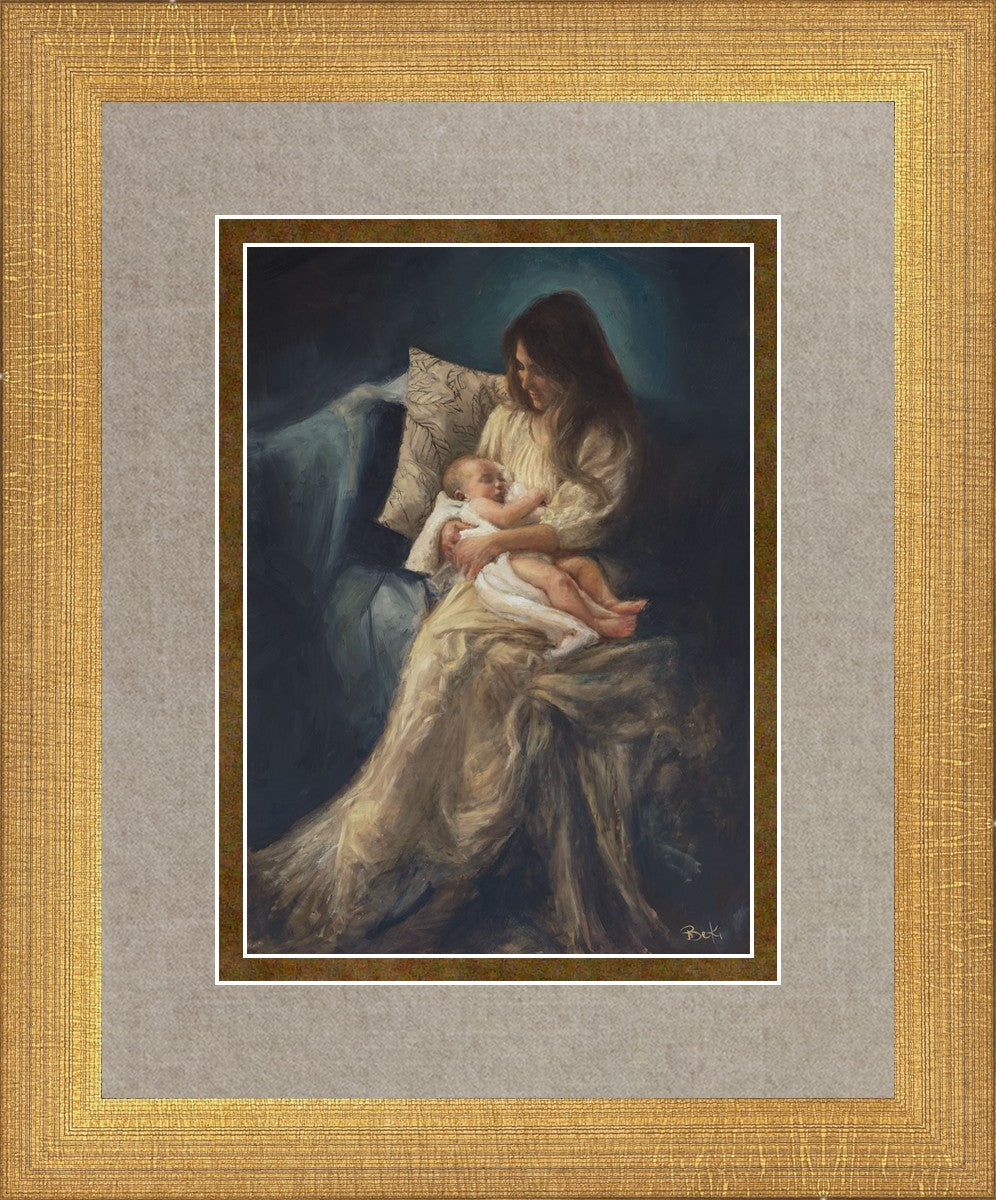 This is a reminder of what it feels like to hold heaven in your arms, reminder of the sacred birth of the Christ child and the cherished birth of every child born into this world; A hint of Madonna and child, a suggestion of Lamb of God, but placed in the arms of every mother today.