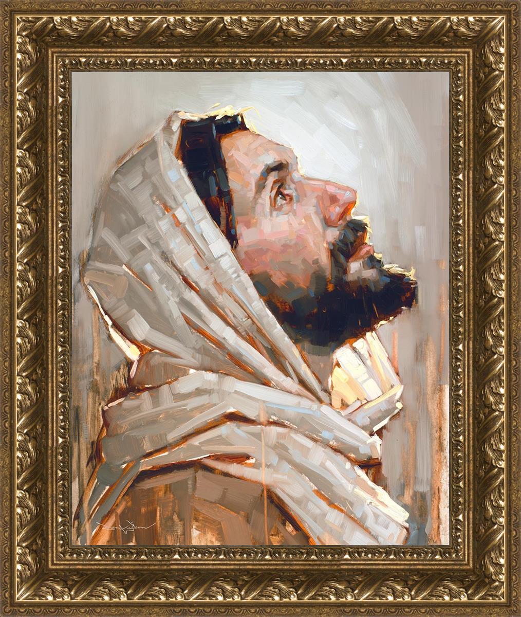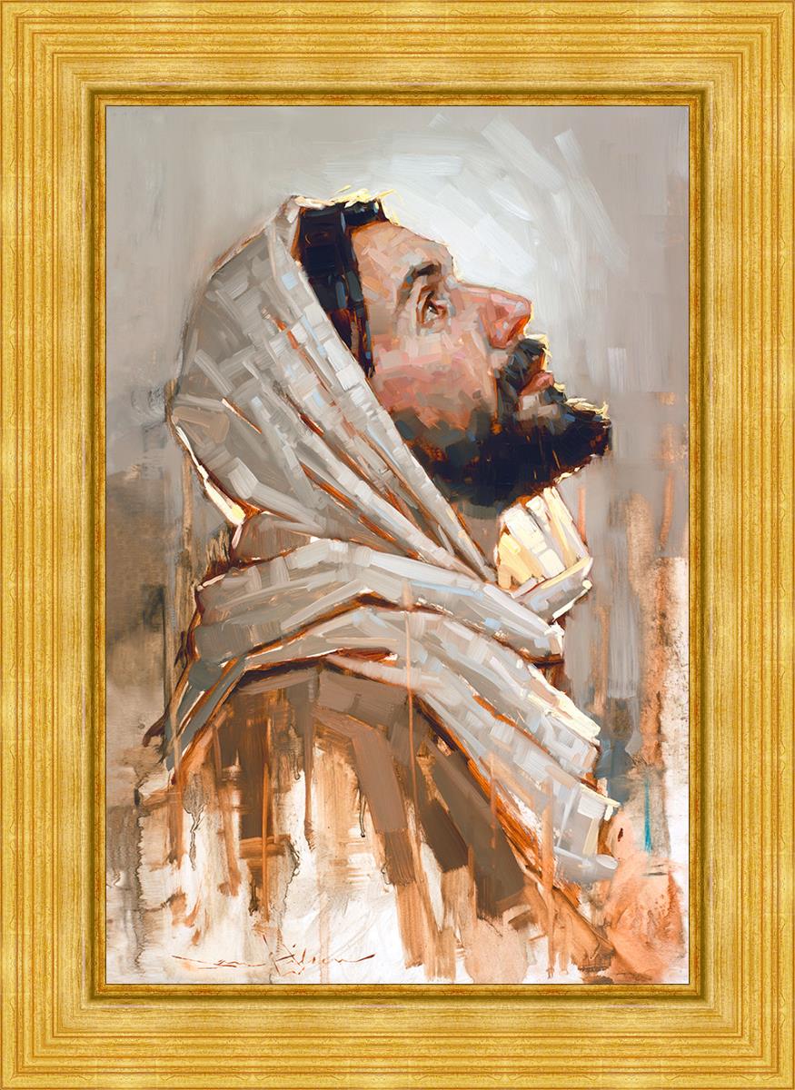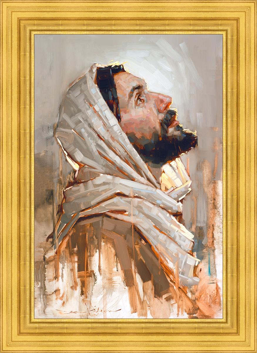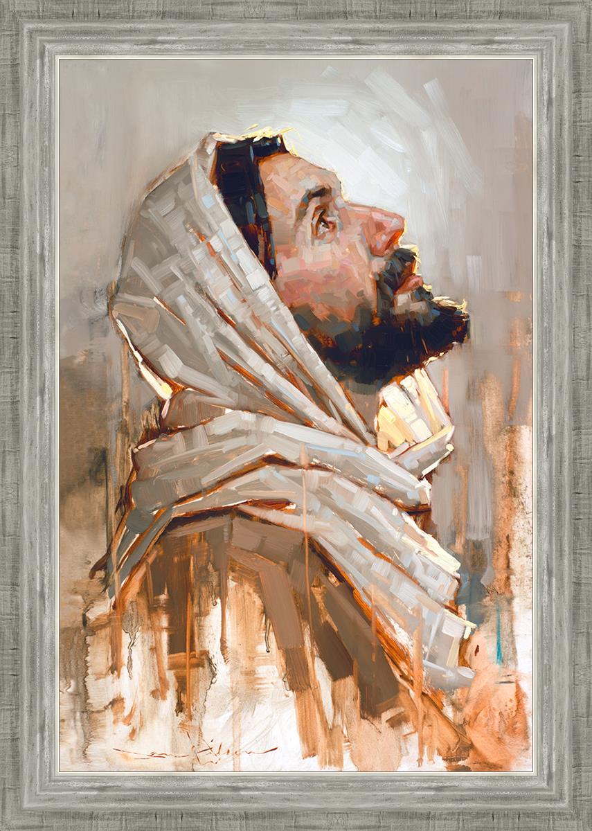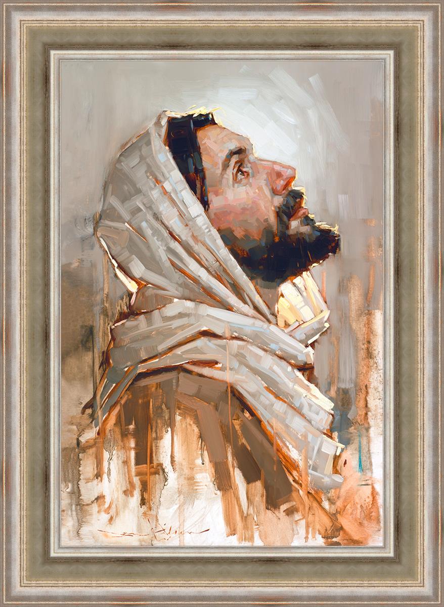 Look to God and Live" painting by Dan Wilson is an inspiring painting depicting Jesus' side profile, gazing upwards toward heaven amidst turbulent waves, symbolizing the importance of turning to God for guidance and salvation. This Christian artwork by Dan Wilson embodies themes of faith, hope, redemption, and the transformative power of turning to Him.