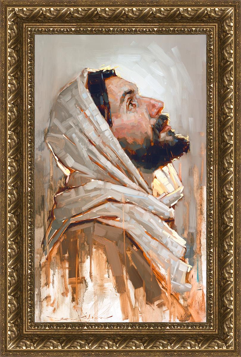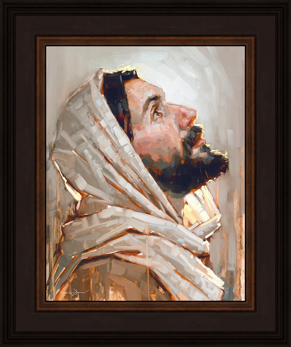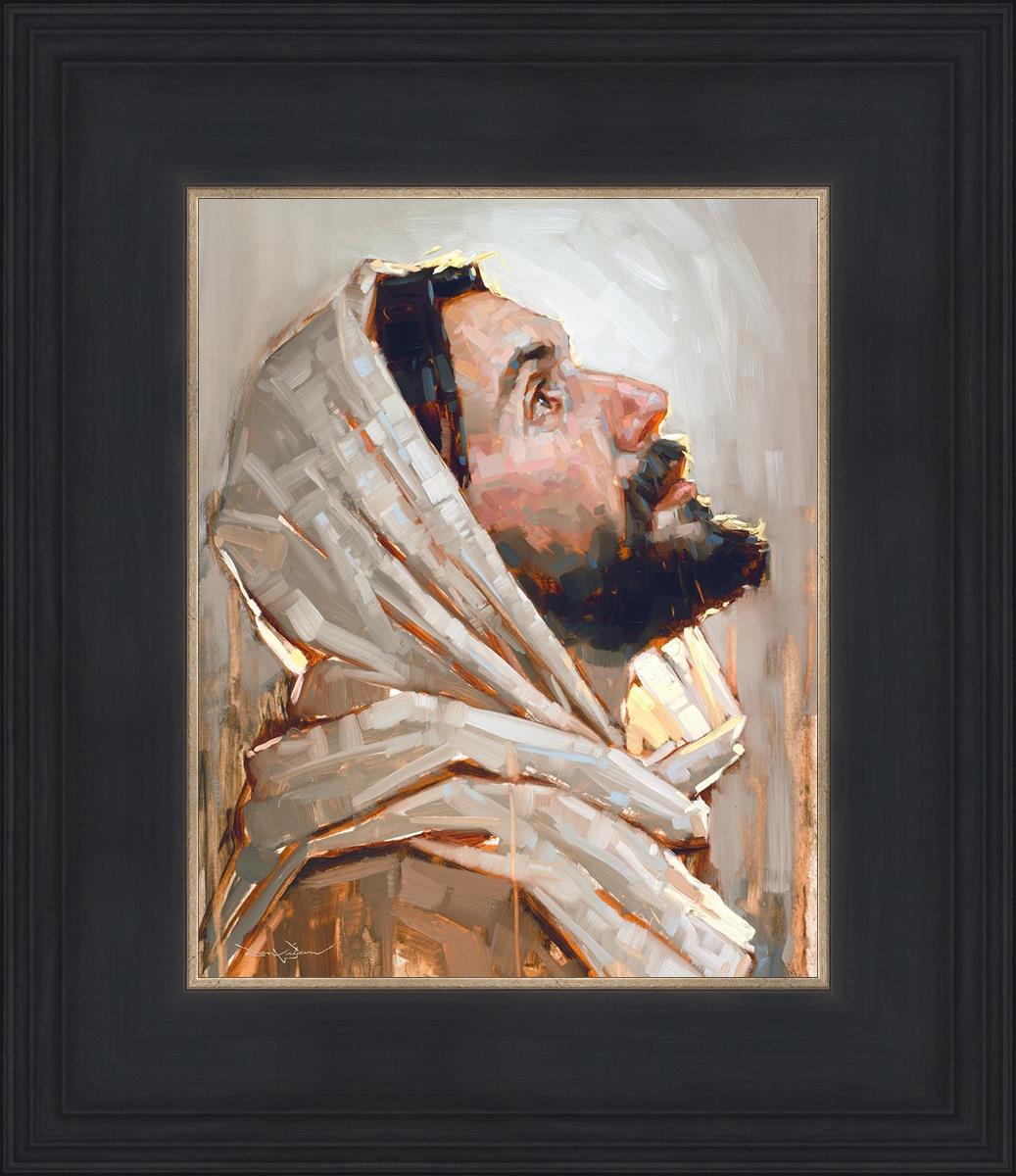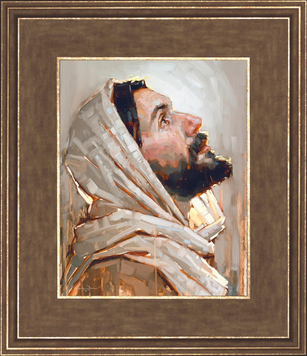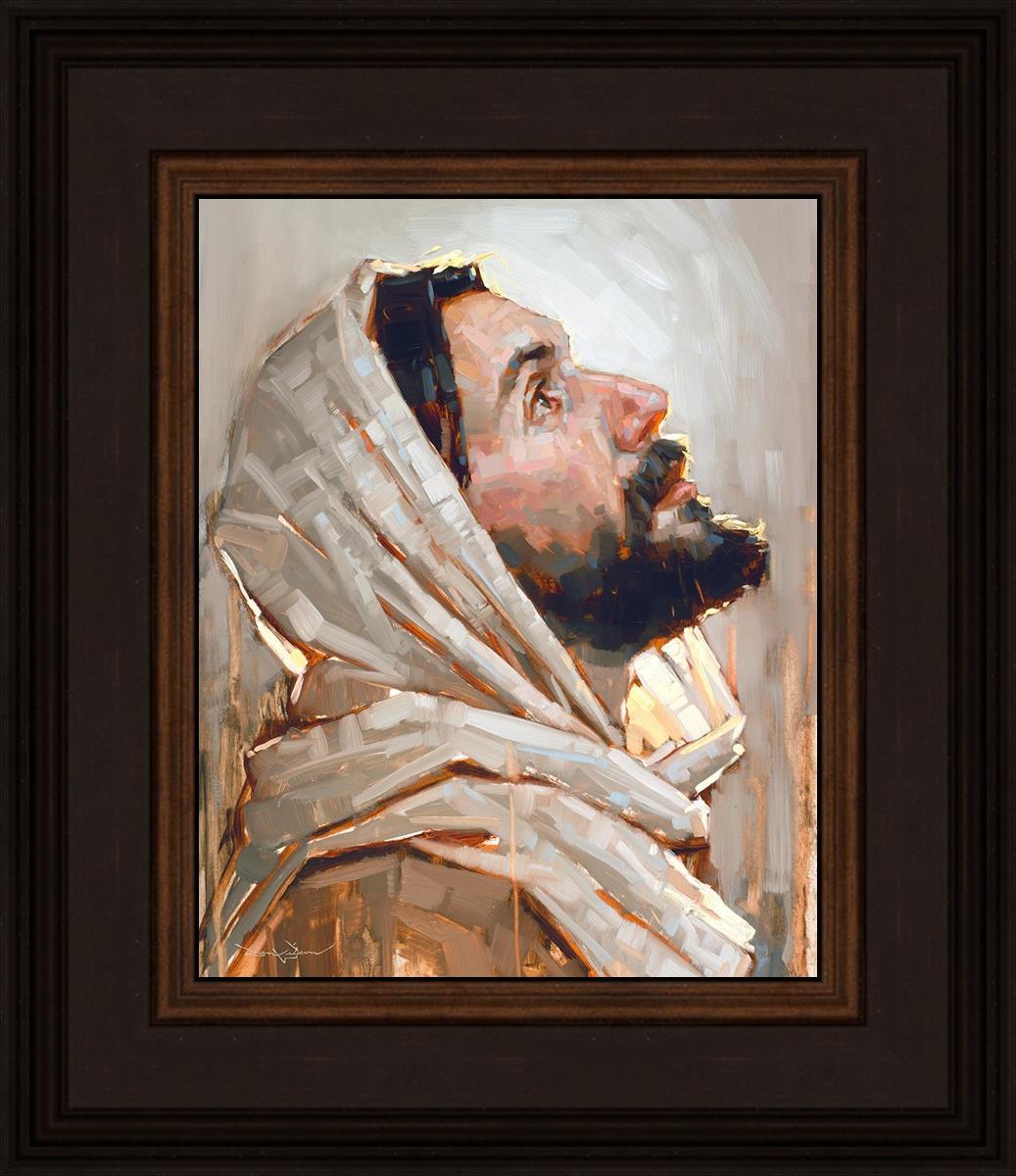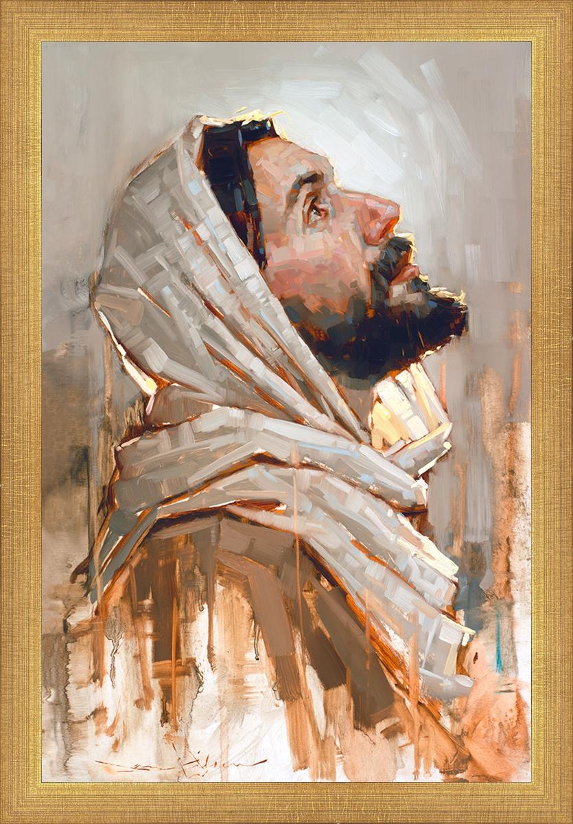 Look to God and Live" painting by Dan Wilson is an inspiring painting depicting Jesus' side profile, gazing upwards toward heaven amidst turbulent waves, symbolizing the importance of turning to God for guidance and salvation. This Christian artwork by Dan Wilson embodies themes of faith, hope, redemption, and the transformative power of turning to Him.
