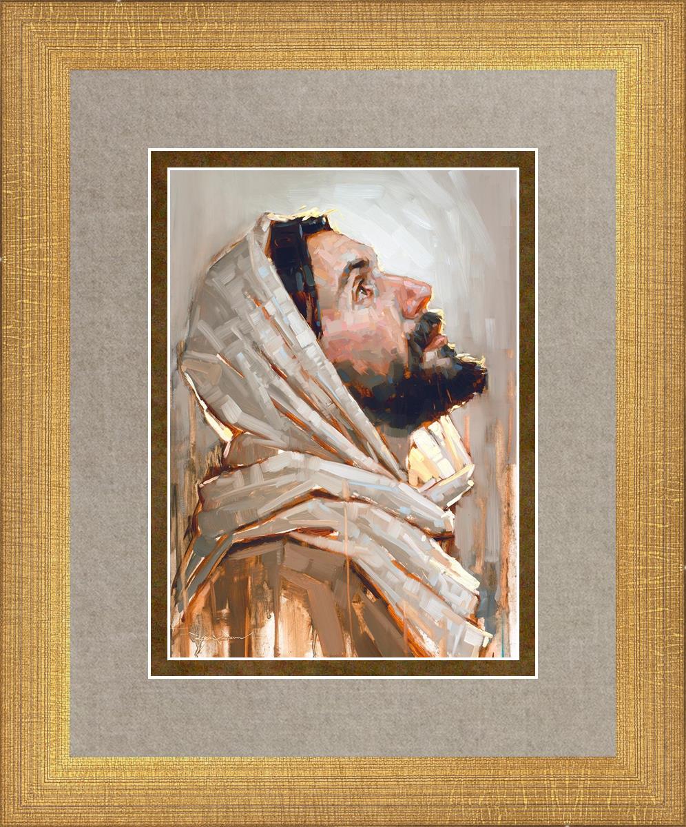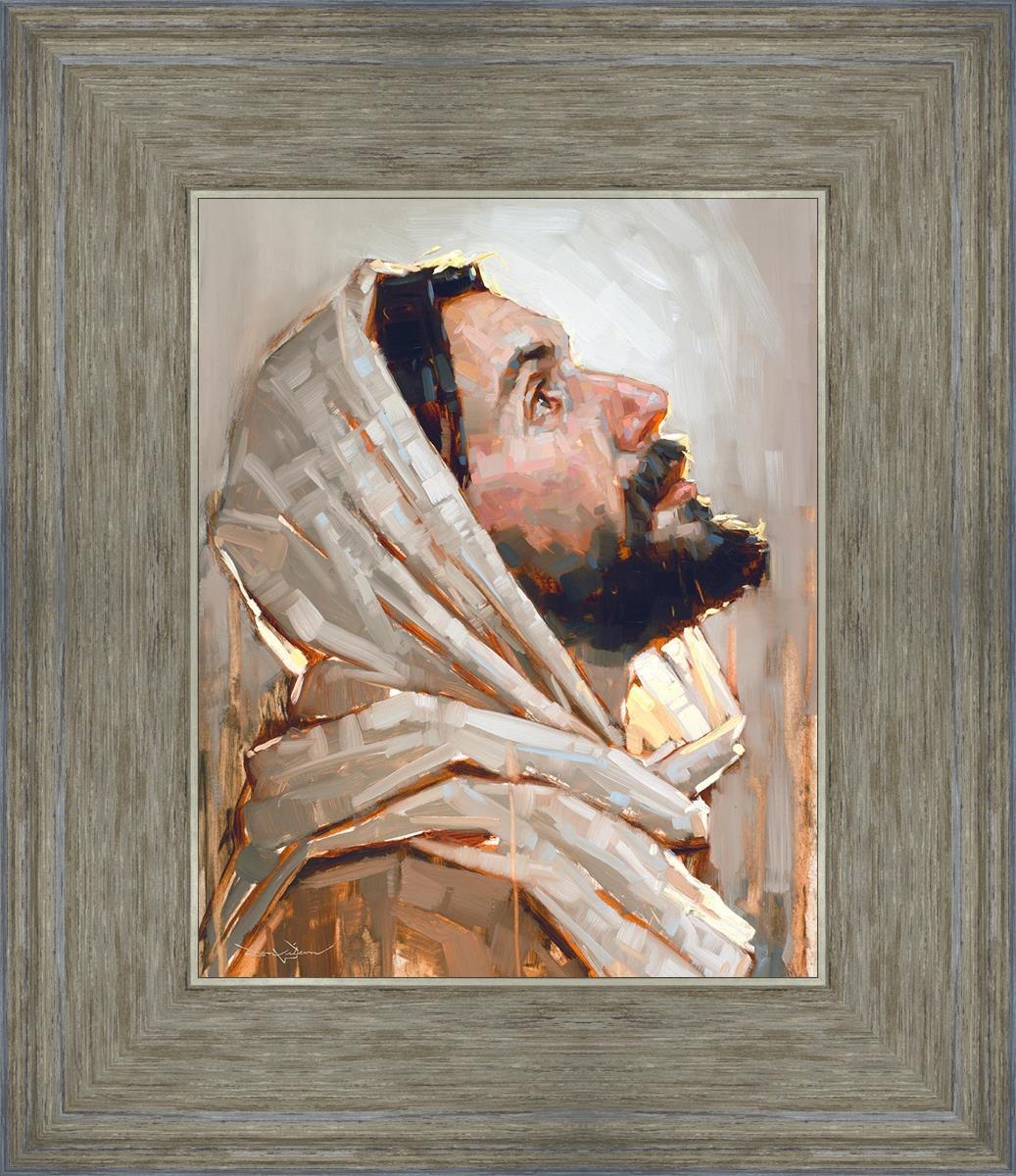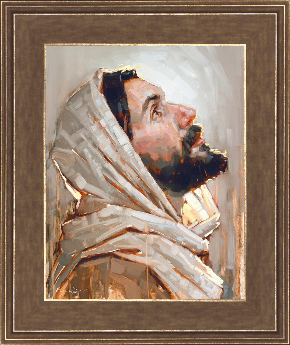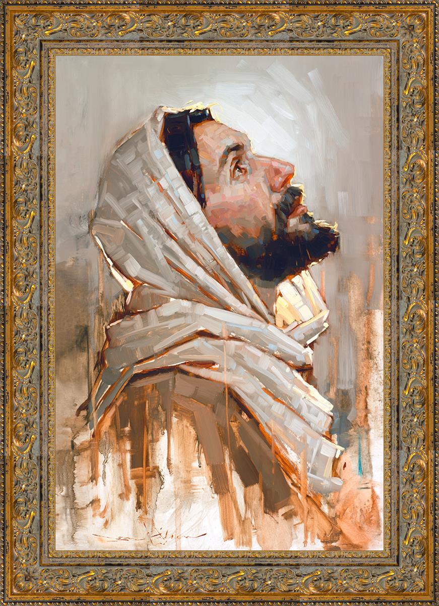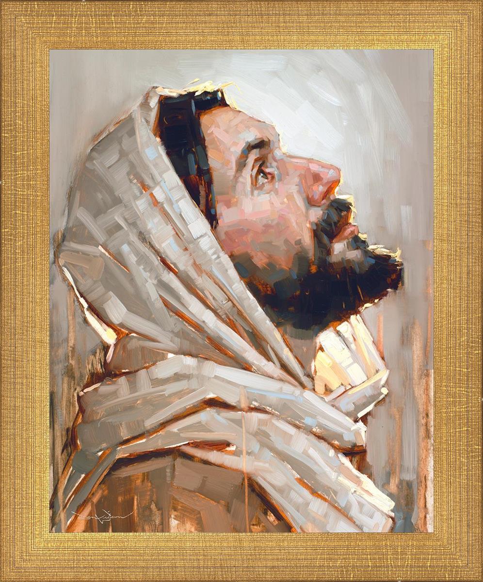 Look to God and Live" painting by Dan Wilson is an inspiring painting depicting Jesus' side profile, gazing upwards toward heaven amidst turbulent waves, symbolizing the importance of turning to God for guidance and salvation. This Christian artwork by Dan Wilson embodies themes of faith, hope, redemption, and the transformative power of turning to Him.