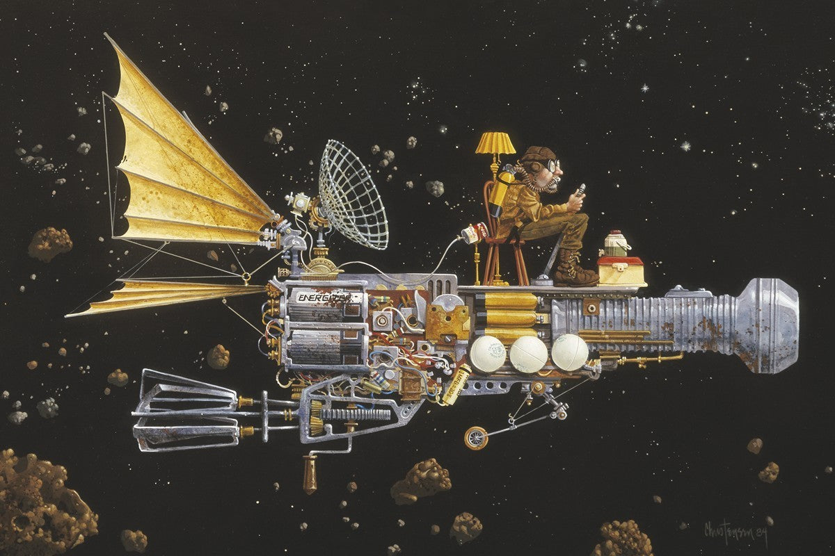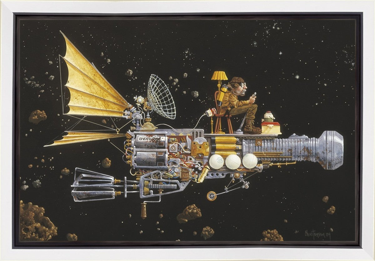 Christensen’s fine art appears as works of art in paper, canvas, porcelain and bronze. His first book, A Journey of the Imagination: The Art of James Christensen, was published to great acclaim in 1994. His second, the adventure fantasy Voyage of the Basset, has more than 100,000 copies in print. His subsequent books include the inventive Rhymes & Reasons, published in May 1997, Parables (written by Robert Millet, 1999), The Personal Illumination Series and The Personal Illumination Journal (2000), a series of interactive journals, A Shakespeare Sketchbook (2001) and James Christensen, Foremost Fantasy Artist (2001). In 2008 his eighth book, Men and Angels, was published. Passage by Faith: Exploring the Inspirational Art of James C. Christensen, his last book was published in 2014.