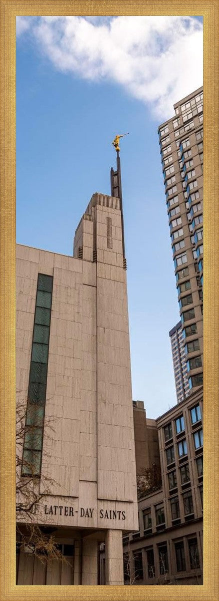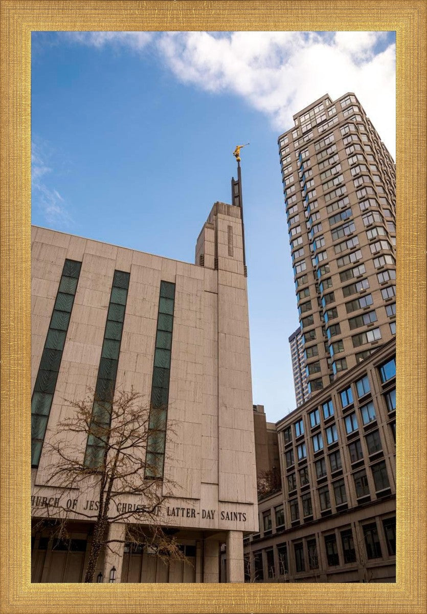 New York City skyscrapers overlooking the Manhattan Temple in the Winter