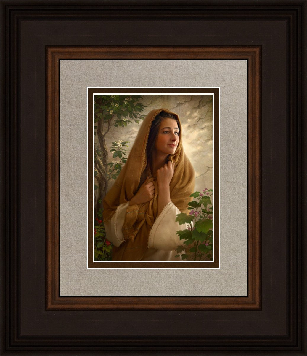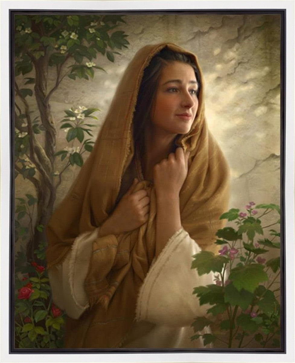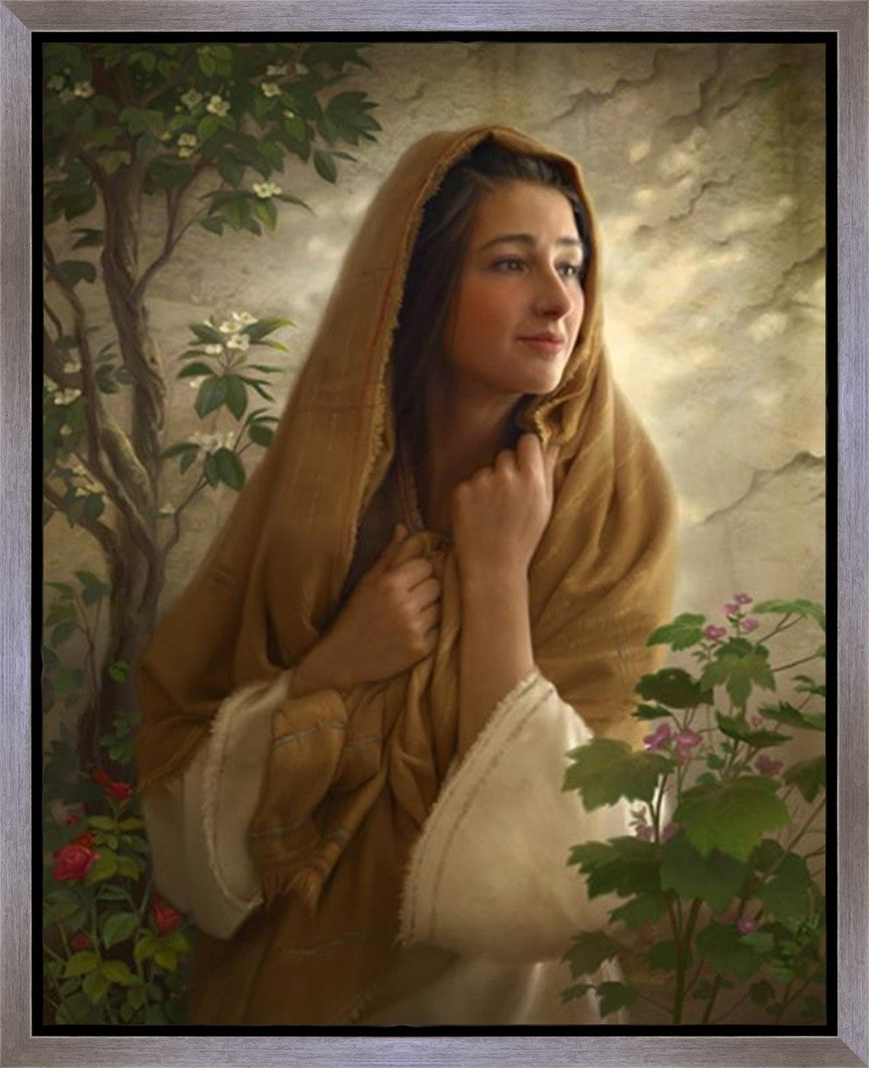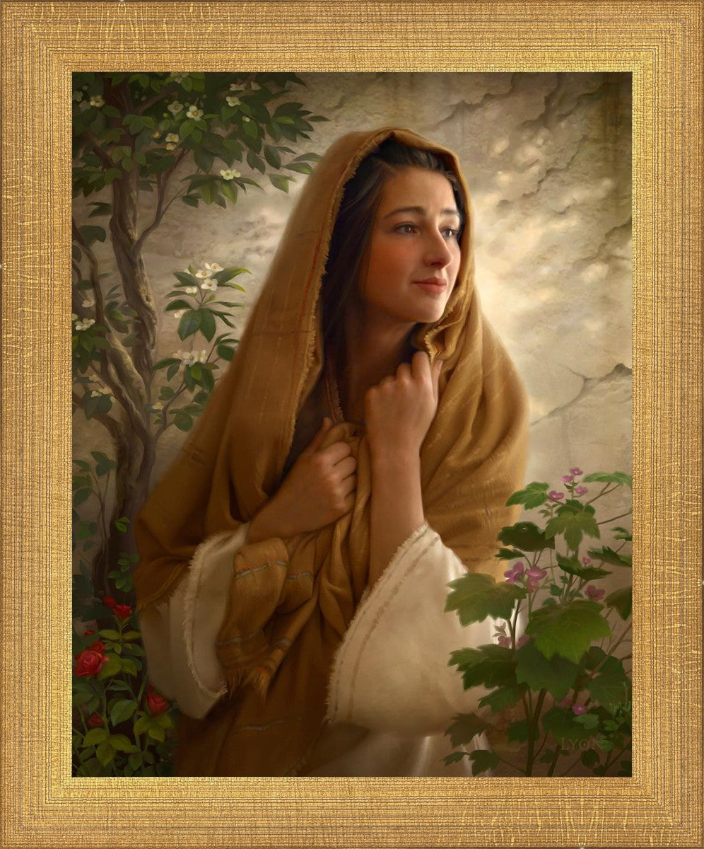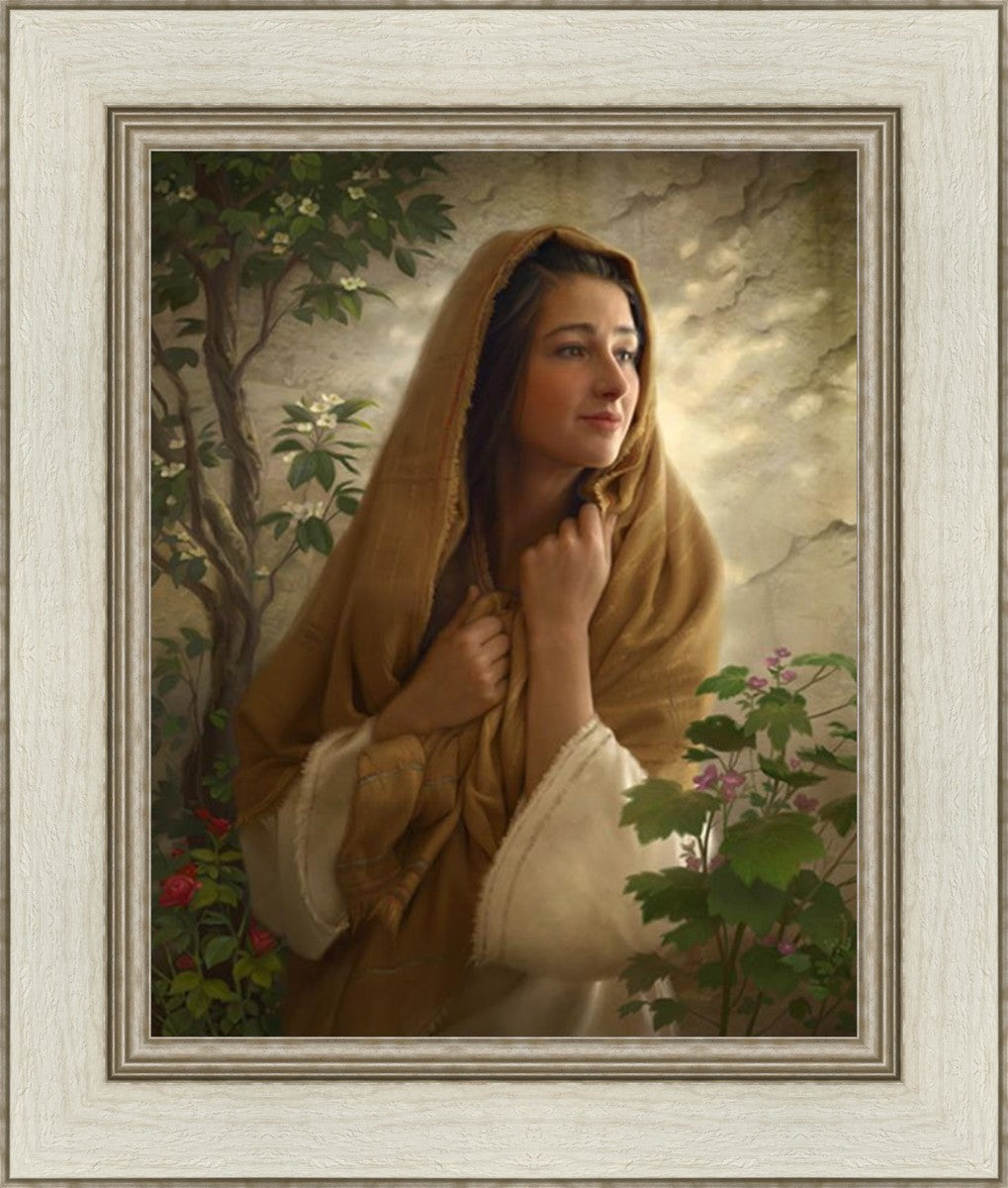 Luke 2:19 Mary kept all these things, and pondered them in her heart. **** Mary has found a brief, quiet moment to contemplate. There is a little concern in her eyes, knowing that there will be pain and hardship in the life of her child, but hope as well, for she knows that God loves her and has a plan. She smiles as she reflects on the joy she feels when thinking of her son. Motherhood brings many emotions. Fear, joy, pain, hope, concern, and nearly inexpressible love can all be part of motherhood. No doubt Mary felt inadequate, but steadfast and faithful—humbled, though honored, to have been chosen to be part of Christ’s life.