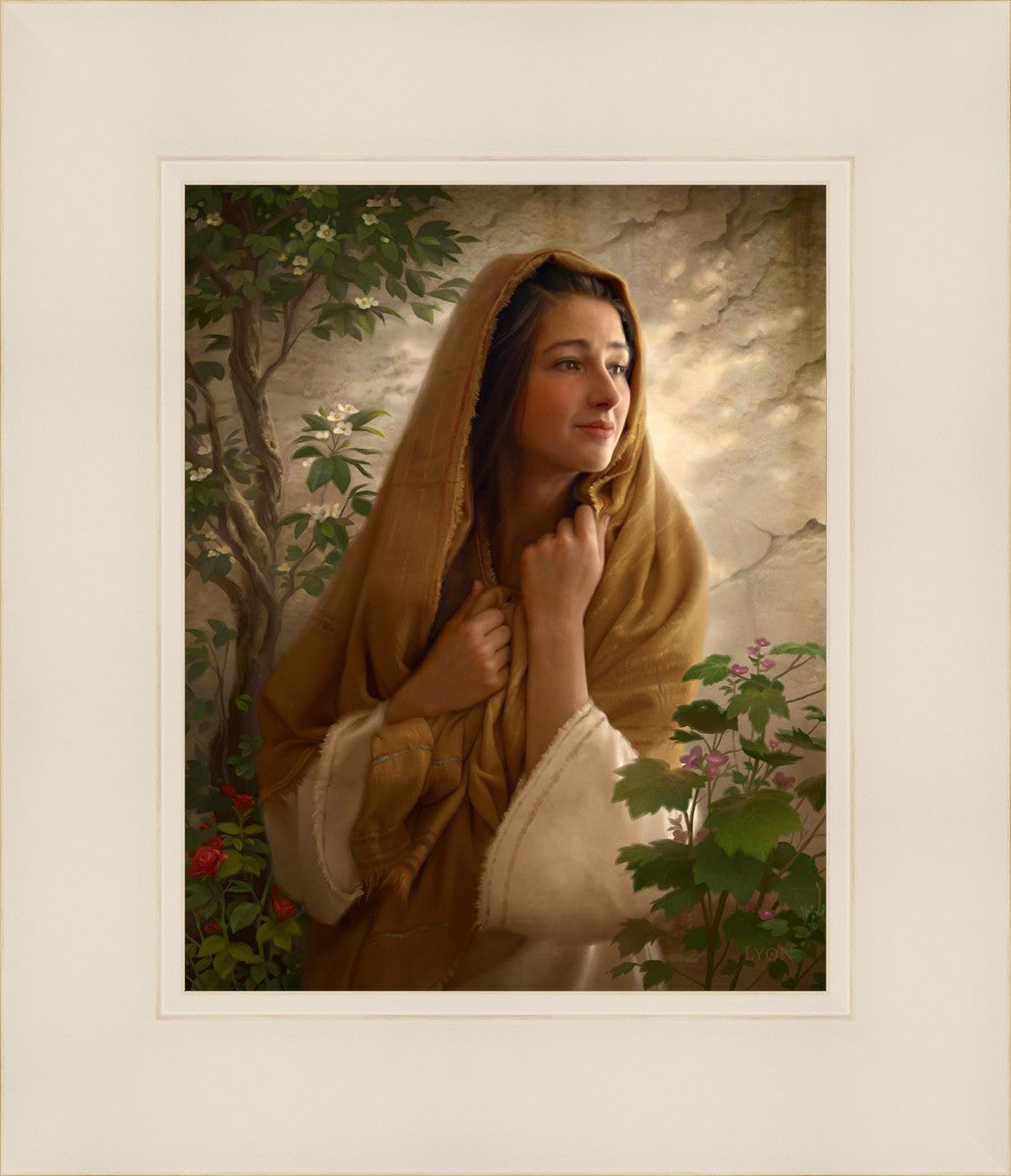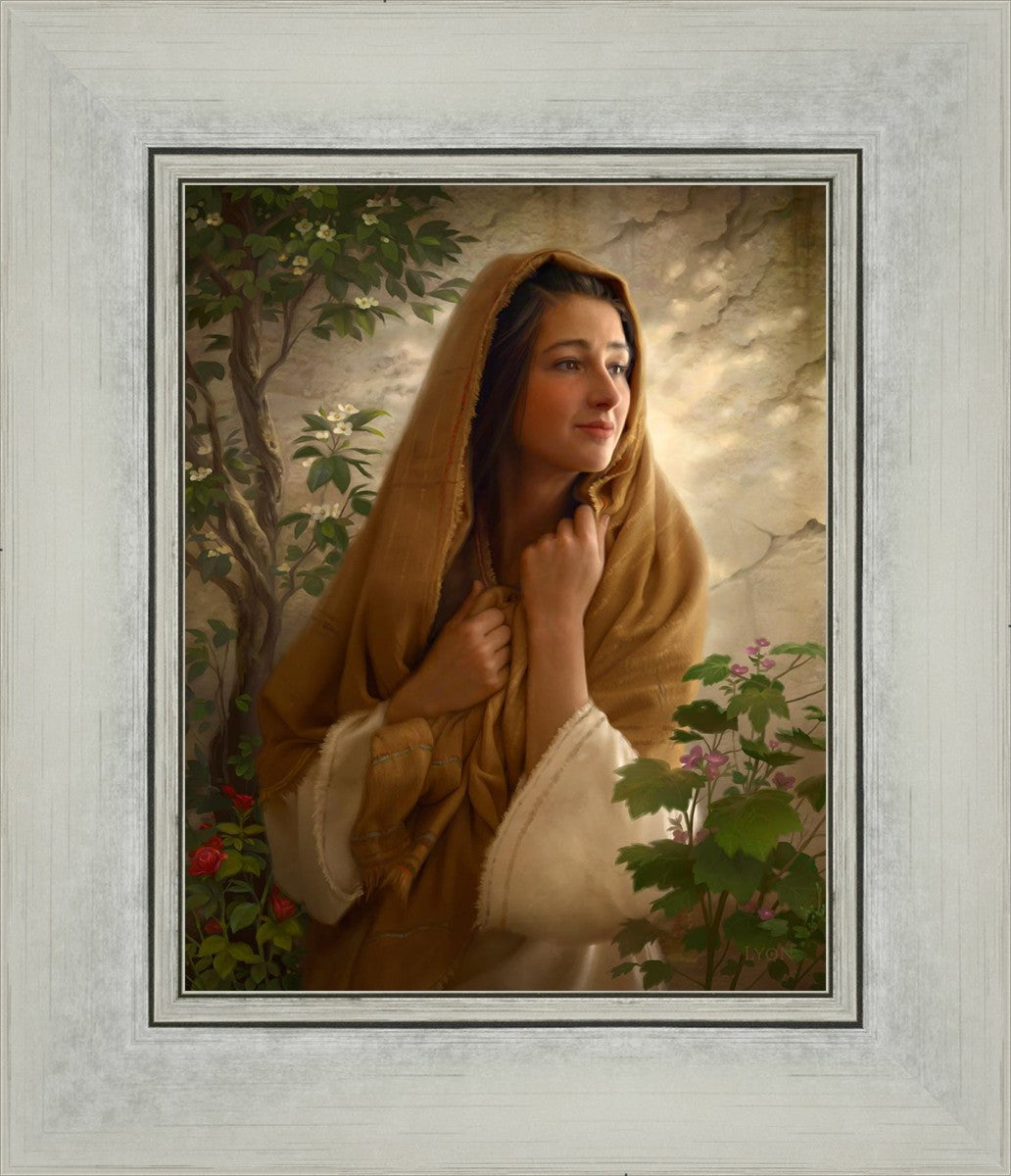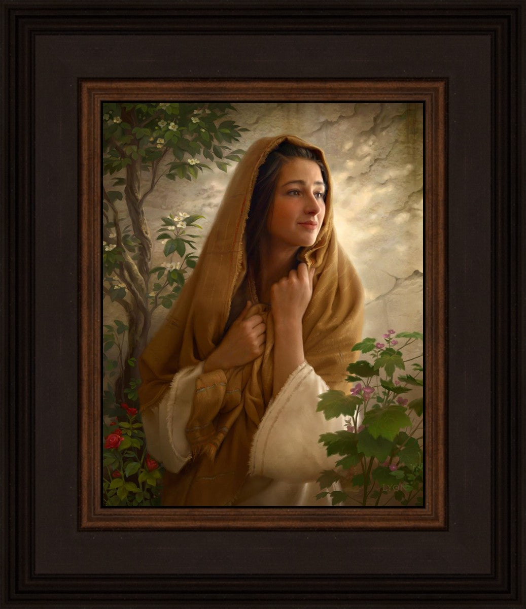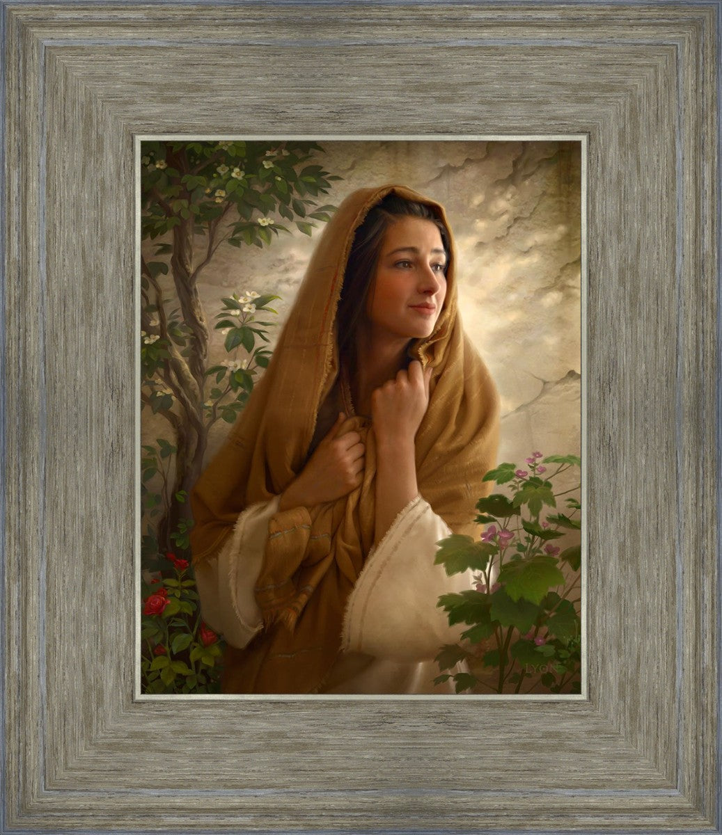 Luke 2:19 Mary kept all these things, and pondered them in her heart. **** Mary has found a brief, quiet moment to contemplate. There is a little concern in her eyes, knowing that there will be pain and hardship in the life of her child, but hope as well, for she knows that God loves her and has a plan. She smiles as she reflects on the joy she feels when thinking of her son. Motherhood brings many emotions. Fear, joy, pain, hope, concern, and nearly inexpressible love can all be part of motherhood. No doubt Mary felt inadequate, but steadfast and faithful—humbled, though honored, to have been chosen to be part of Christ’s life.