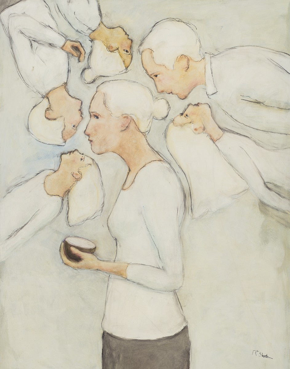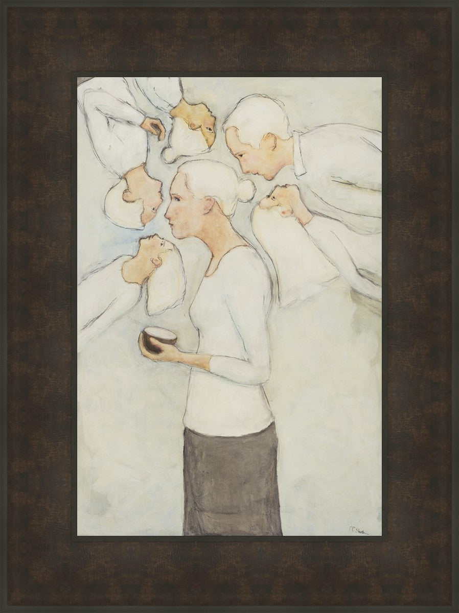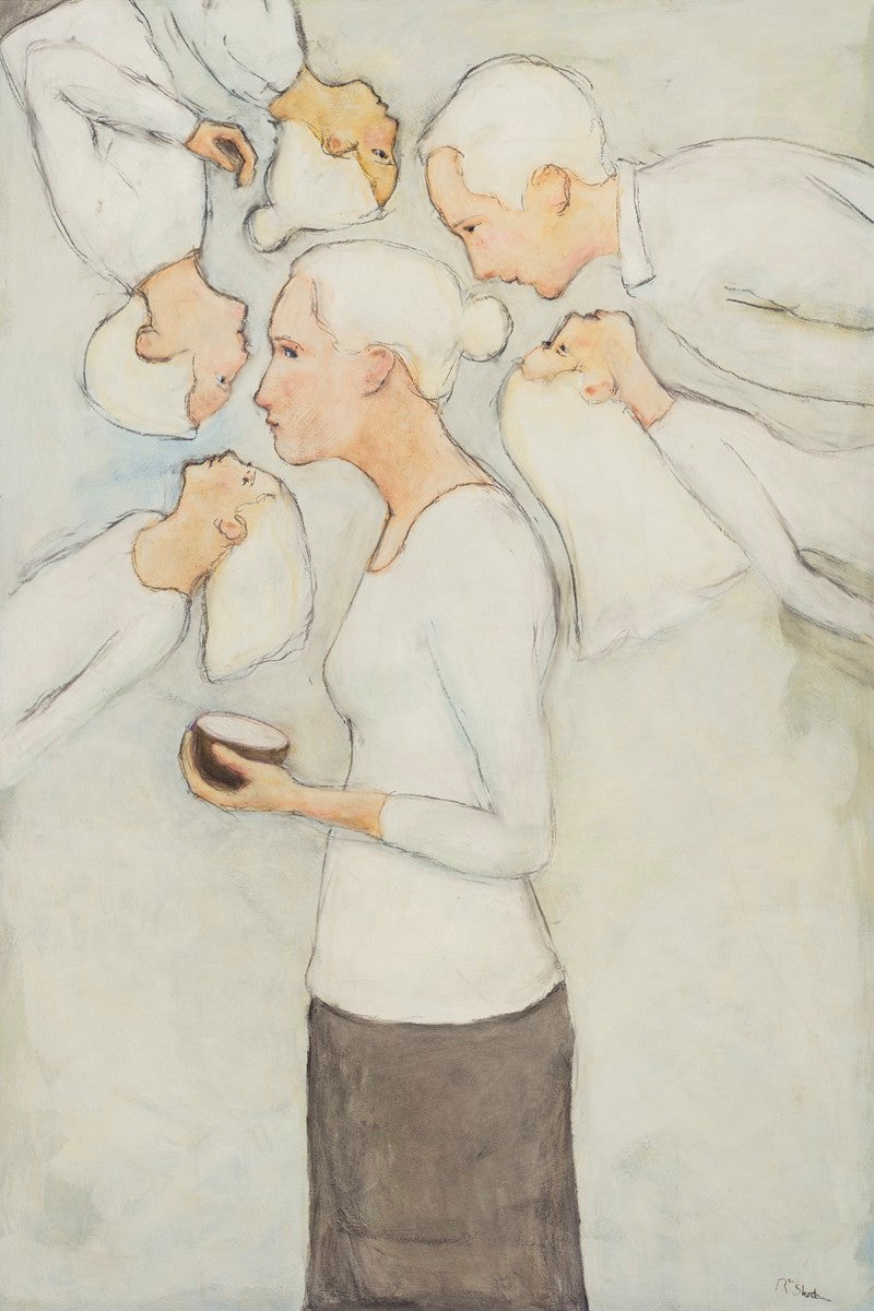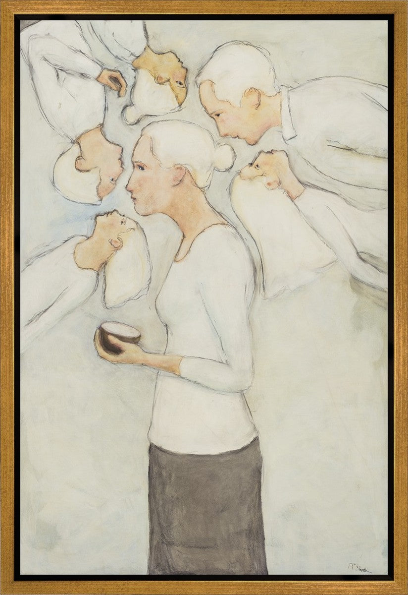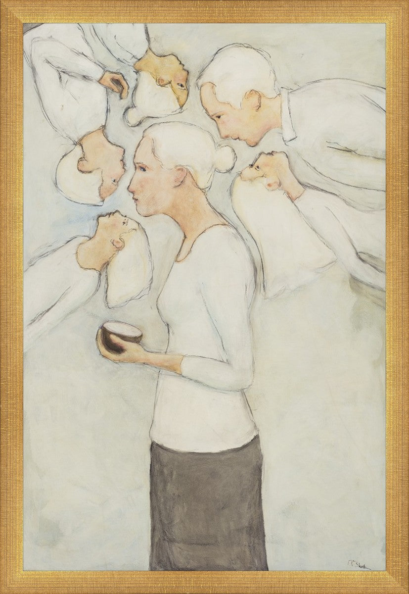 This is subtitled 'A Mom with Five Children, One of them Being Her Husband' It represents a mother being the center of a household.