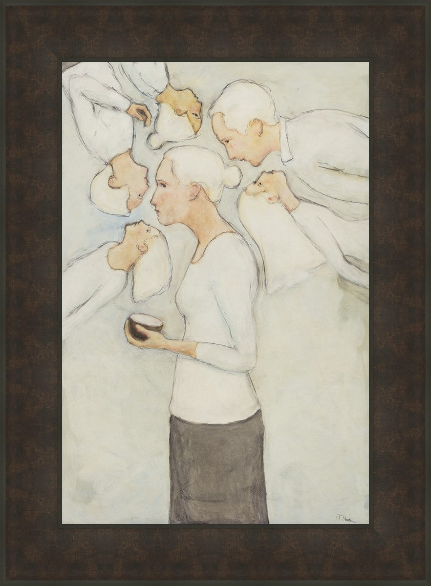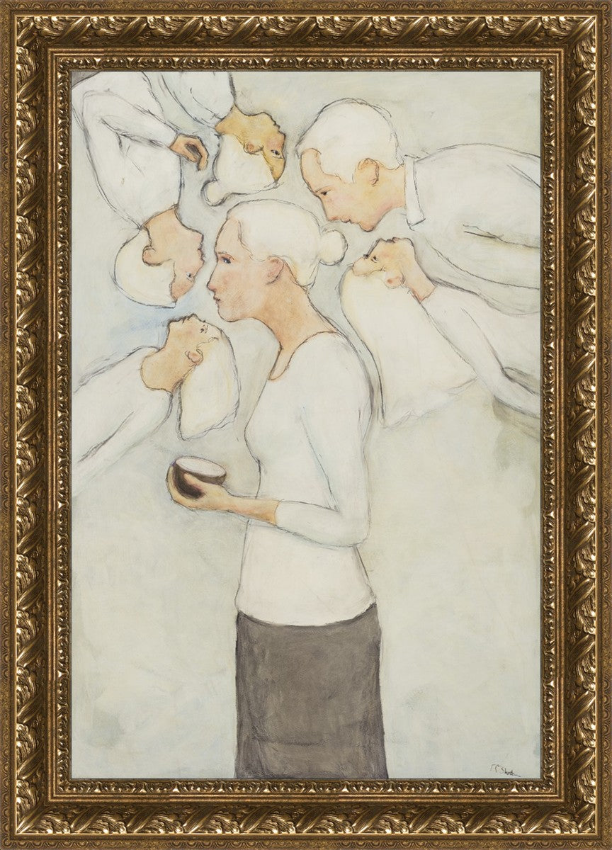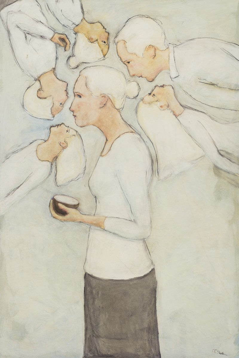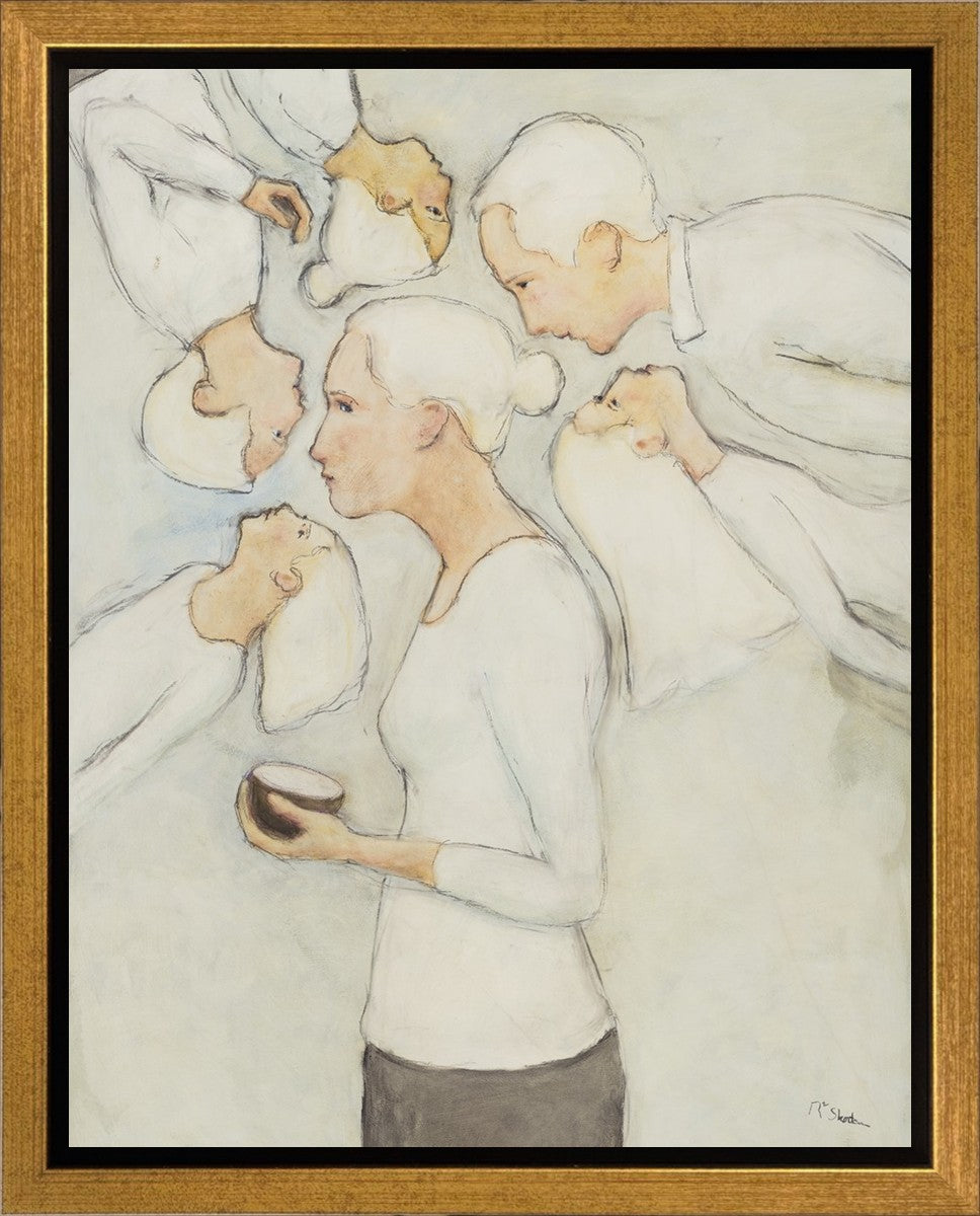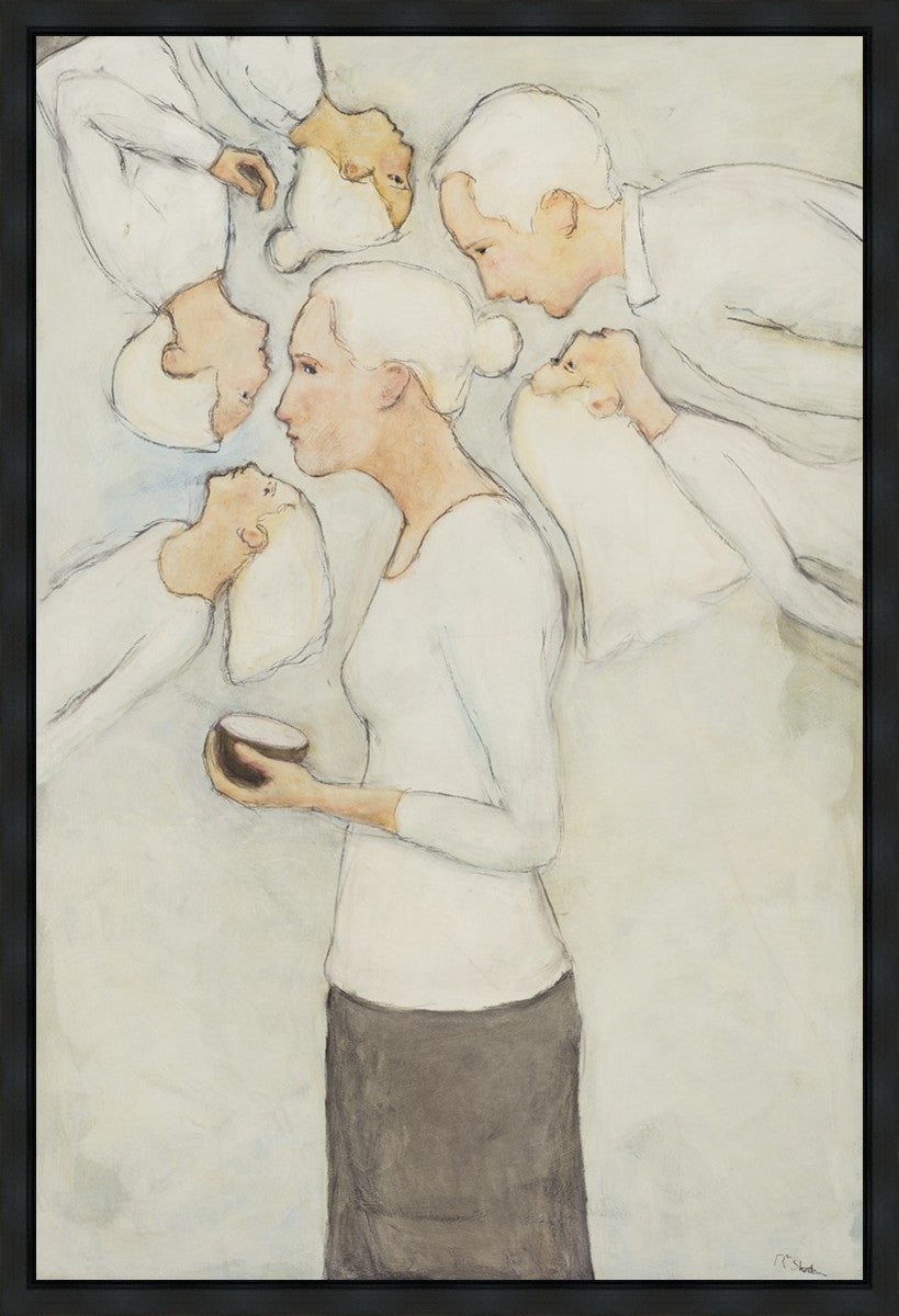 This is subtitled 'A Mom with Five Children, One of them Being Her Husband' It represents a mother being the center of a household.