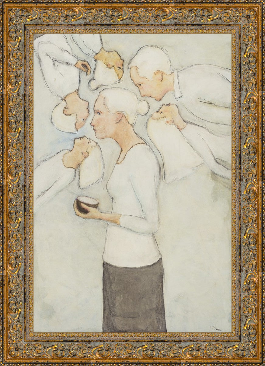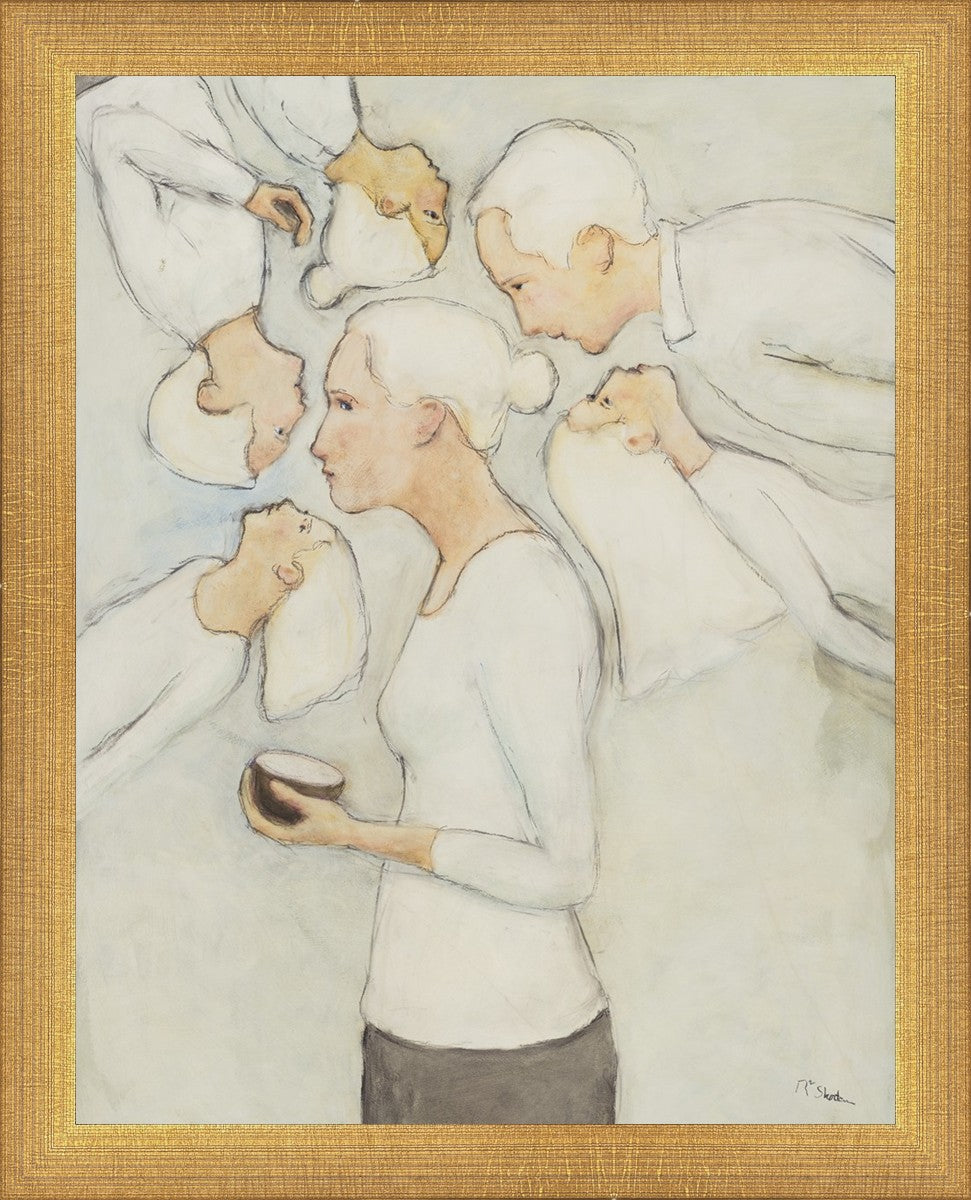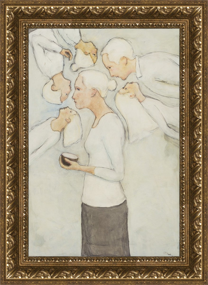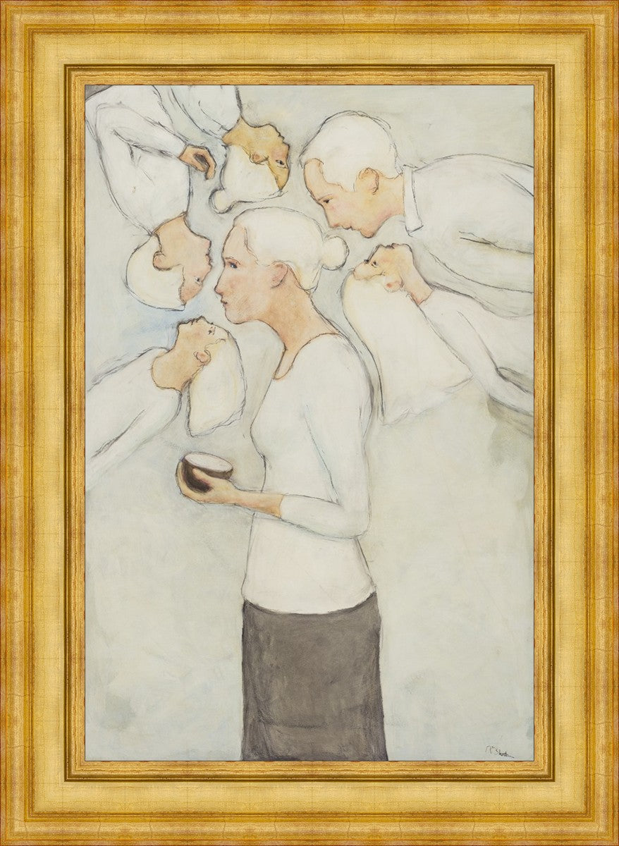 This is subtitled 'A Mom with Five Children, One of them Being Her Husband' It represents a mother being the center of a household.