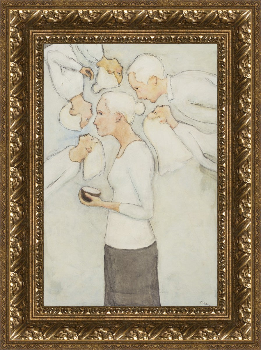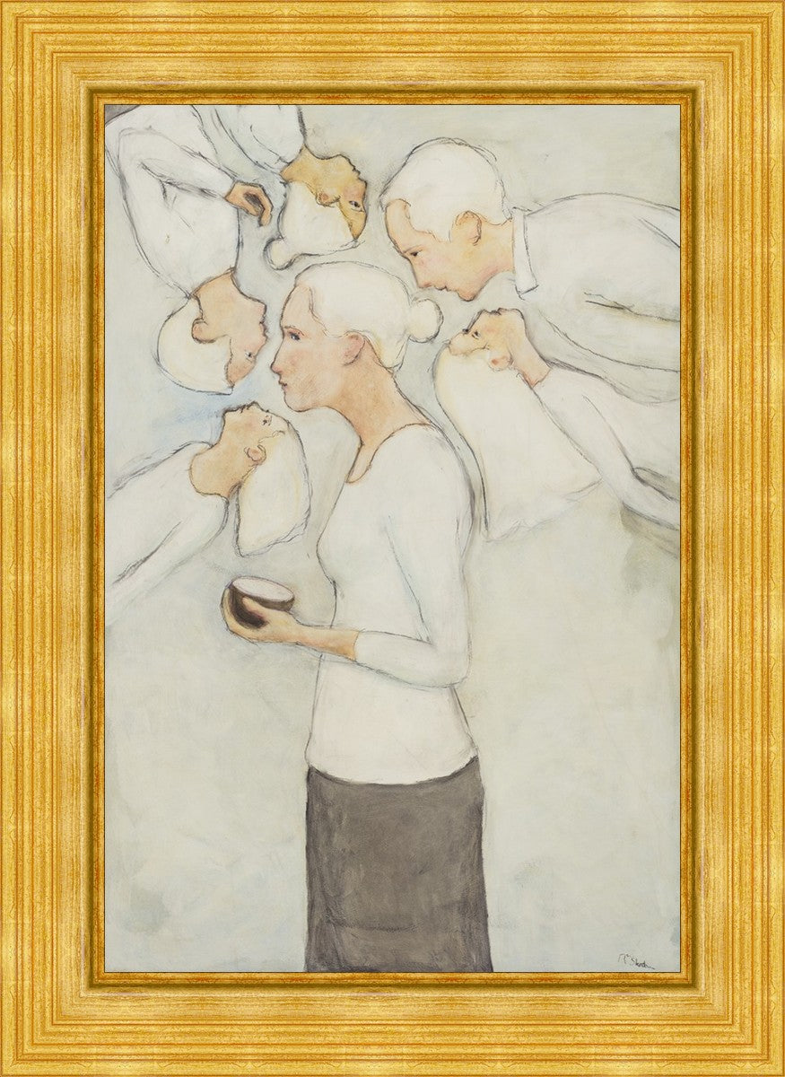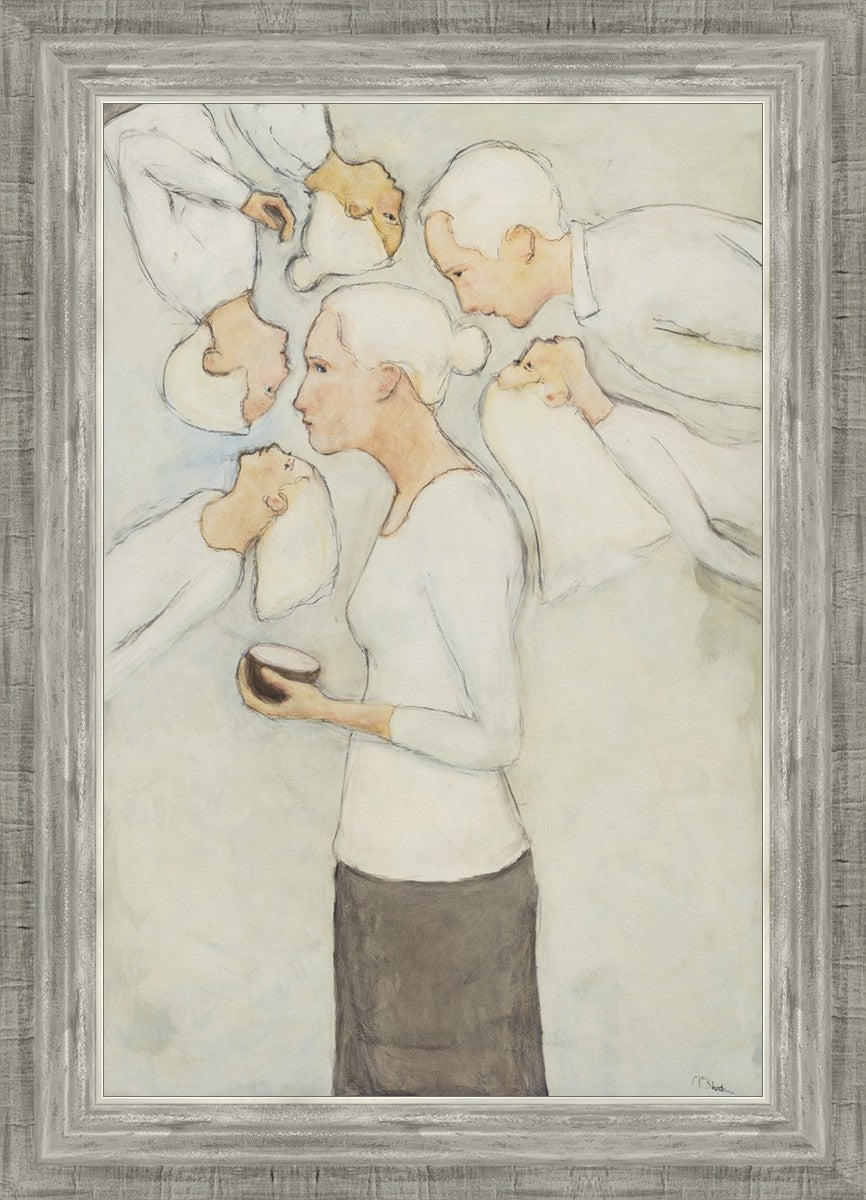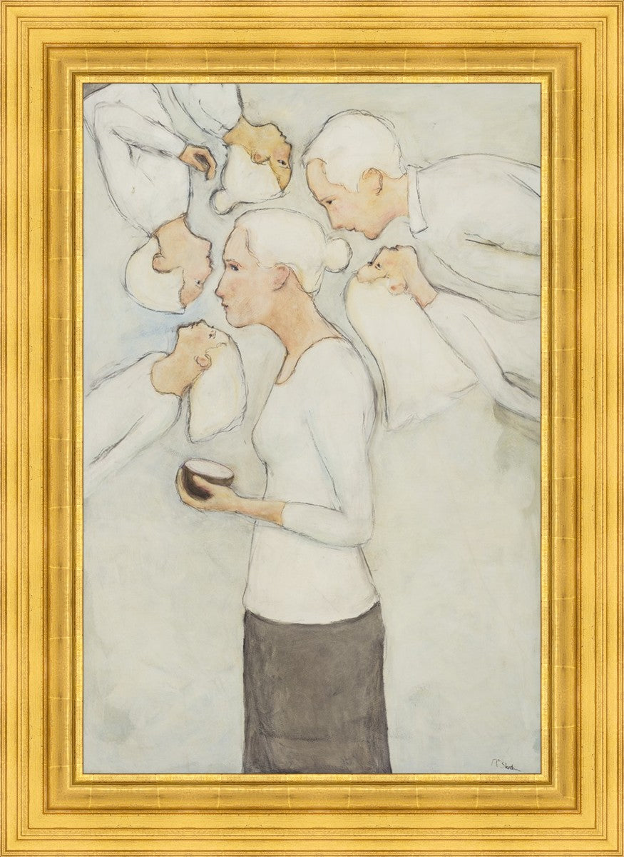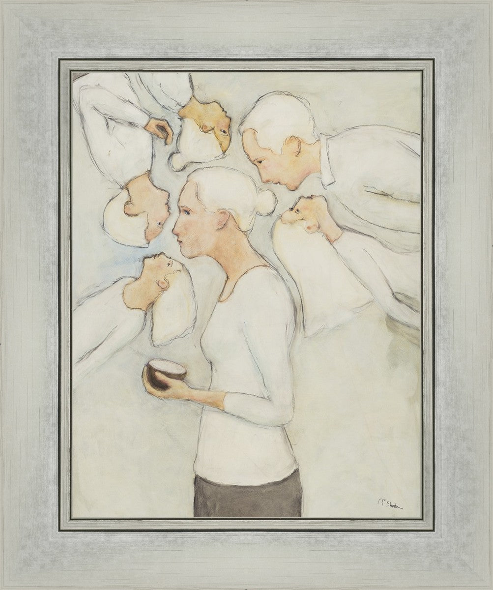 This is subtitled 'A Mom with Five Children, One of them Being Her Husband' It represents a mother being the center of a household.