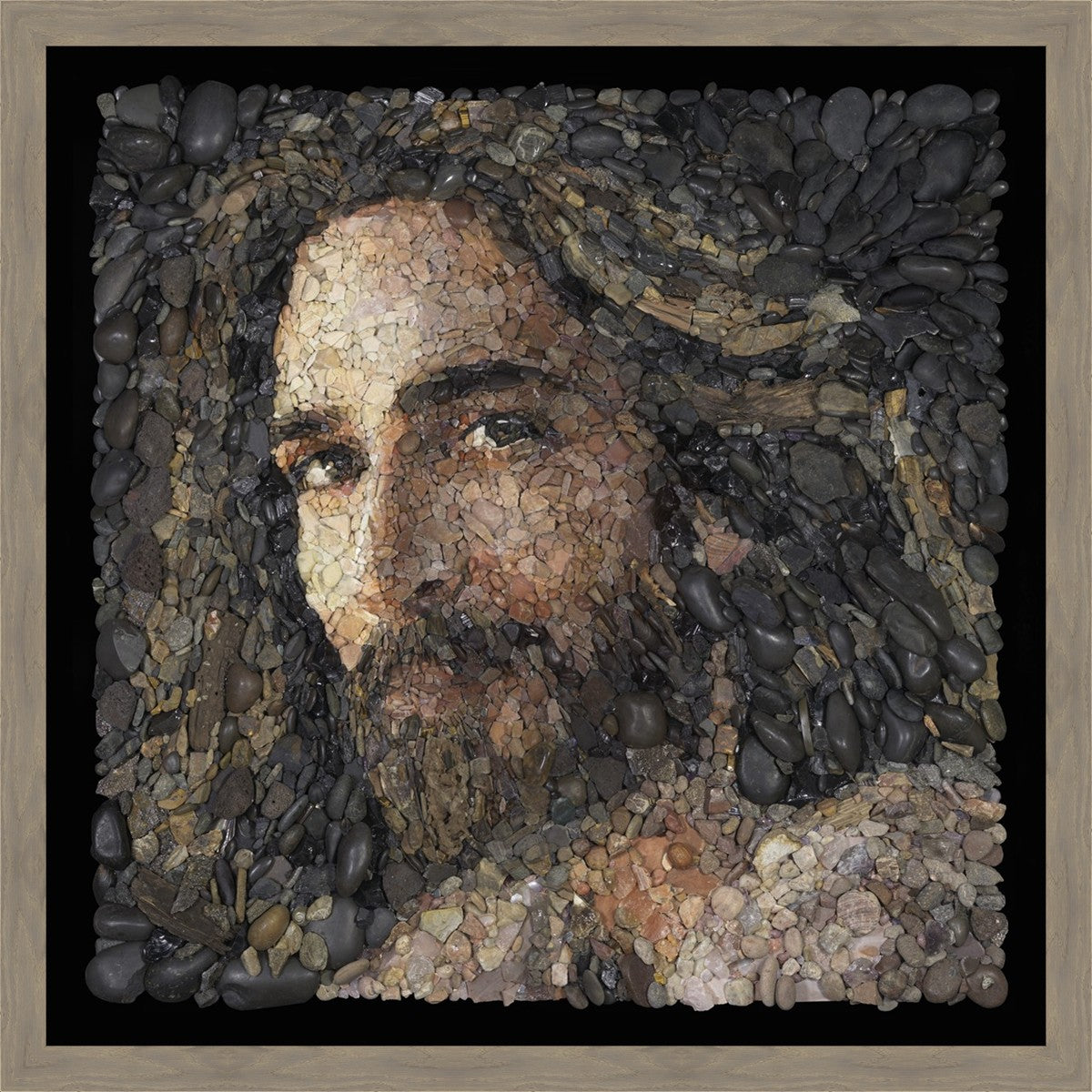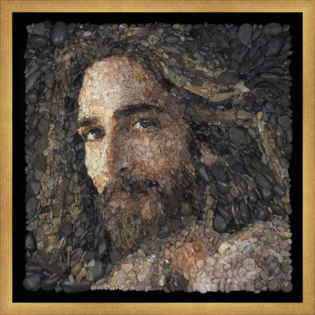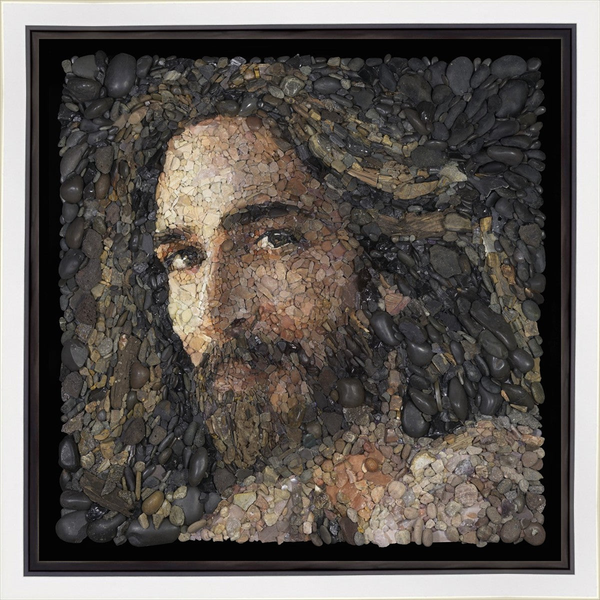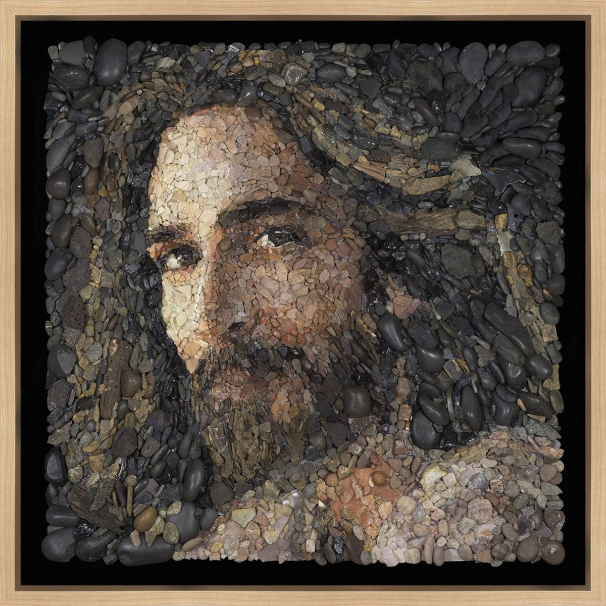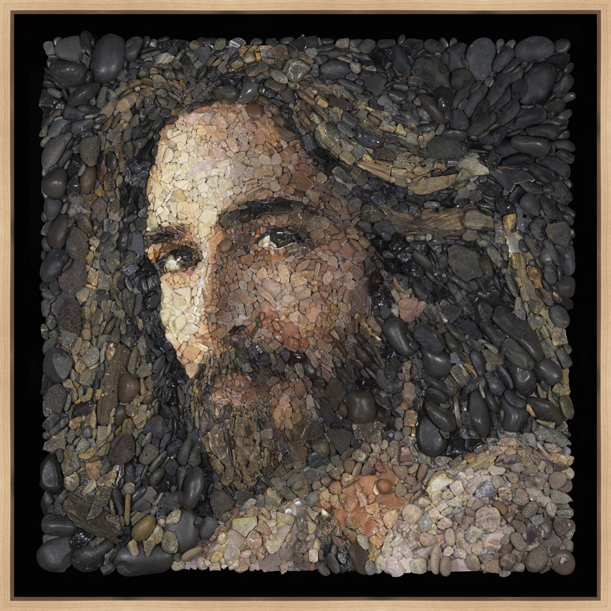 Reproduced from the artist's original artwork of rocks, shells, wood, and other found items on board 44.5 x 44.5. Created 2024.