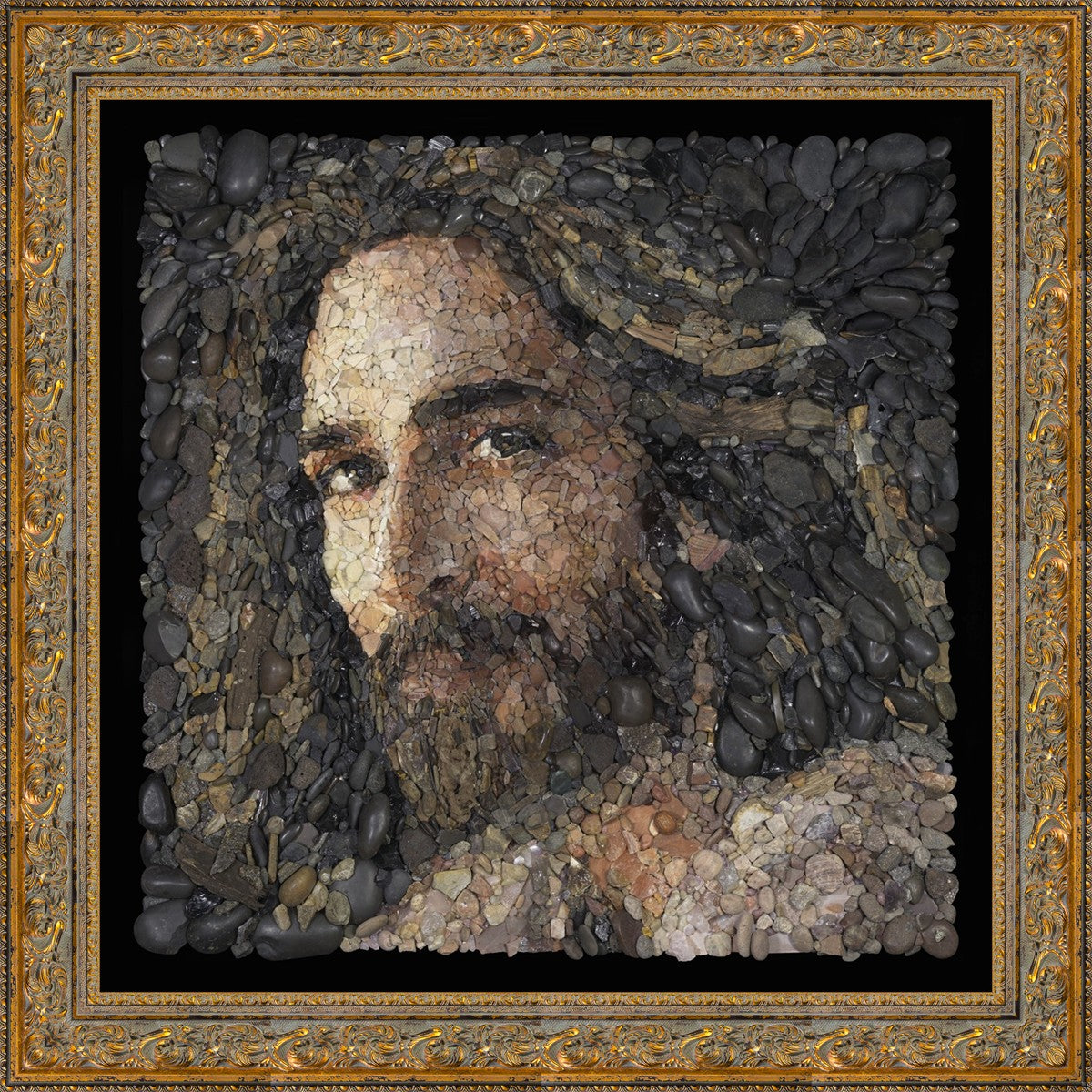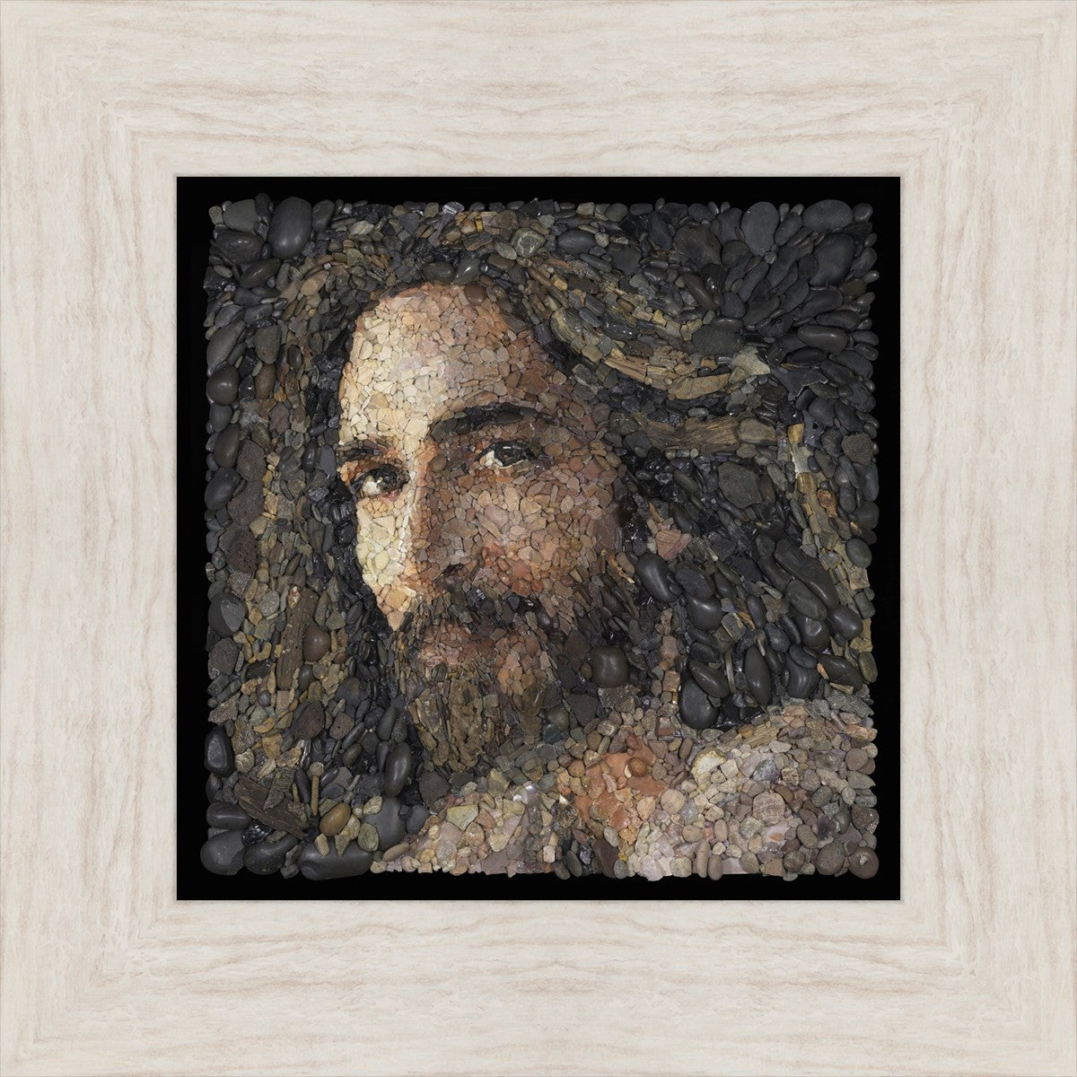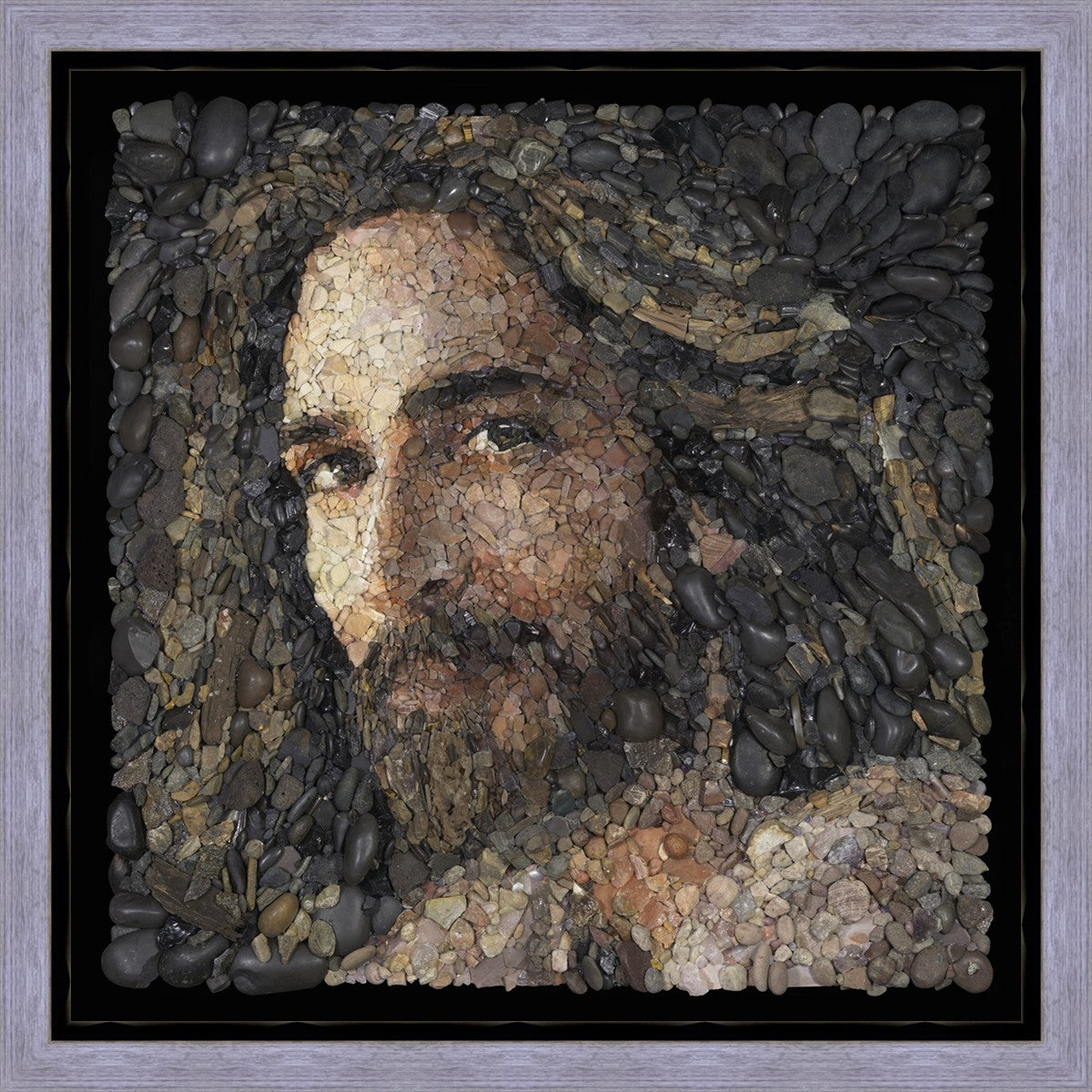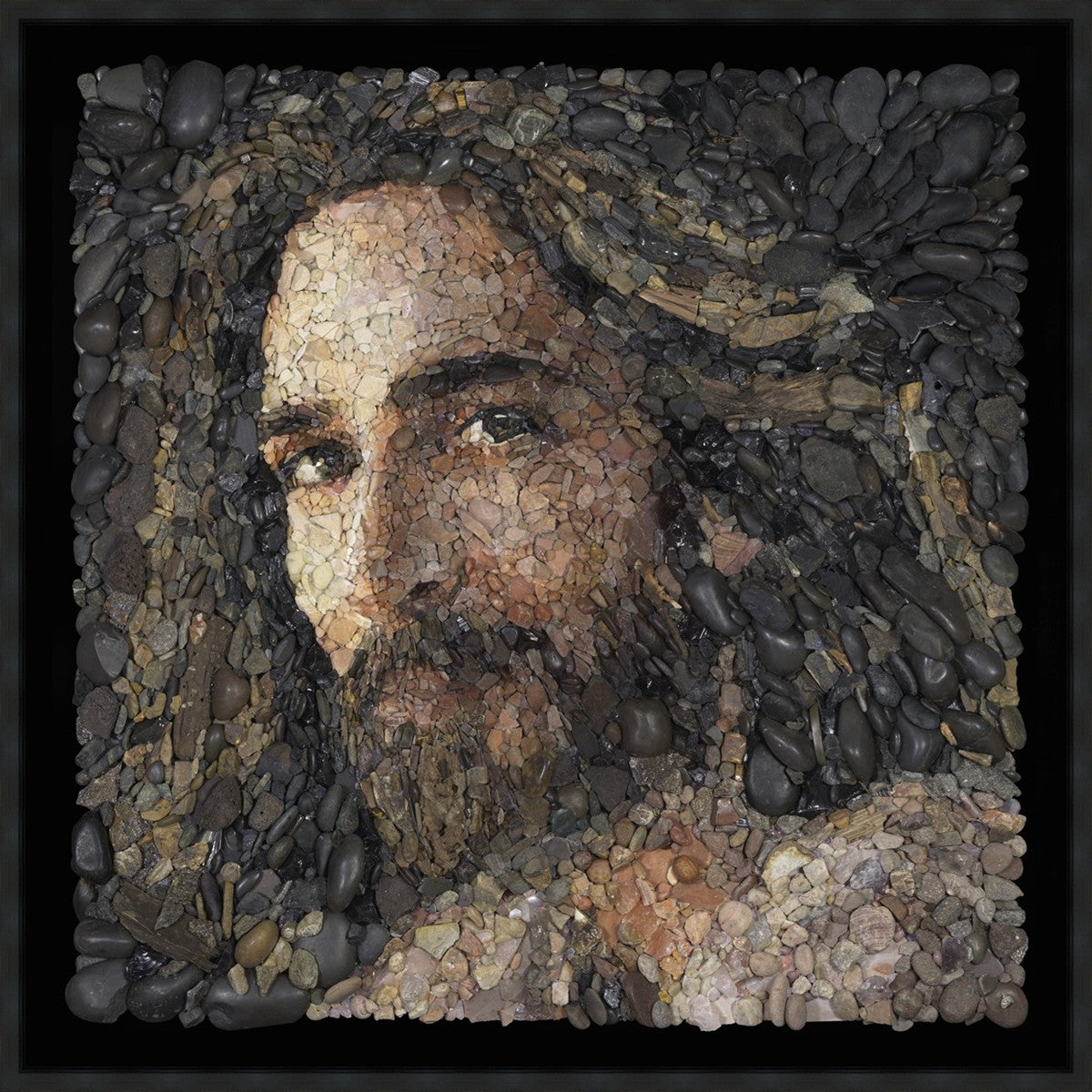 Reproduced from the artist's original artwork of rocks, shells, wood, and other found items on board 44.5 x 44.5. Created 2024.