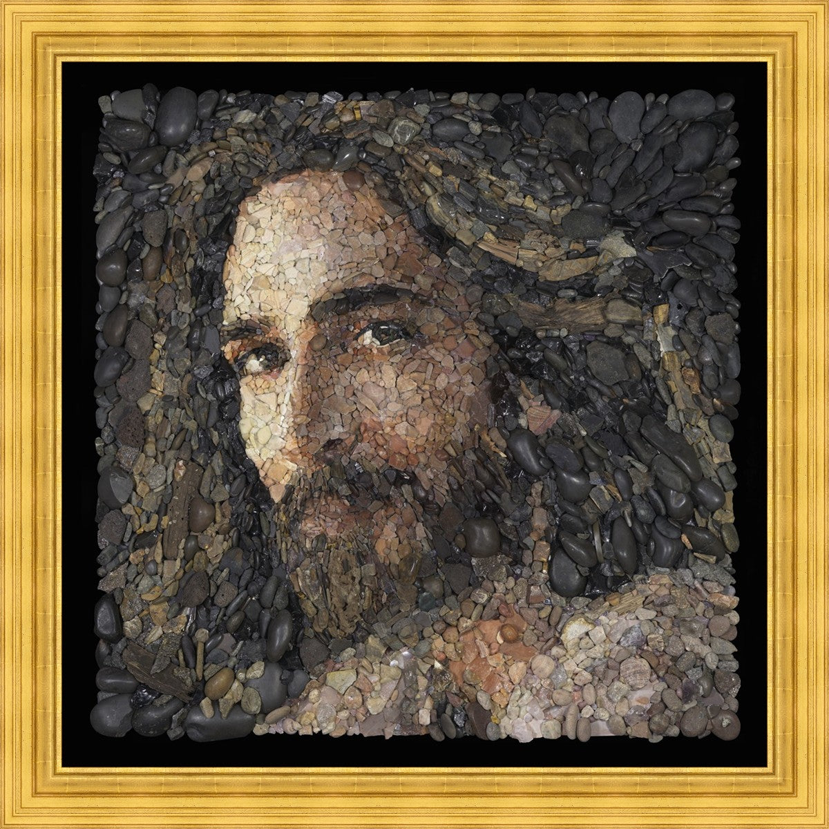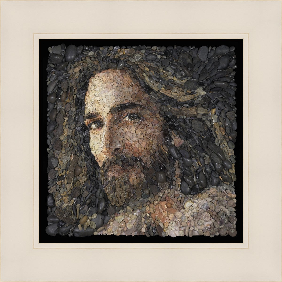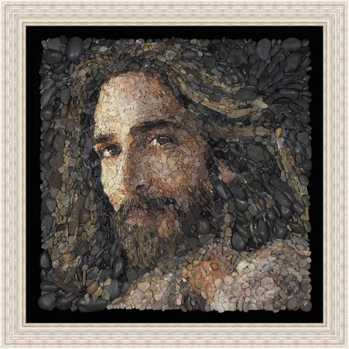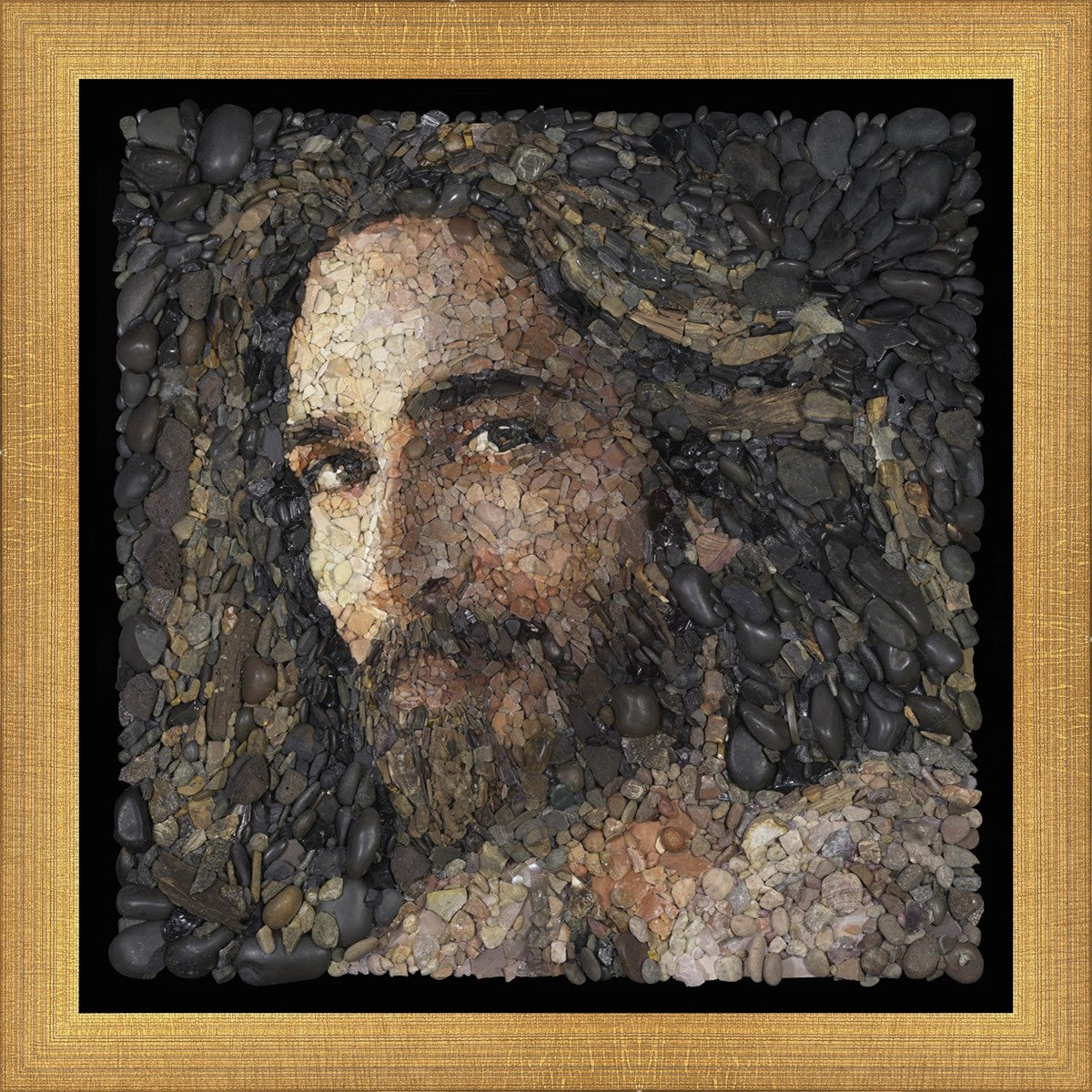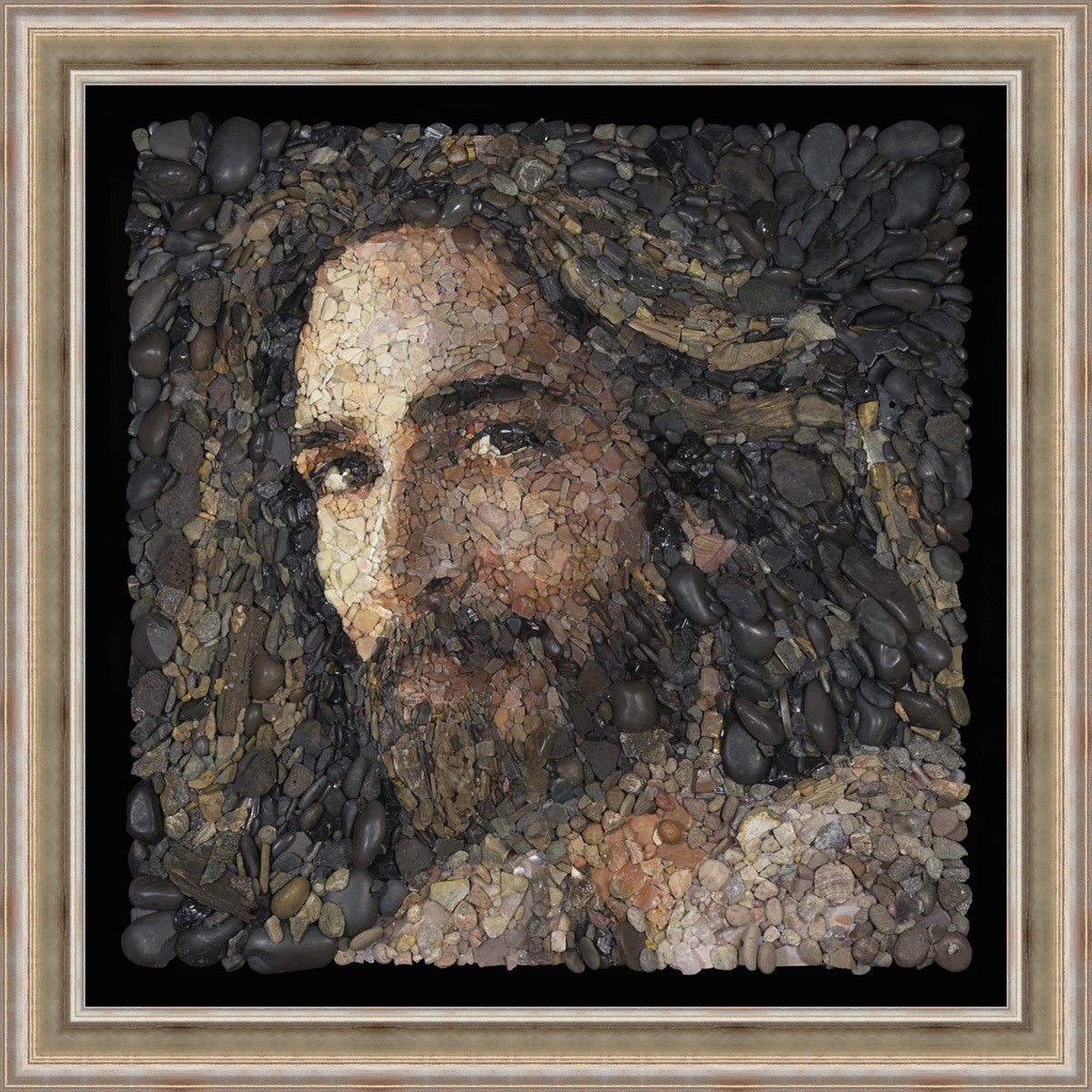 Reproduced from the artist's original artwork of rocks, shells, wood, and other found items on board 44.5 x 44.5. Created 2024.