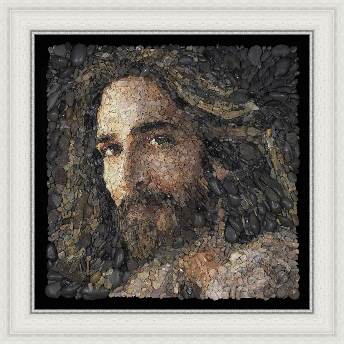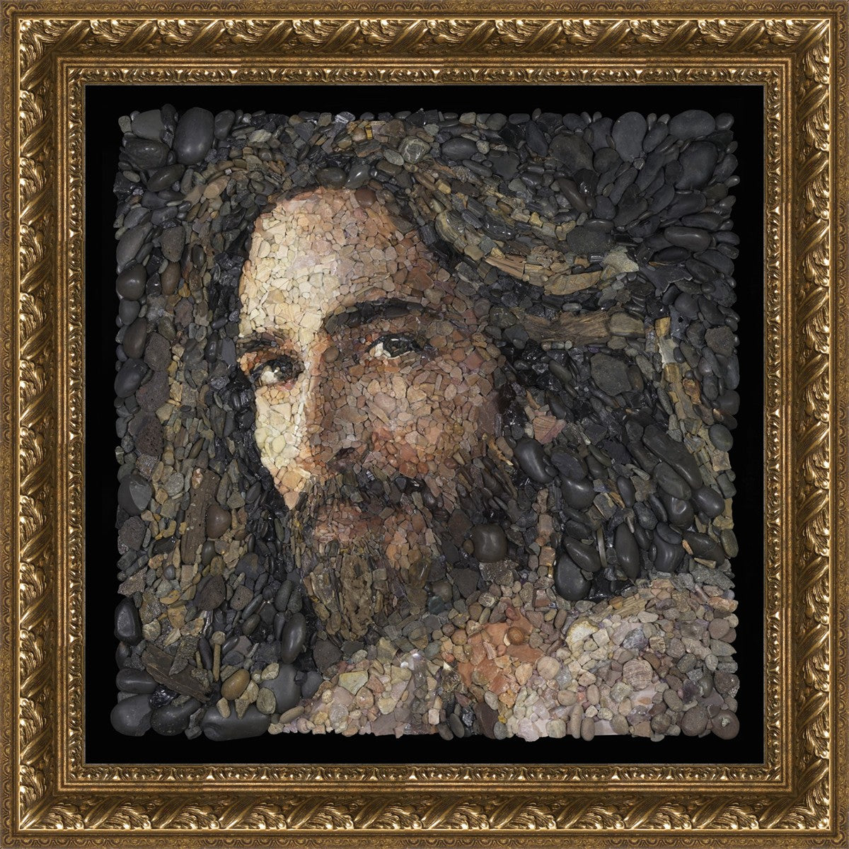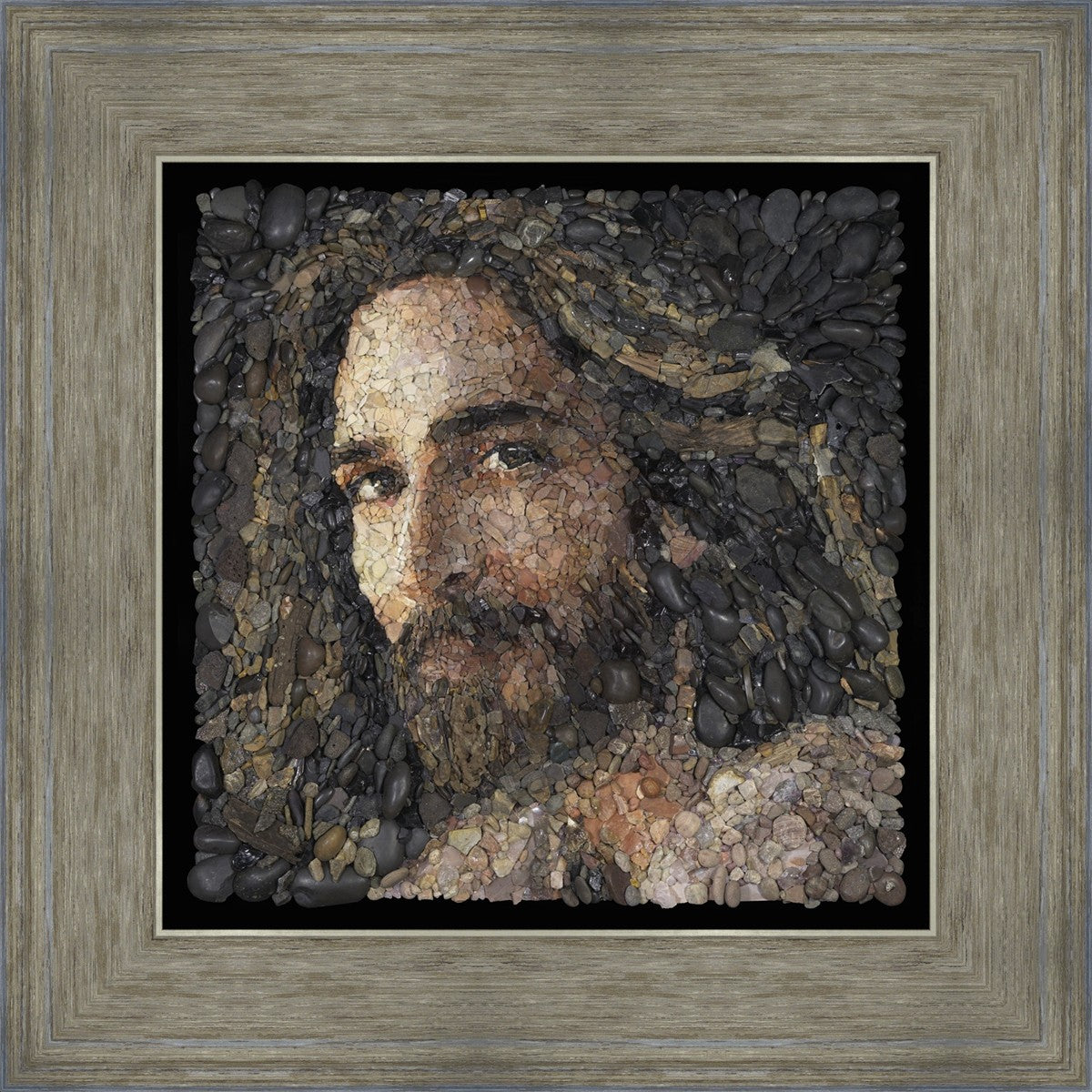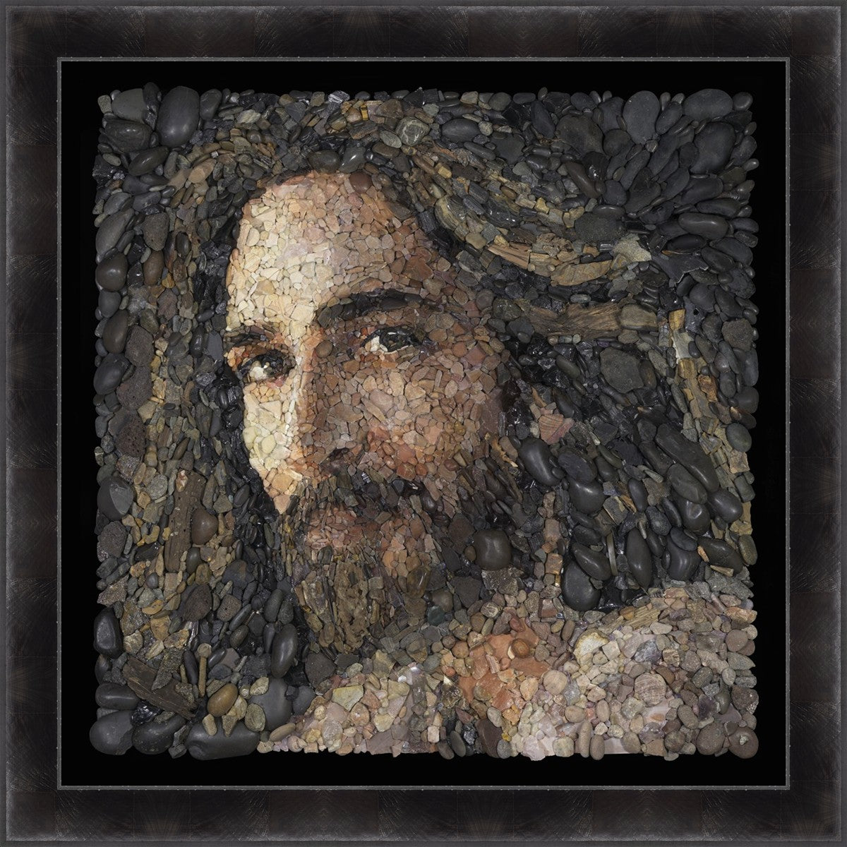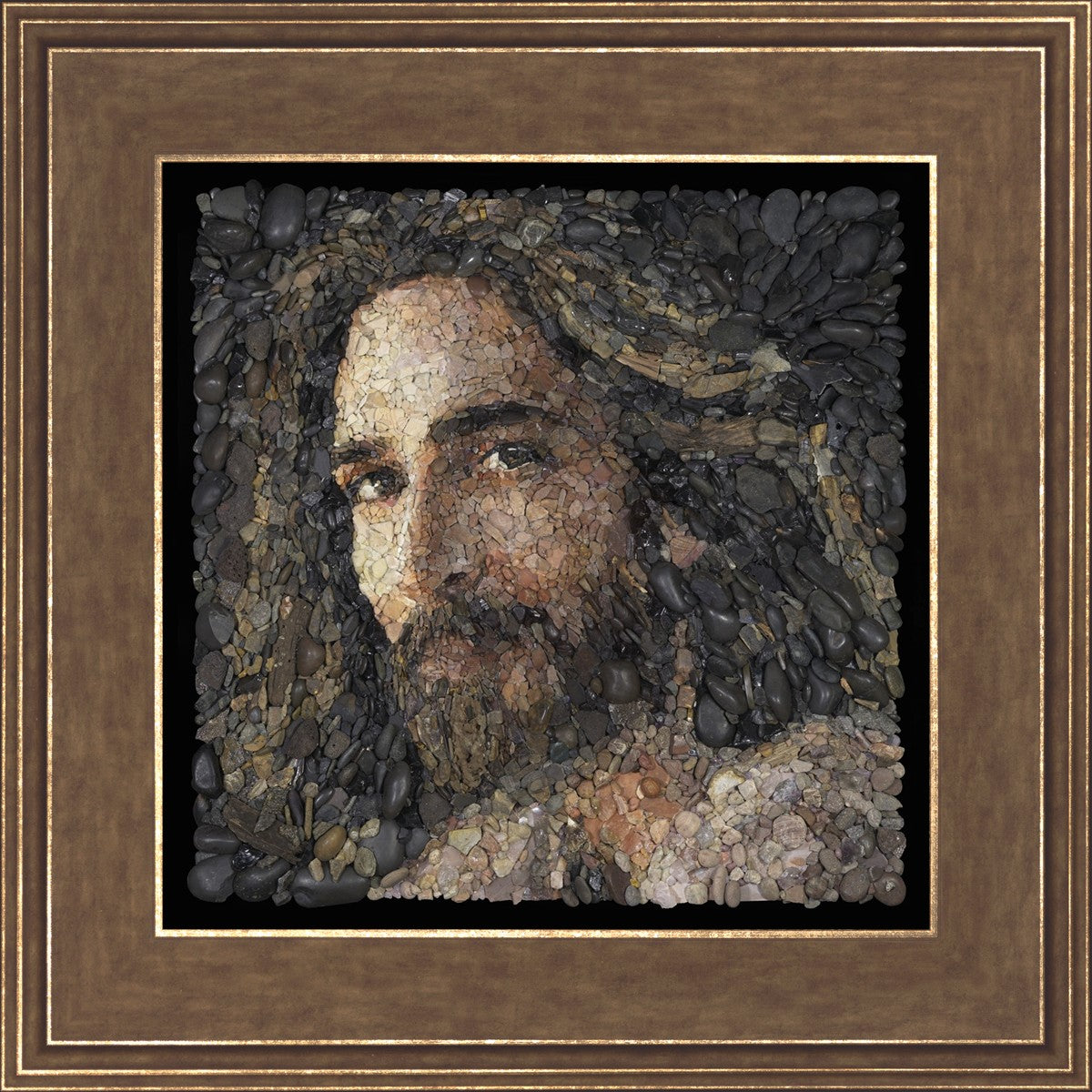 Reproduced from the artist's original artwork of rocks, shells, wood, and other found items on board 44.5 x 44.5. Created 2024.