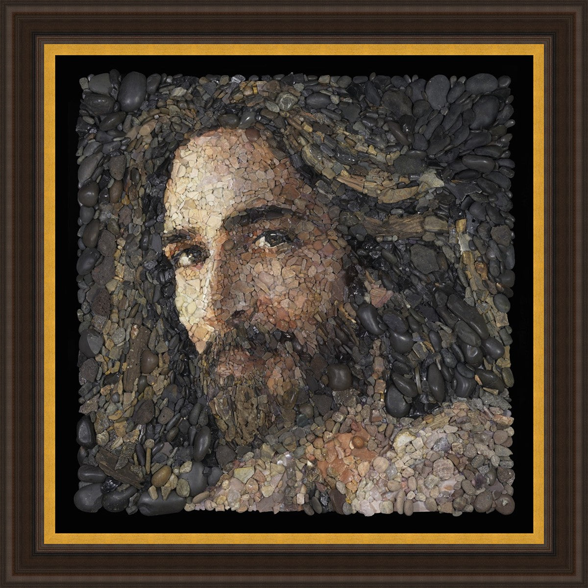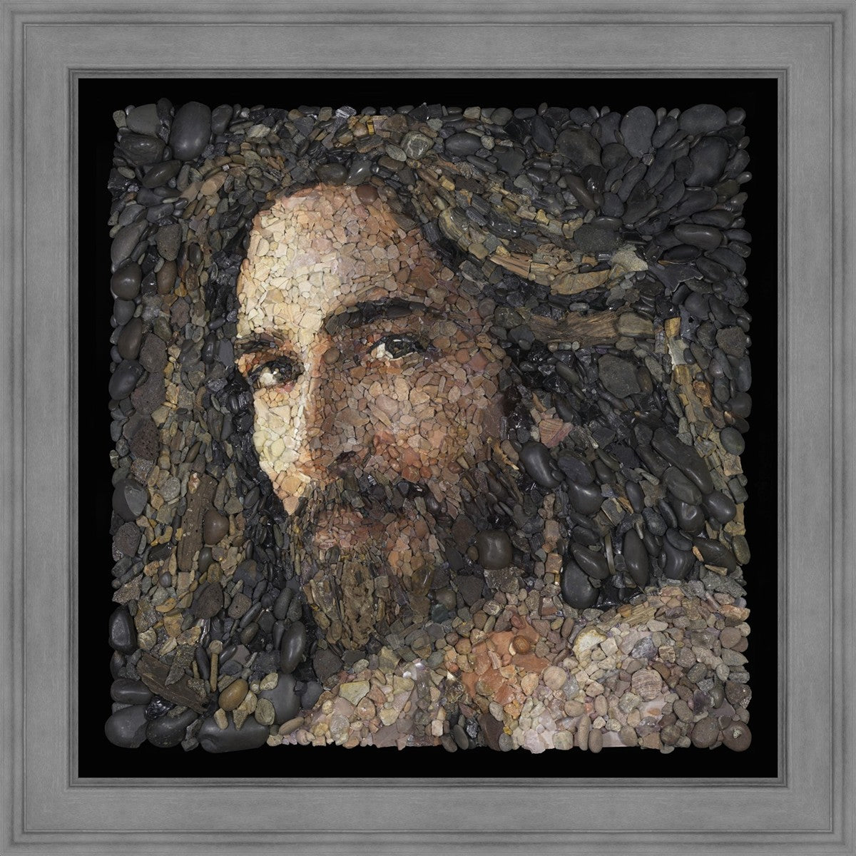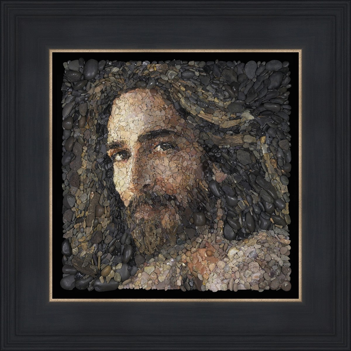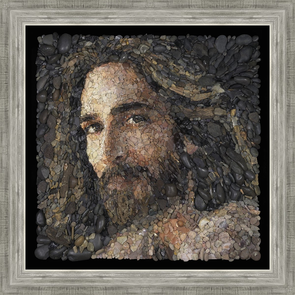 Reproduced from the artist's original artwork of rocks, shells, wood, and other found items on board 44.5 x 44.5. Created 2024.